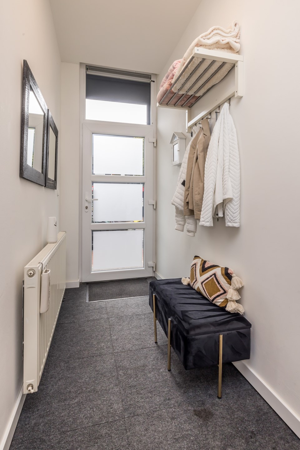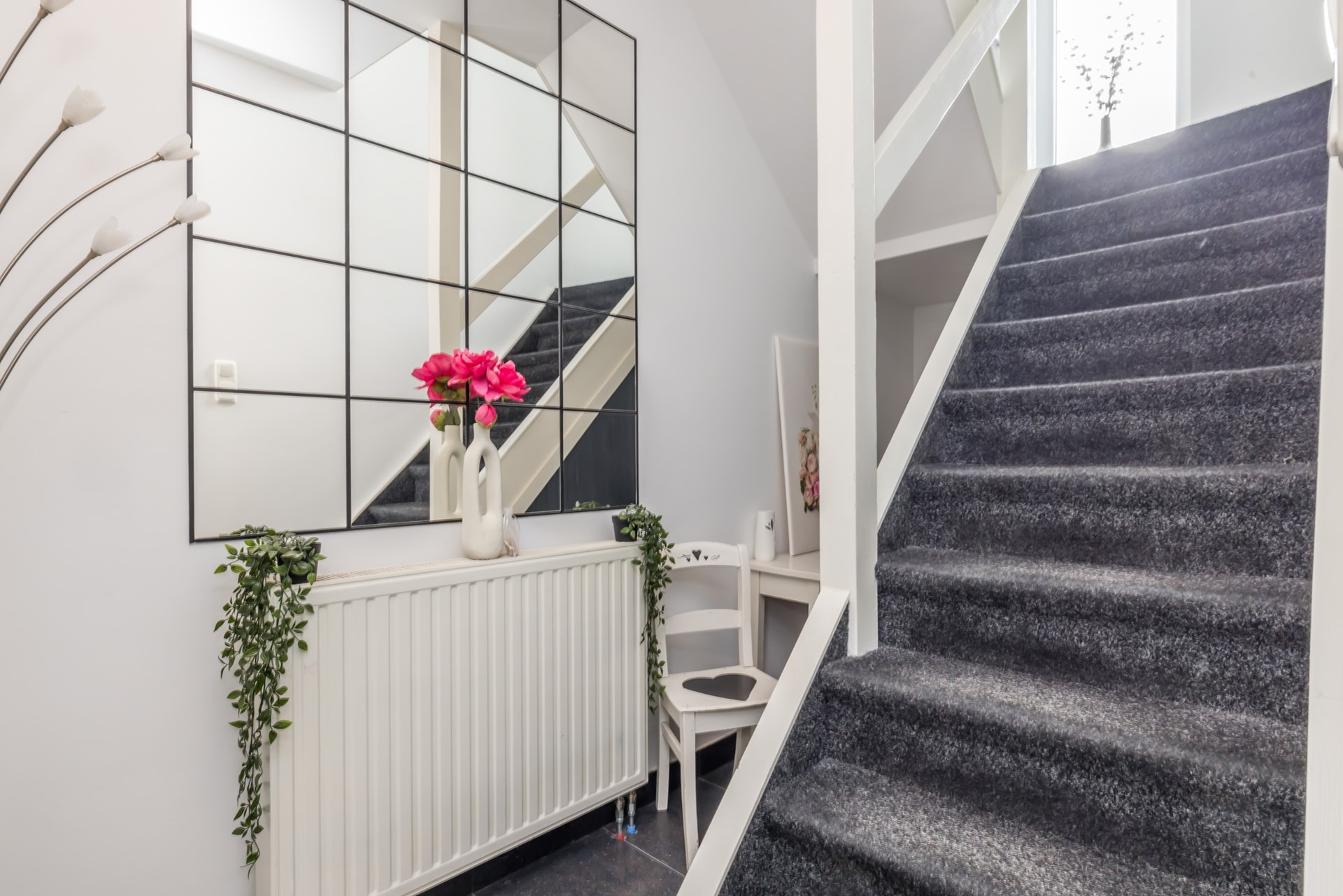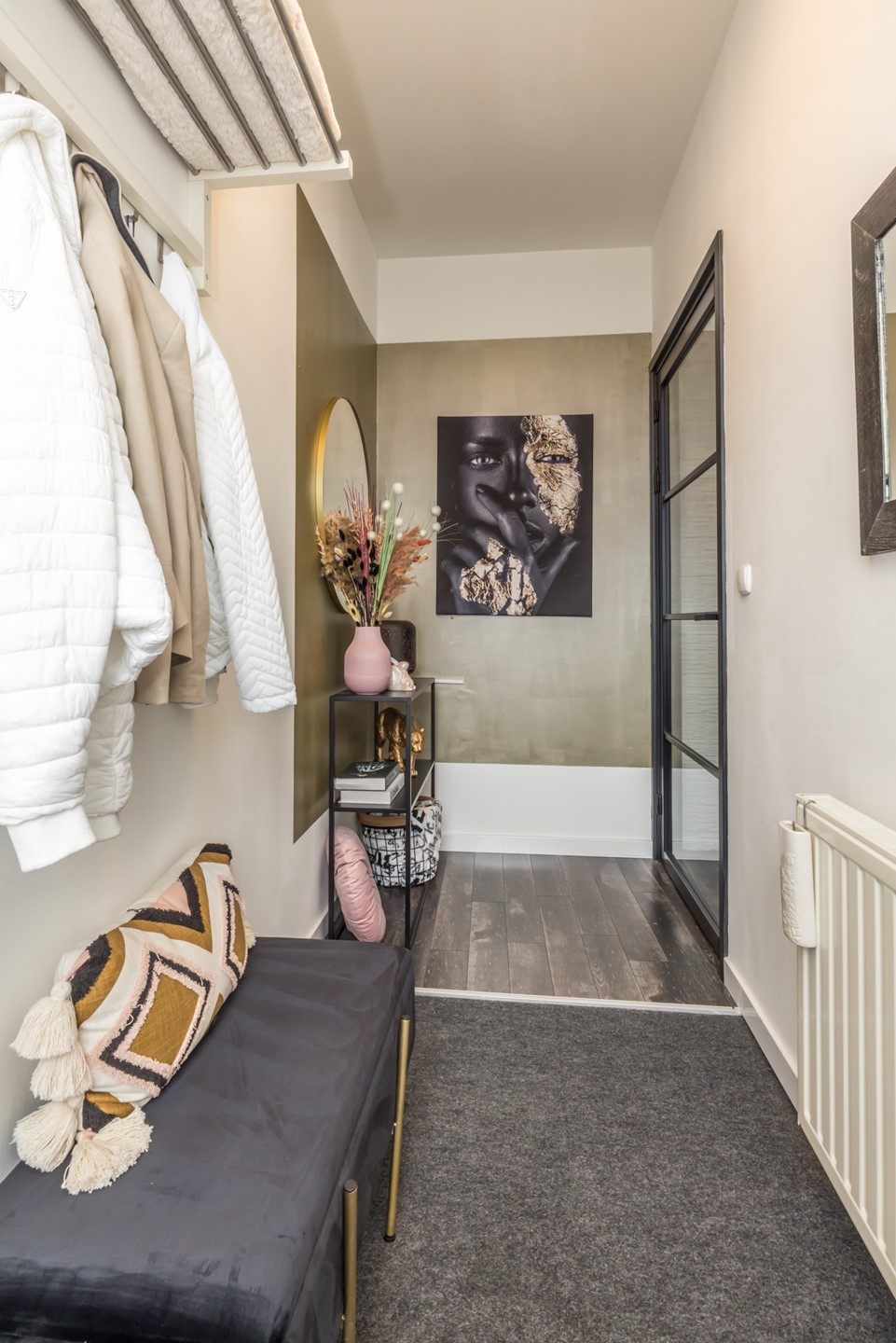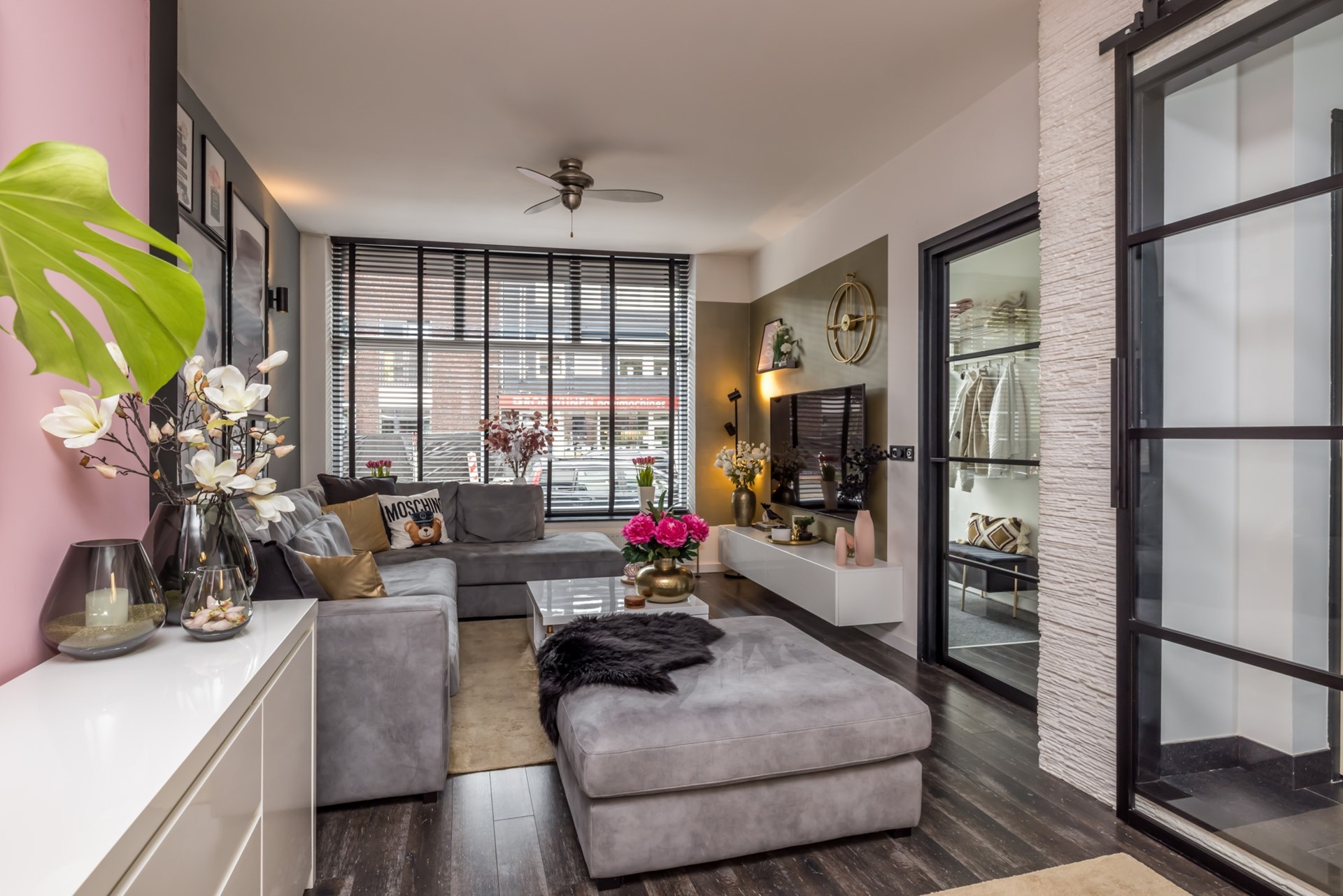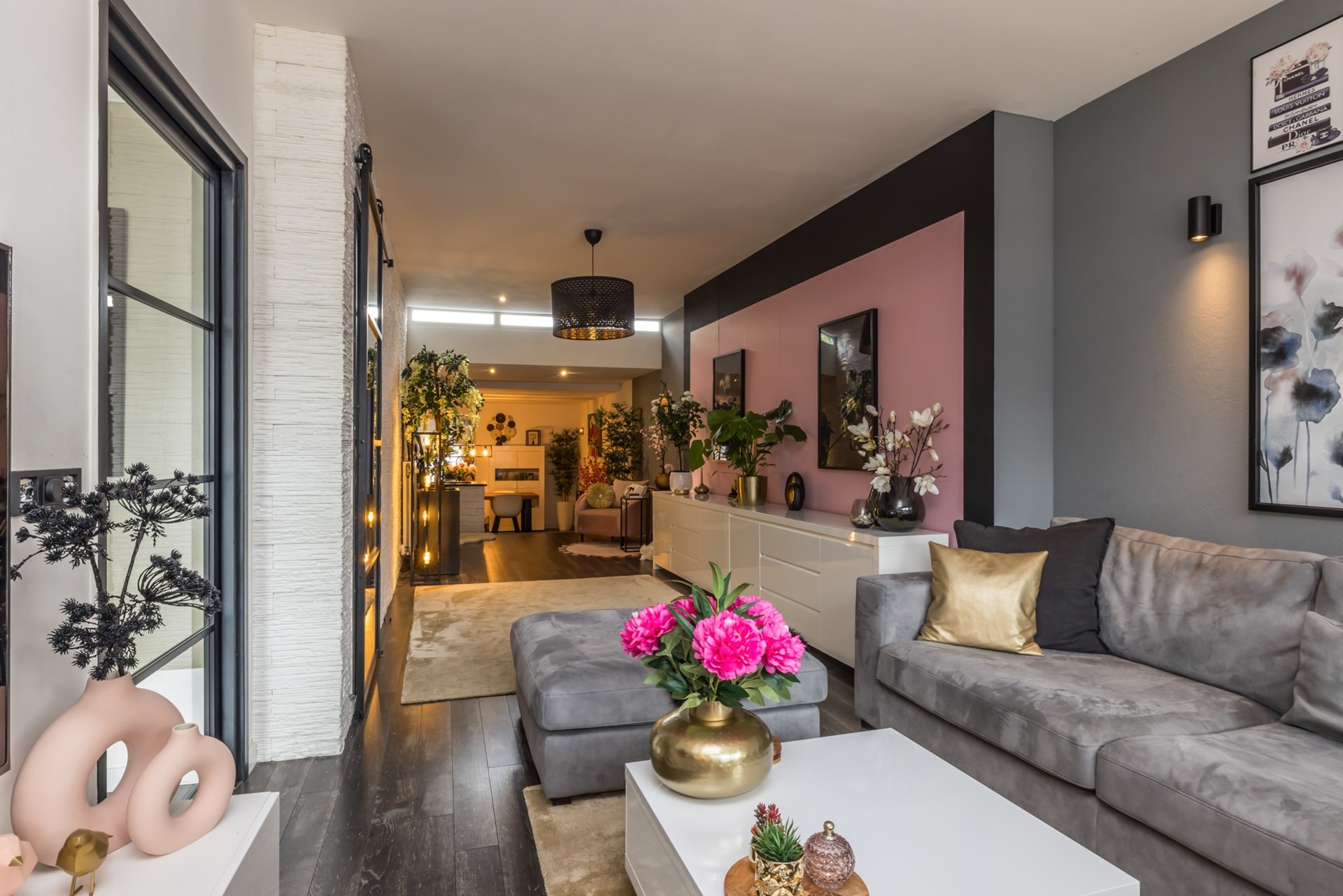 Bij binnenkomst valt direct de verzorgde afwerking op, met oog voor detail en stijl. De ruime woonkamer staat in open verbinding met de eetkamer, waarbij het hoogteverschil zorgt voor een speels split-level effect.