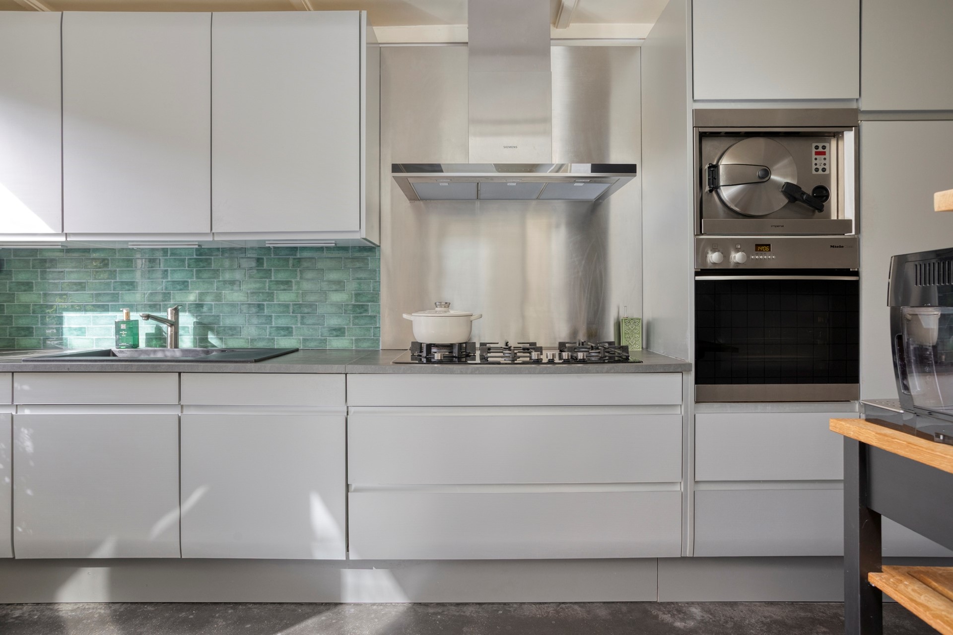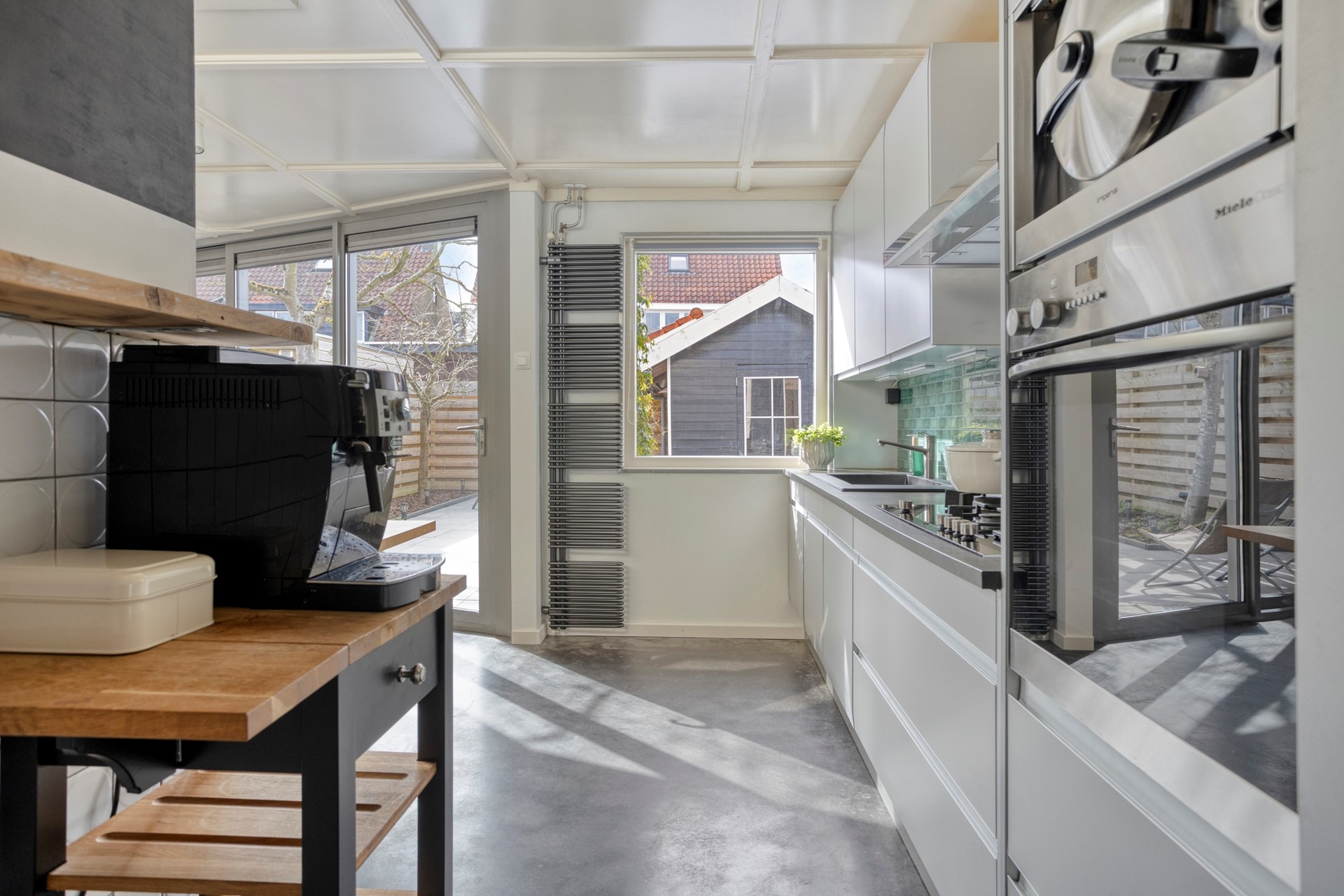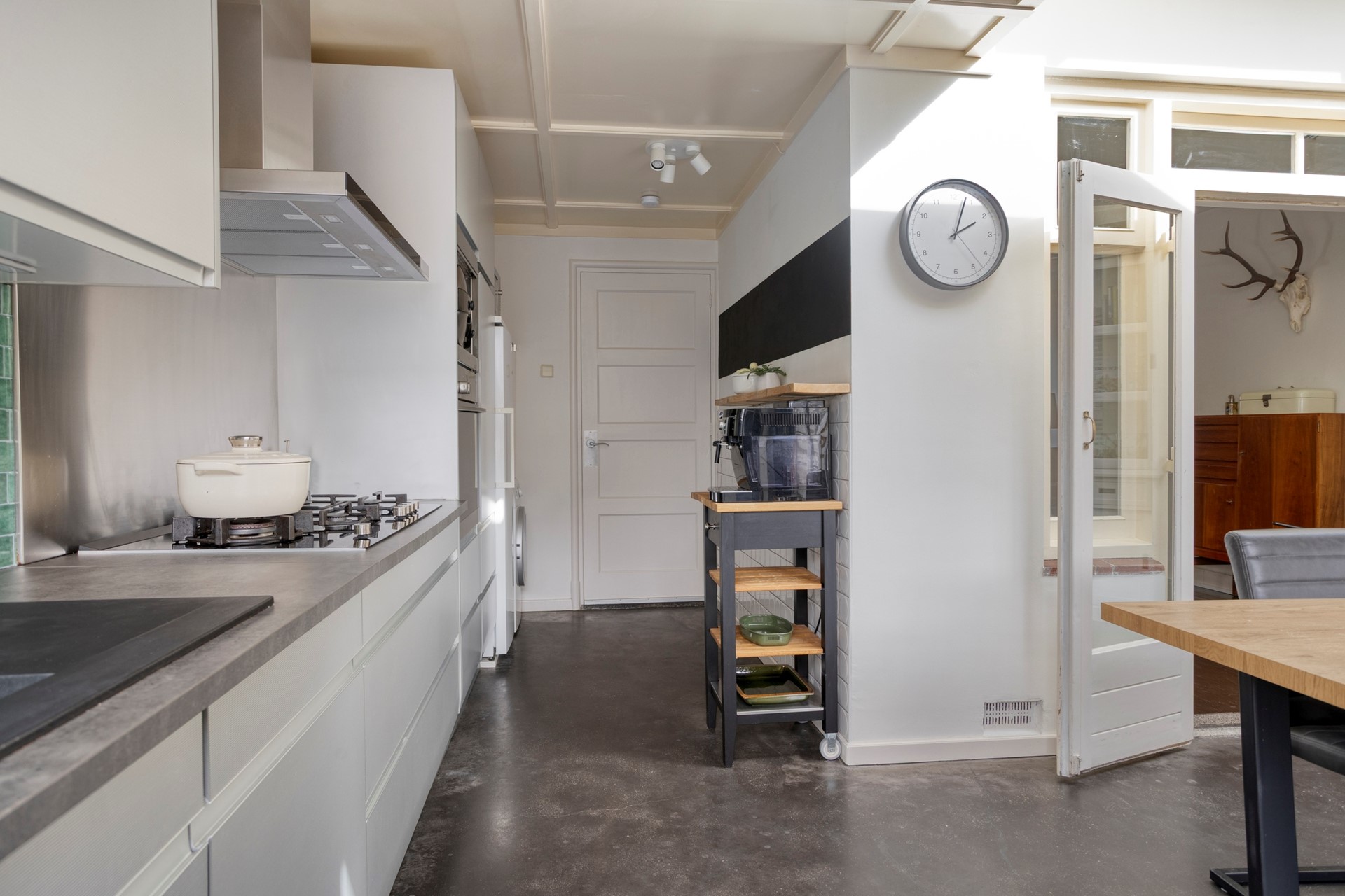 De hal verwelkomt je met jaren '30 karakter; een prachtige authentieke granitovloer en trap vormen een stijlvolle entree. Vanuit de hal loop je rechtdoor naar de keuken, die deels in de aanbouw is gesitueerd en over de volledige breedte van de woning is gerealiseerd. Deze aanbouw uit 2004 vormt een prachtige uitbreiding van de leefruimte. Hier bevindt zich de keuken, die direct in verbinding staat met de woonkamer en de tuin. Het is een heerlijke plek waar je met het gezin samenkomt, kookt en geniet van het dagelijks leven. Op zonnige dagen zet je de aluminium schuifpui open en loopt binnen moeiteloos over in het gezellige buiten.