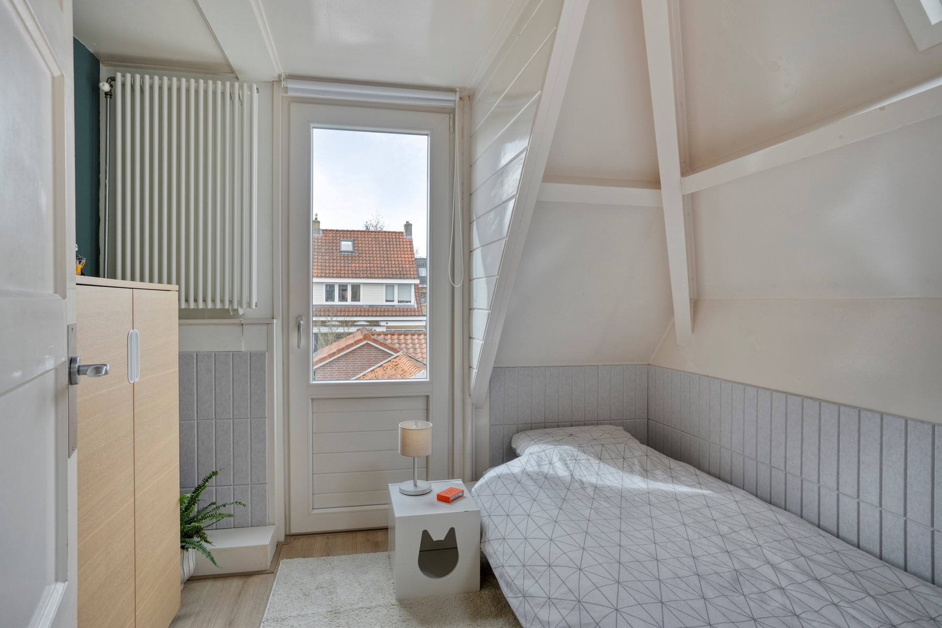 De tweede verdieping is bereikbaar via een vaste trap. Ondanks de compacte ruimte is hier slim gebruikgemaakt van elke vierkante meter. Dankzij de kunststof dakkapel is er een lichte en gezellige kamer ontstaan; een ideale plek voor een tiener, werkruimte of logeerkamer. Daarnaast zijn er een bergkamertje, een aparte ruimte voor de cv-ketel en een kleine inbouwkast.