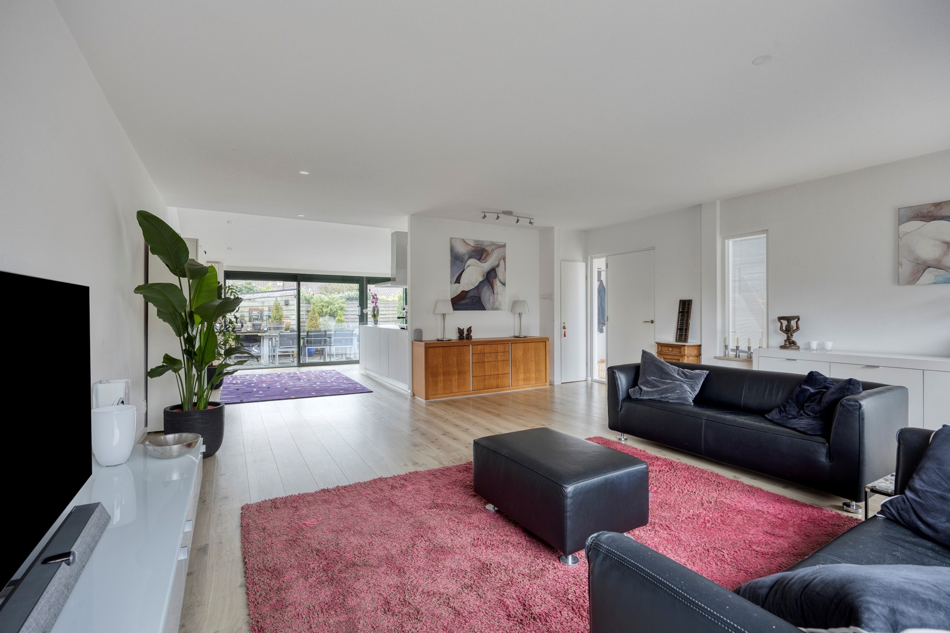De living (woonkamer en open keuken) is zeer ruim en lichtrijk mede door de grote ramen aan voorzijde en de schuifpui aan de achterzijde van de woning.