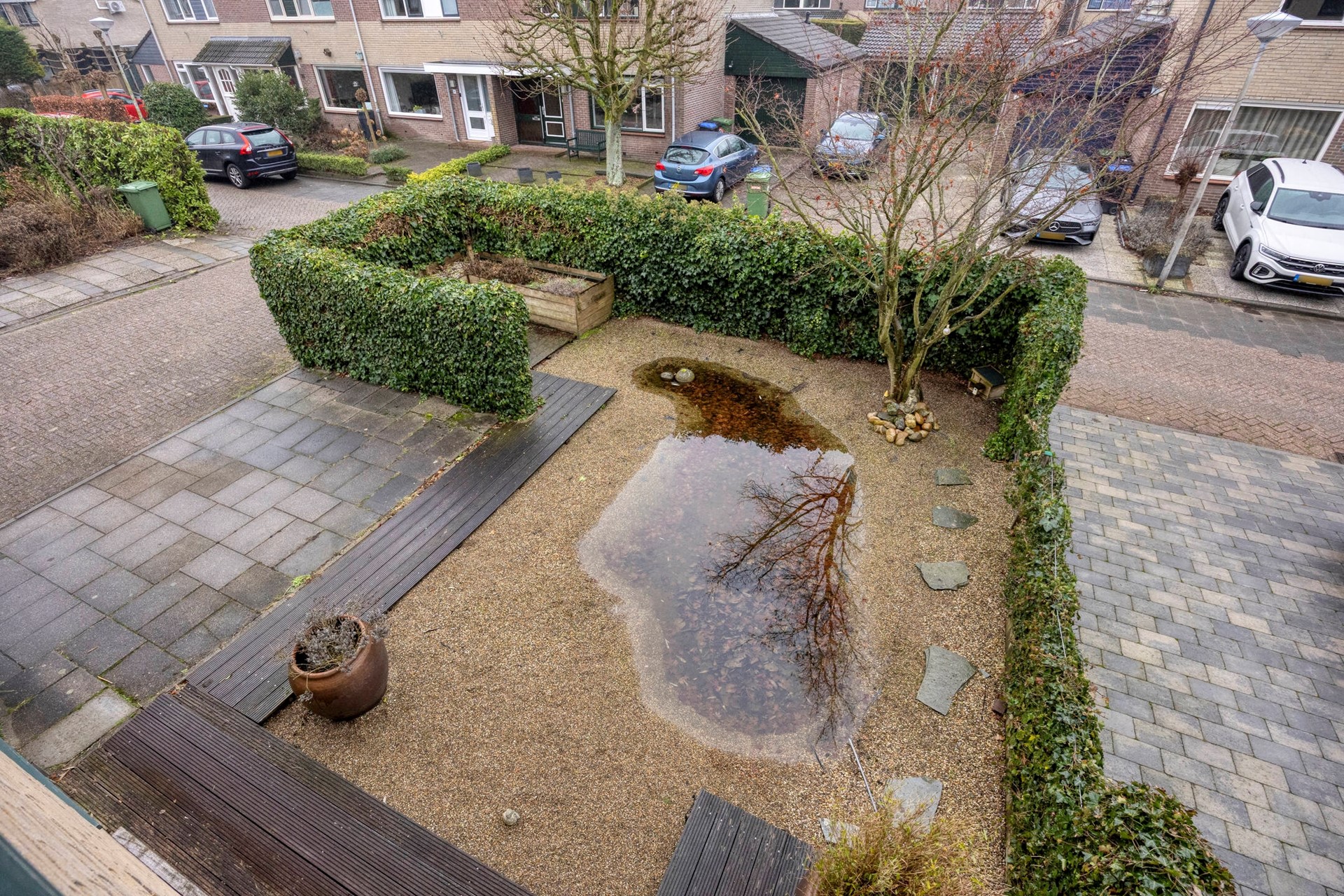 Zowel aan de voor- als achterzijde van de woning heeft u veel privacy vanwege de ruime opzet van de woonwijk. Door de diepte van de achtertuin is er veel zoninval in de tuin. Achtertuin ca. 9.00x7.00m.
