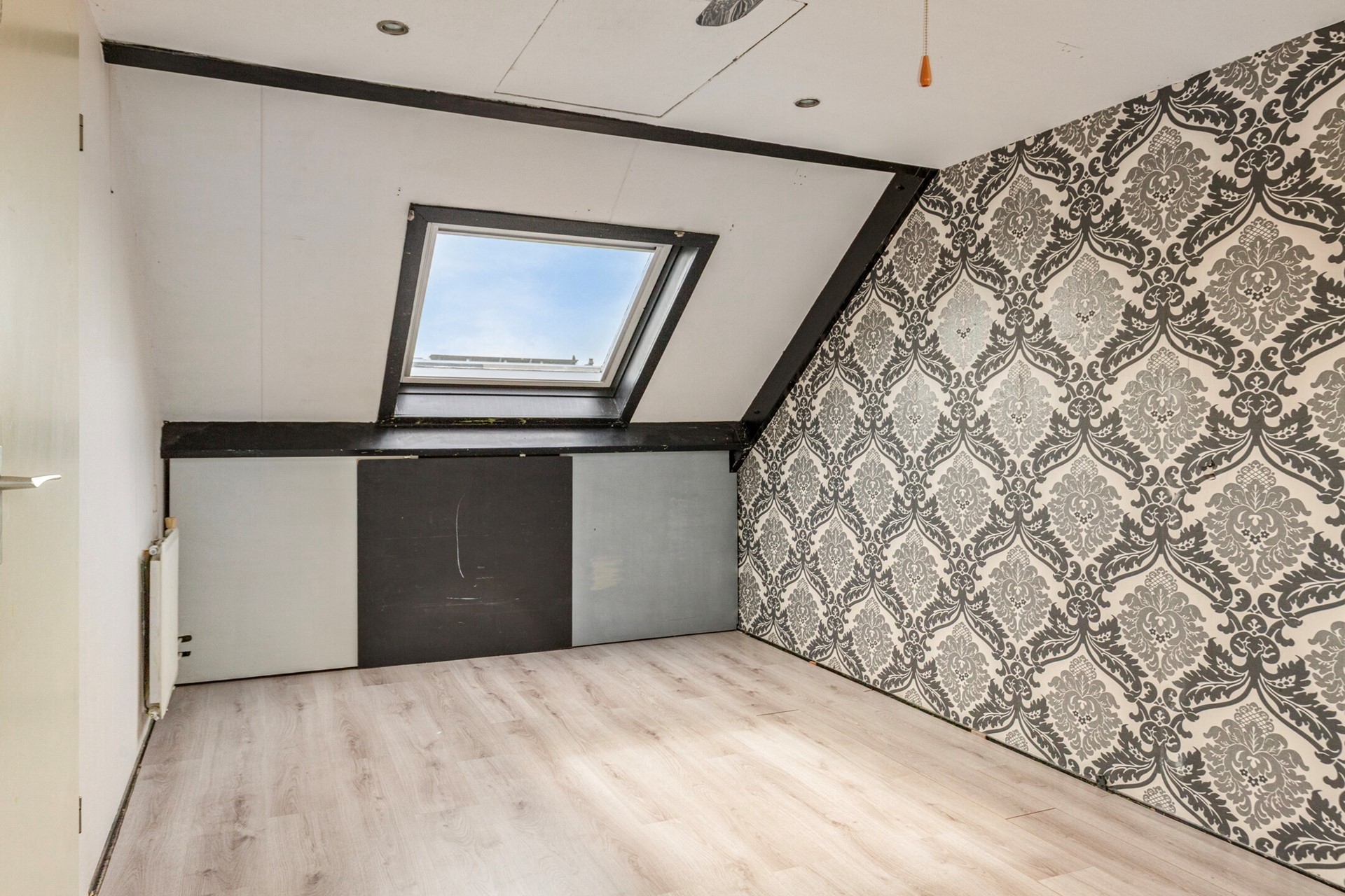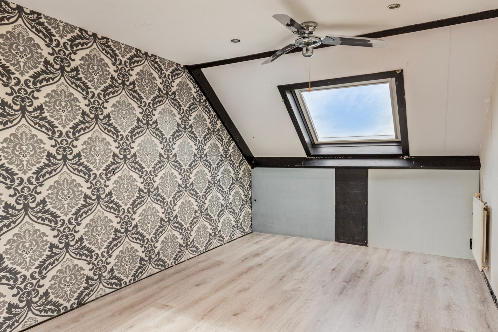 Zeer ruime 4e slaapkamer voorzien knieschotteen aan beide zijden, laminaatvloer, en aan beide zijde een dakraam.