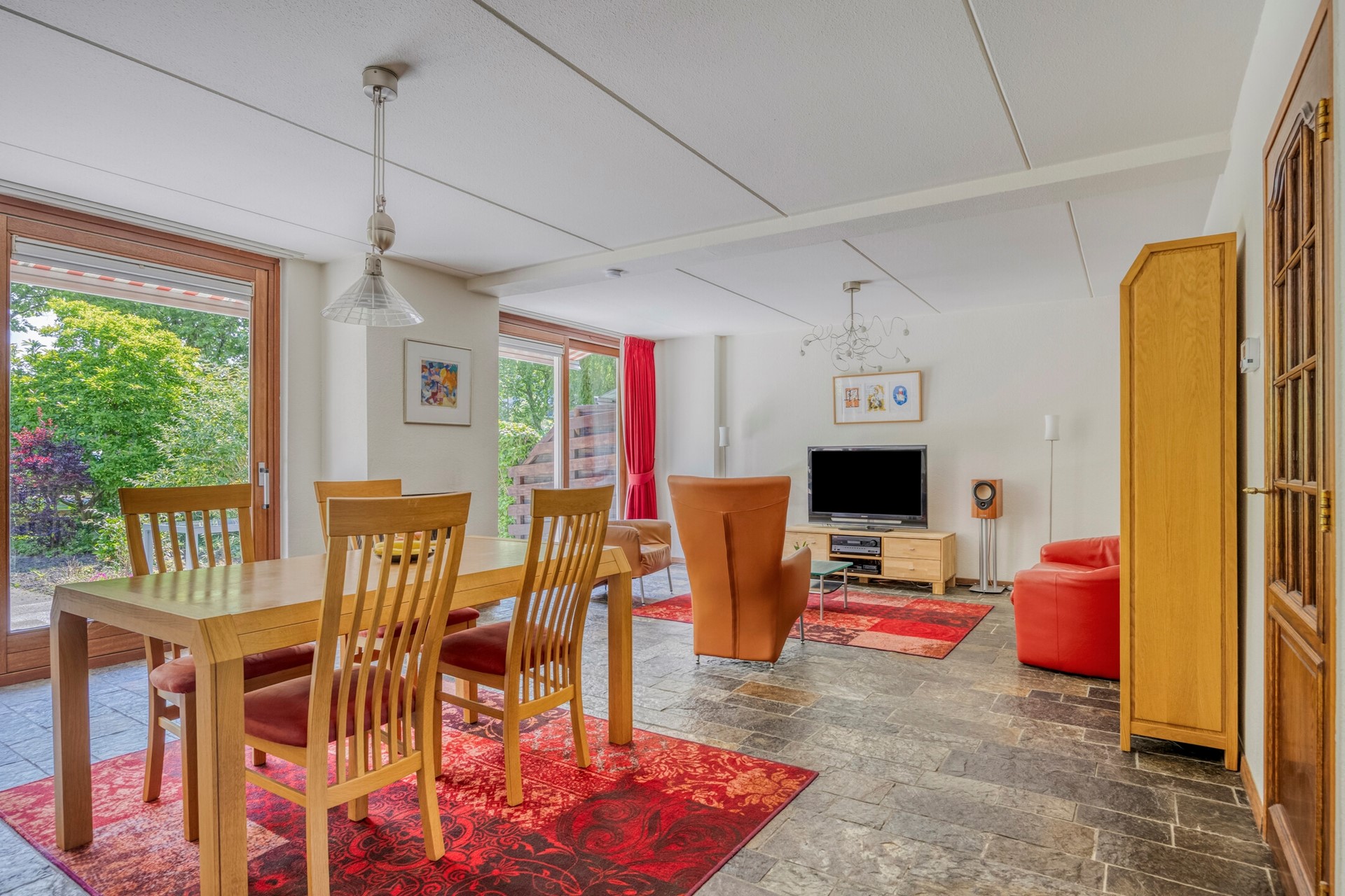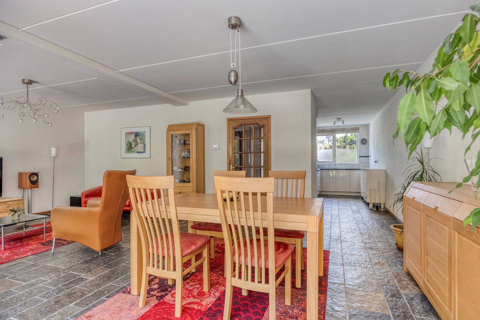 Living (woonkamer en eetkamer) over de volle breedte van het huis met dubbele schuifpui en