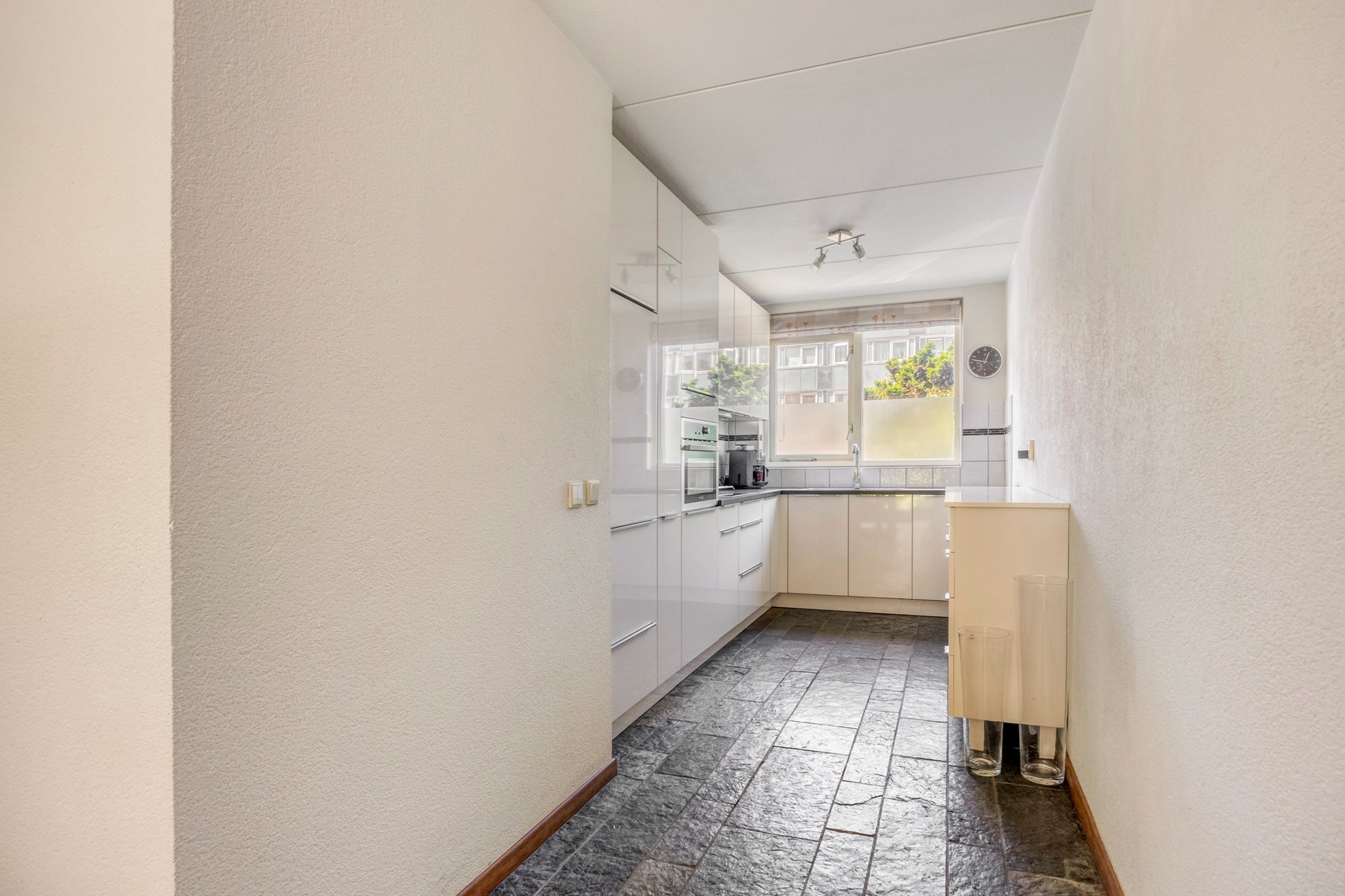 Begane grond belegd met leistenen vloer en voorzien van vloerverwarming