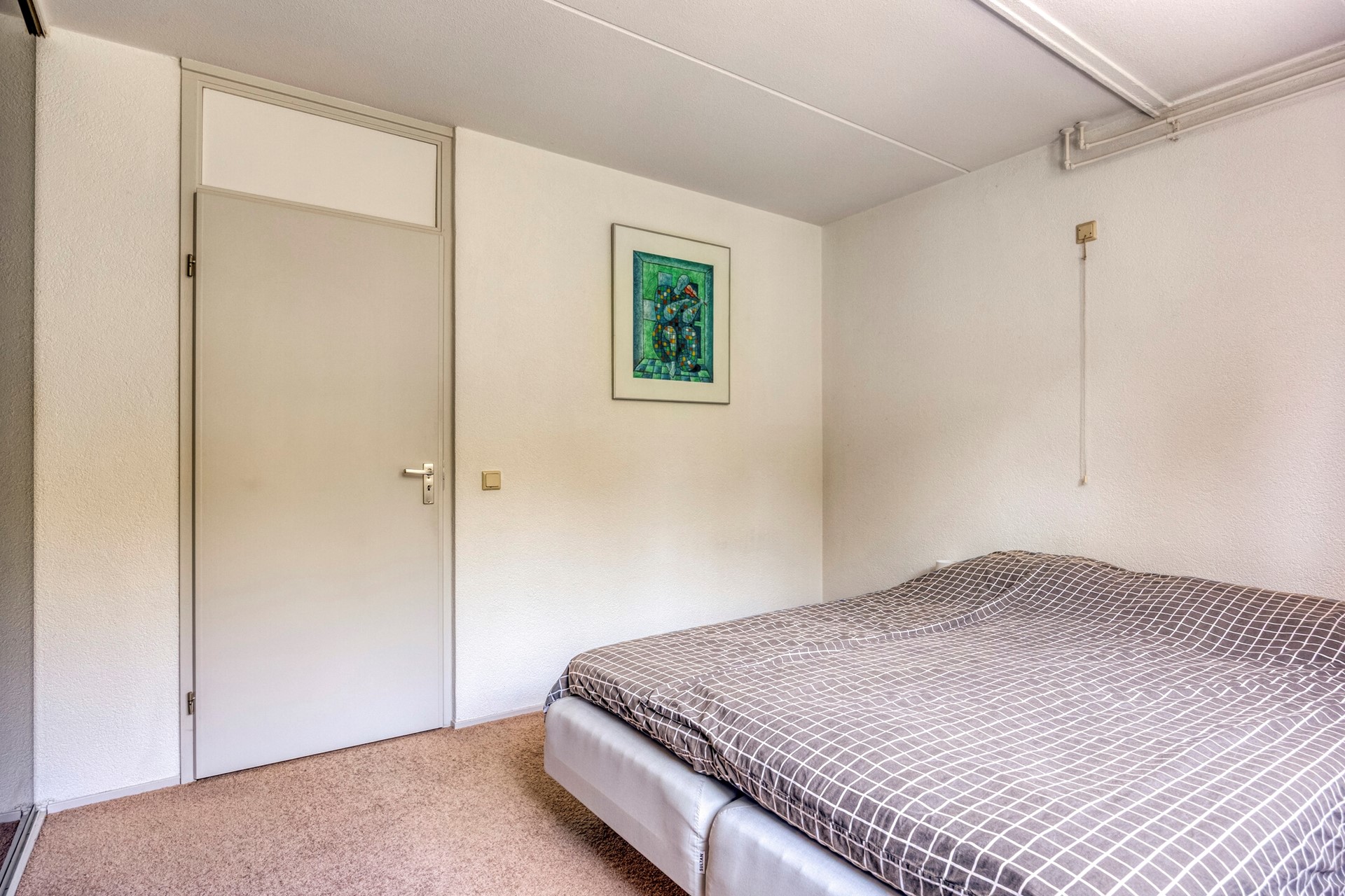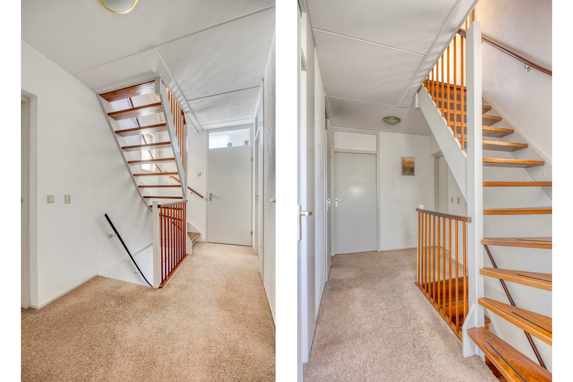 Verdiepingen belegd met lichte wollen vloerbedekking.
