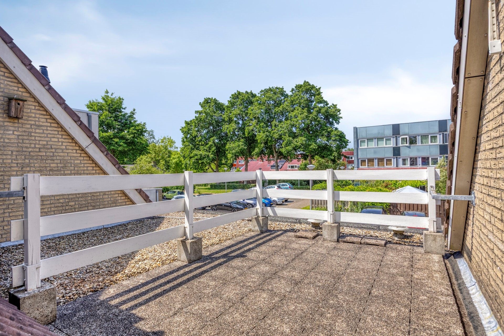 Slaapkamer 2 is gelegen aan de voorzijde van de woning. Vanuit deze kamer kunt u het boven de garage gelegen dakterras op het westen/zuiden betreden. Dakterras ligt deels boven de garage.