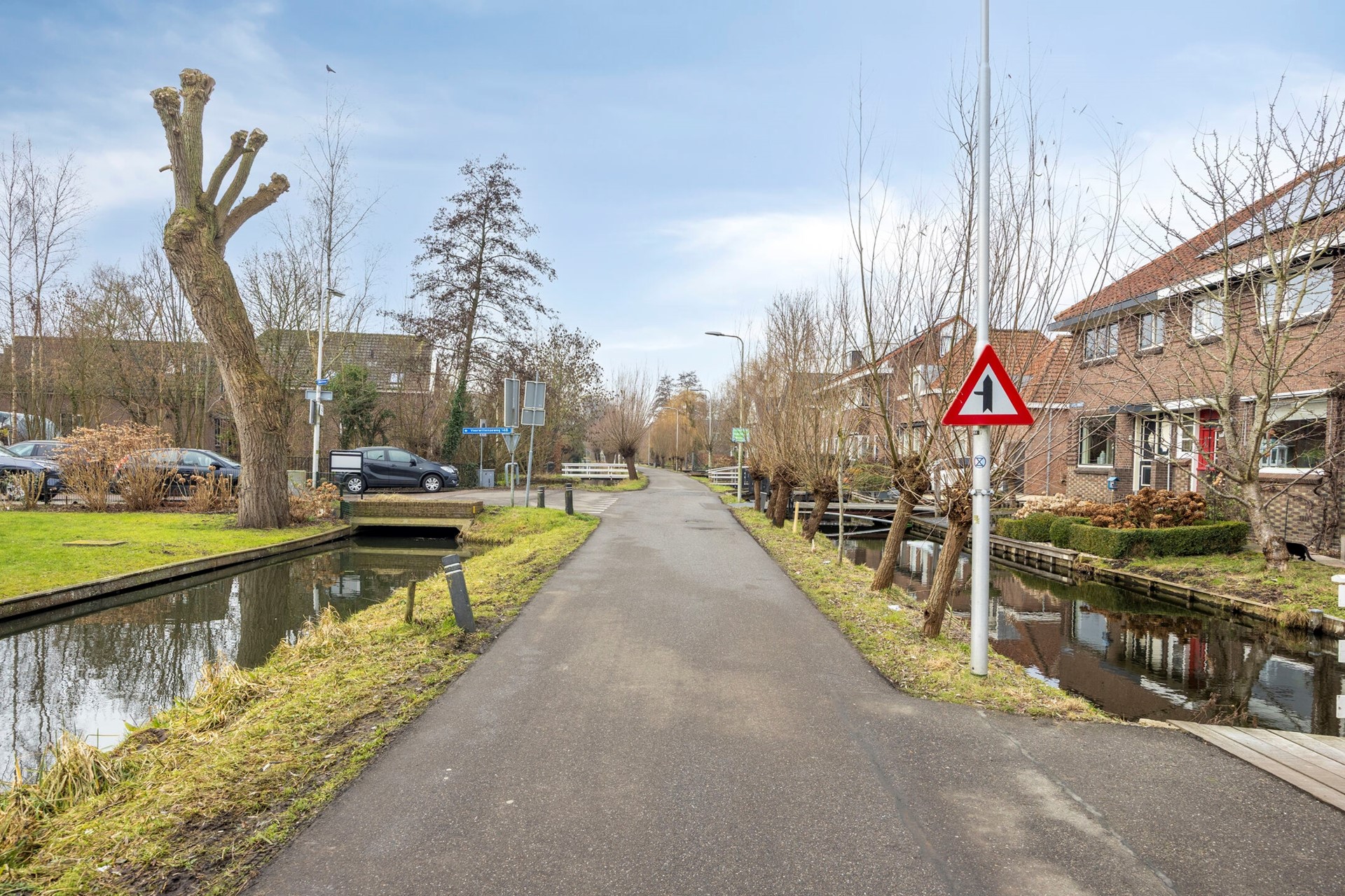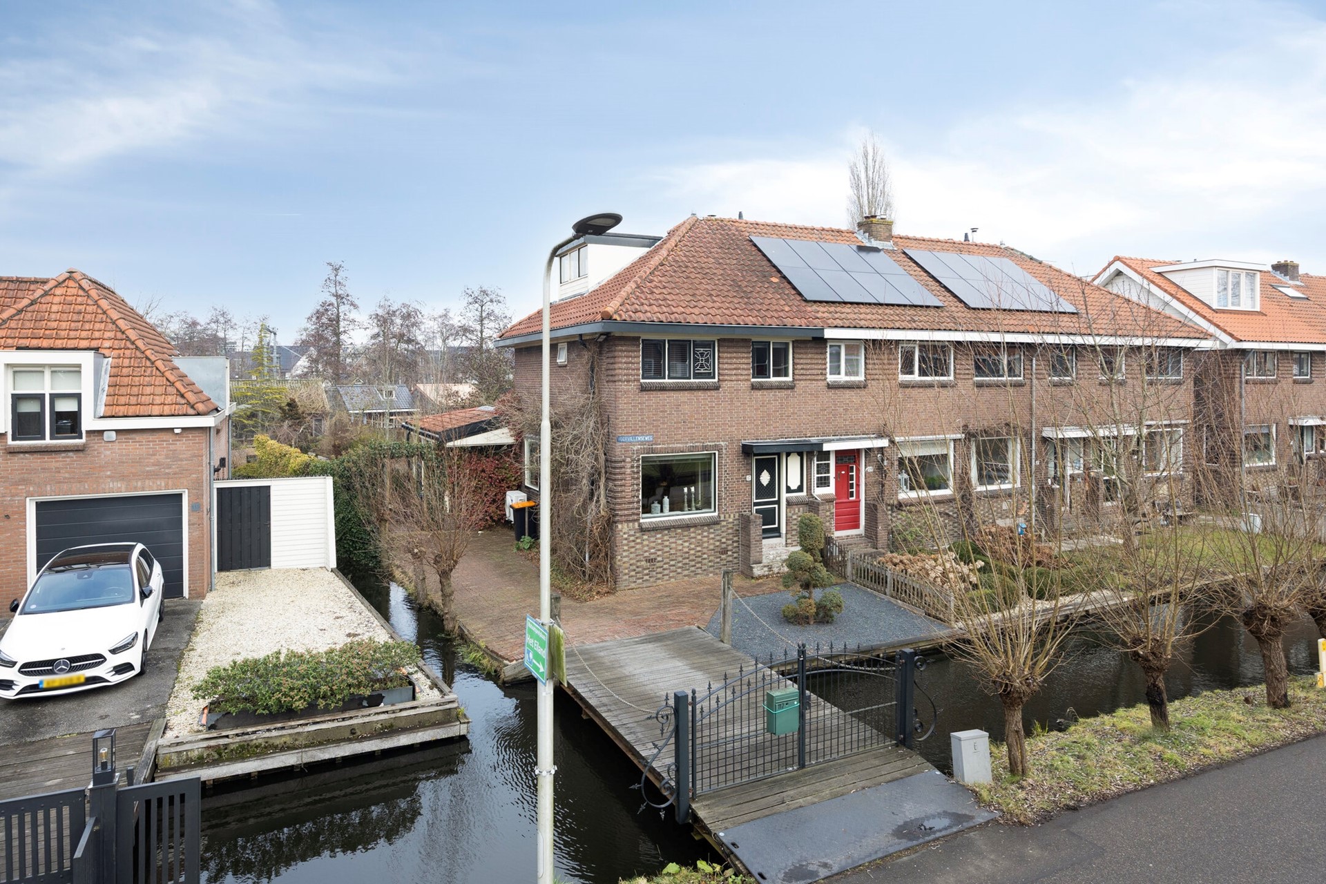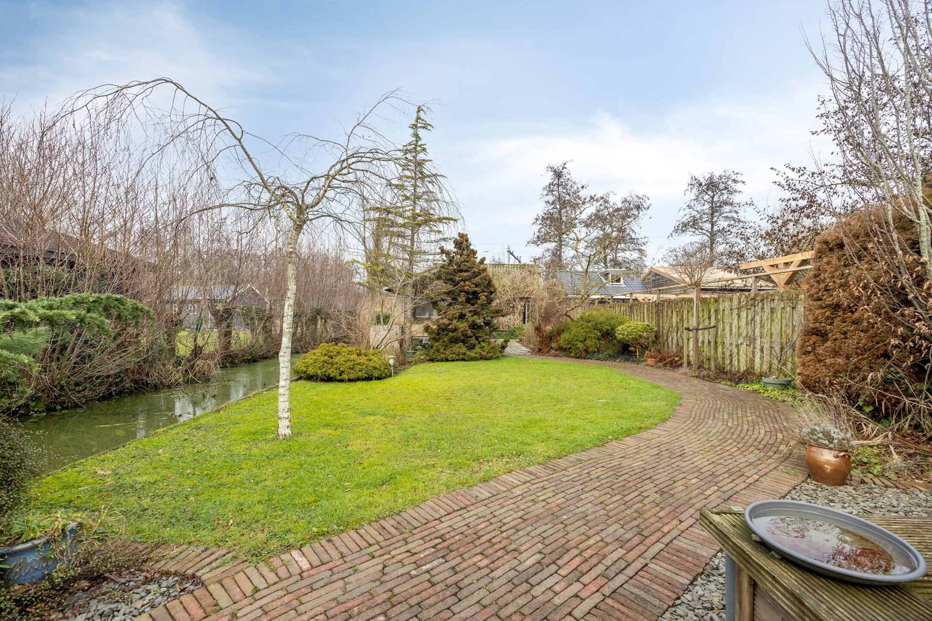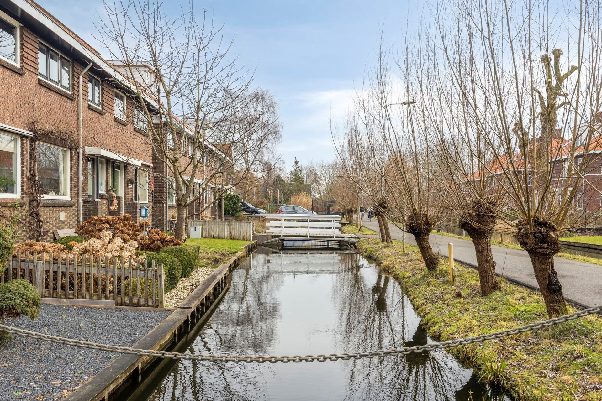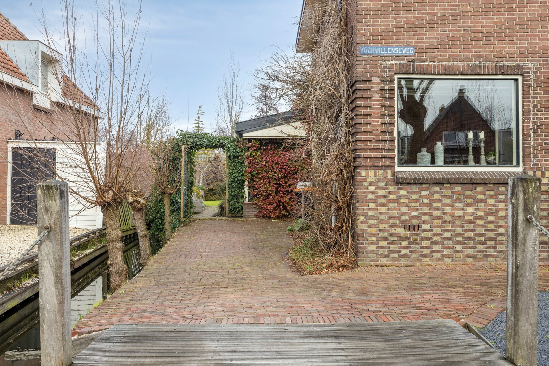 U betreedt het perceel via de brug (eigendom). De brug is ook voor auto’s toegankelijk.