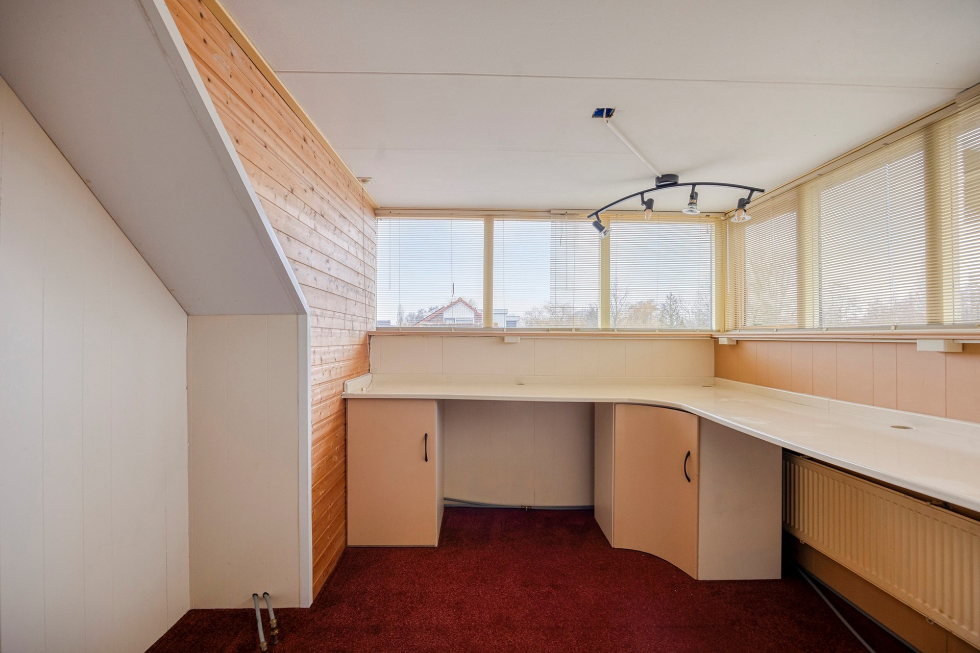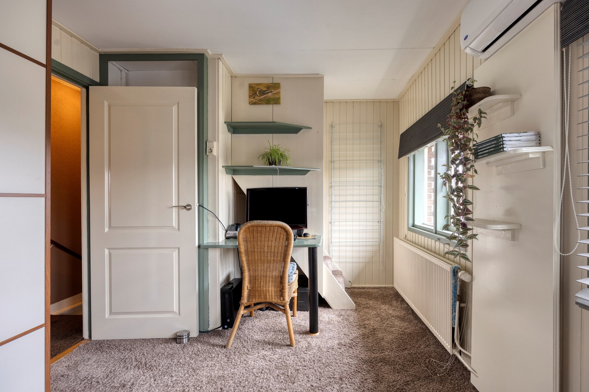 Op de tweede verdieping de derde slaap/werkkamer, met dakkapel en bergruimte.