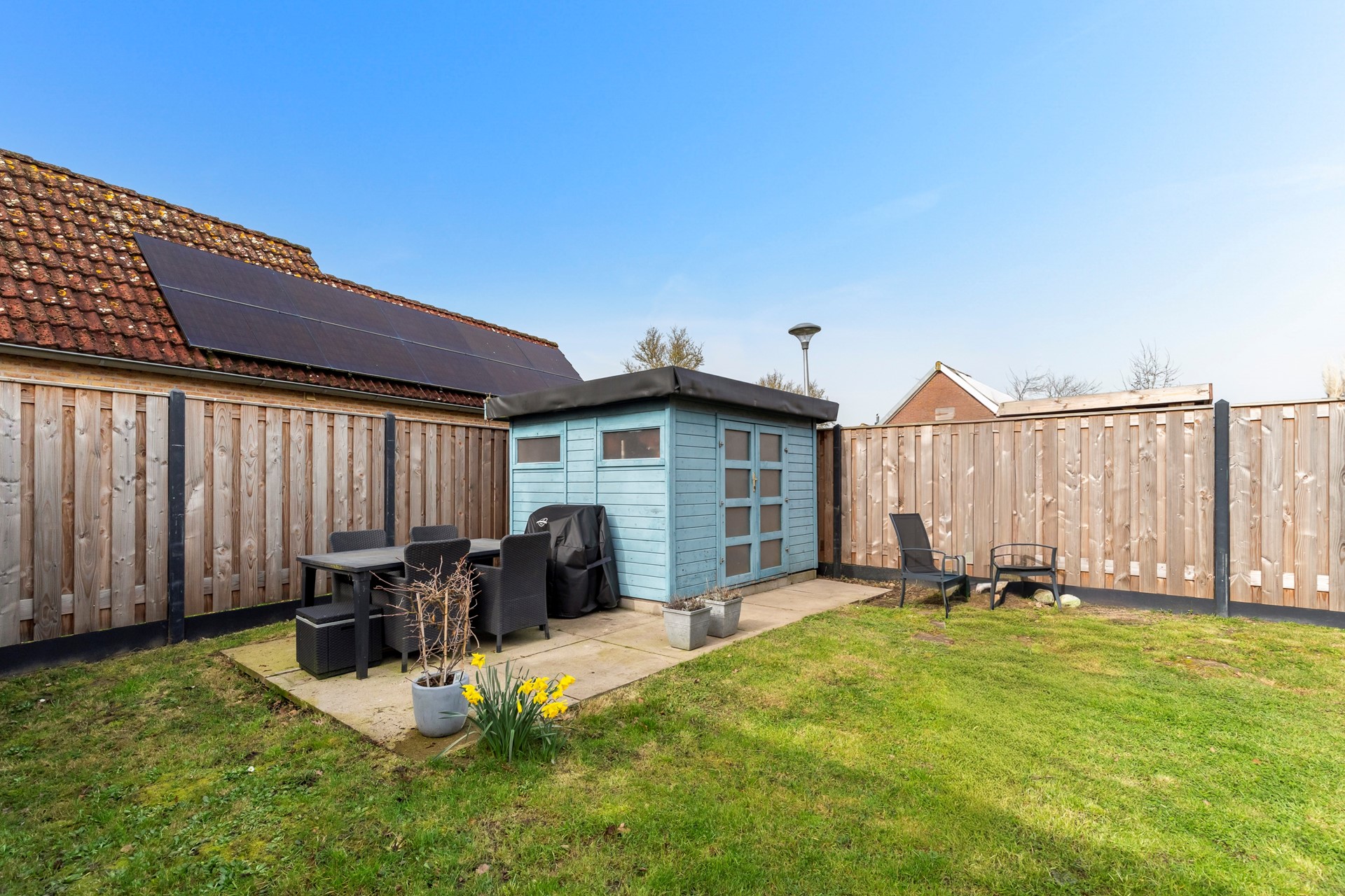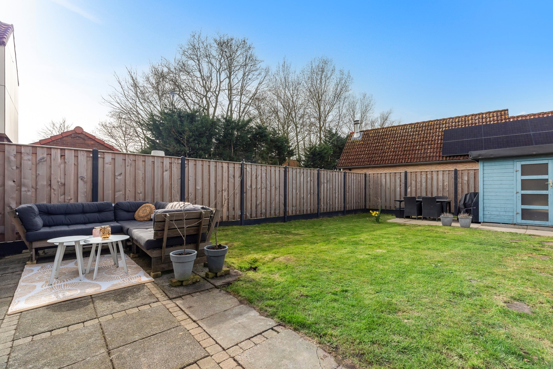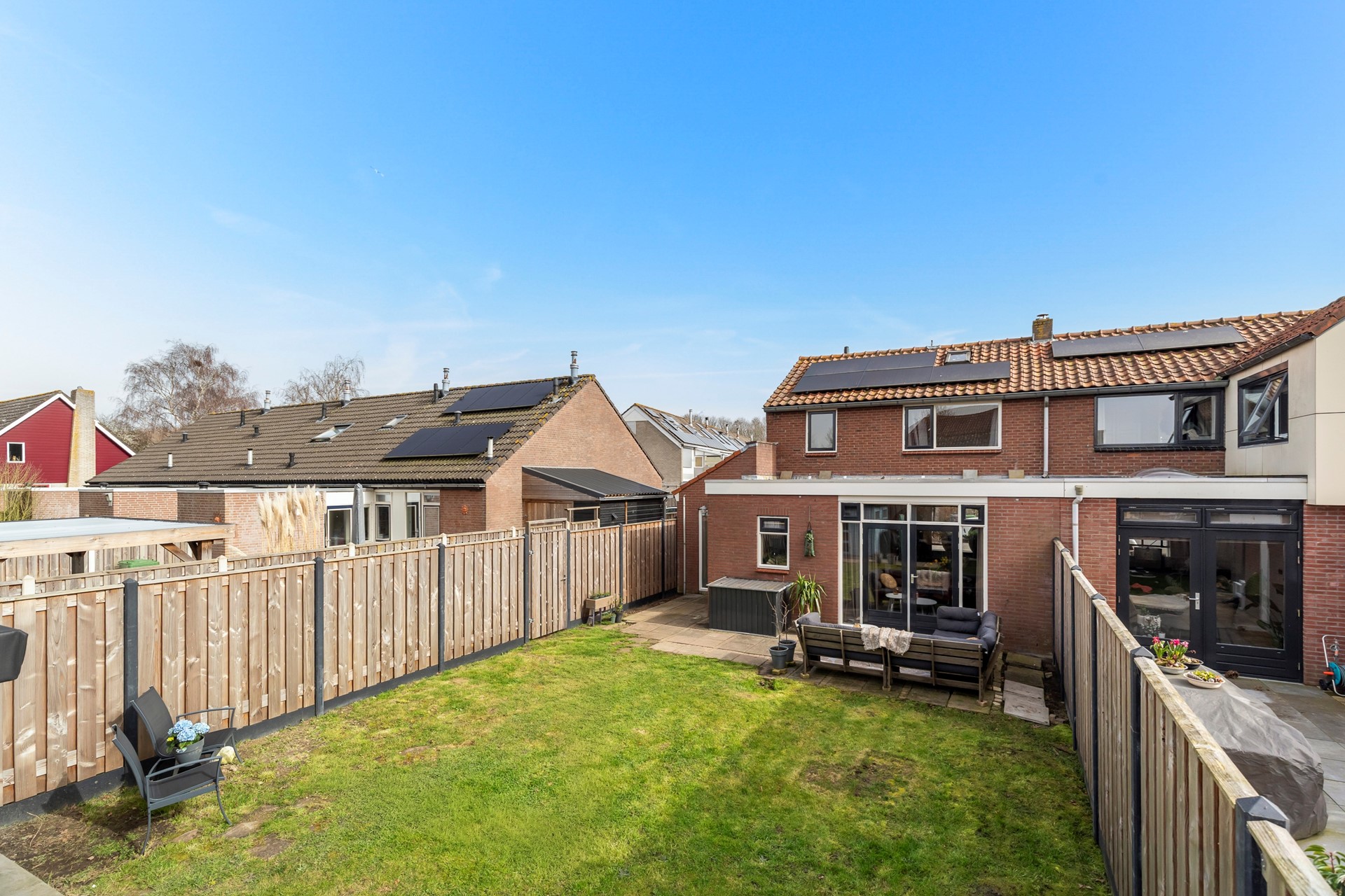 - Ruime tuin rondom met altijd een plek in de zon of schaduw