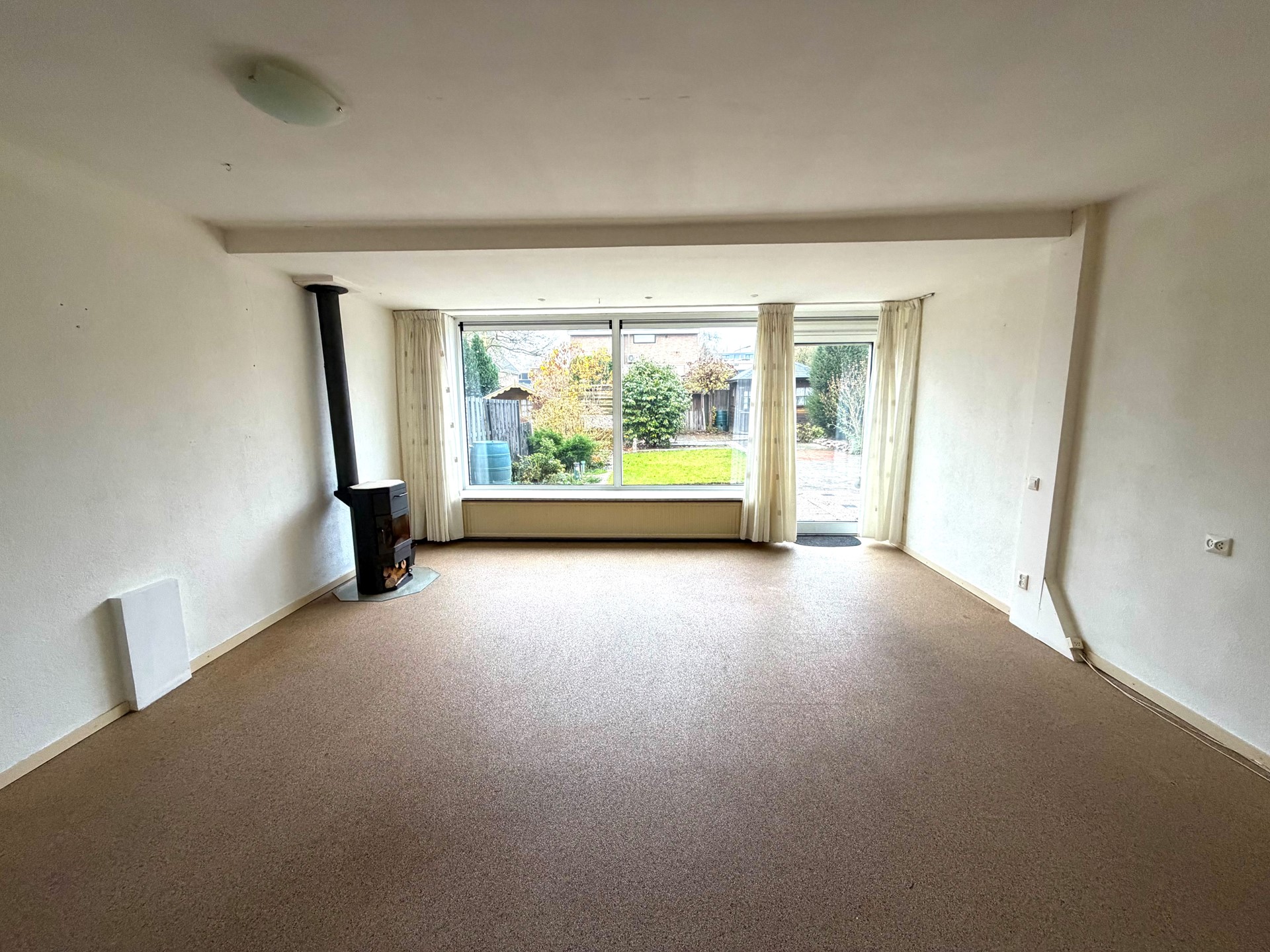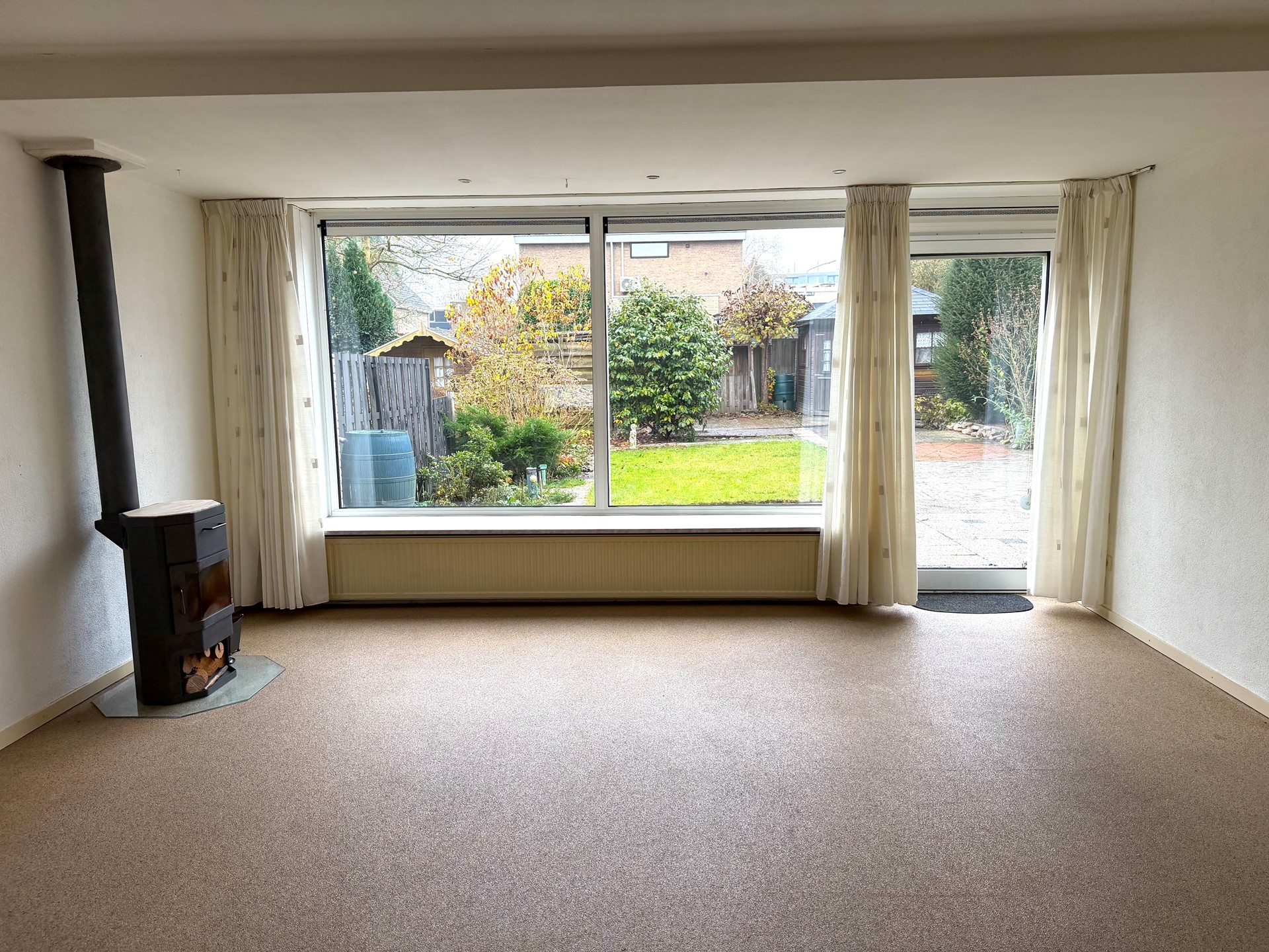 Vanuit de woonkamer is de sfeervolle, diepe achtertuin bereikbaar.