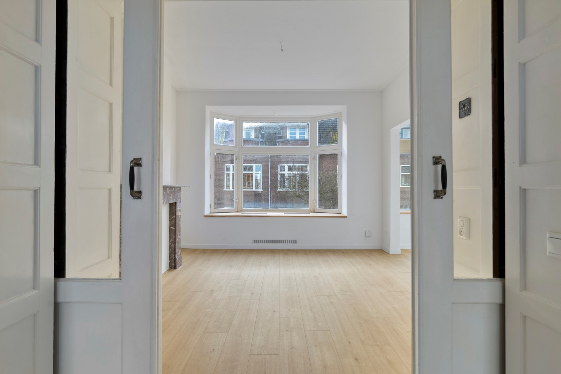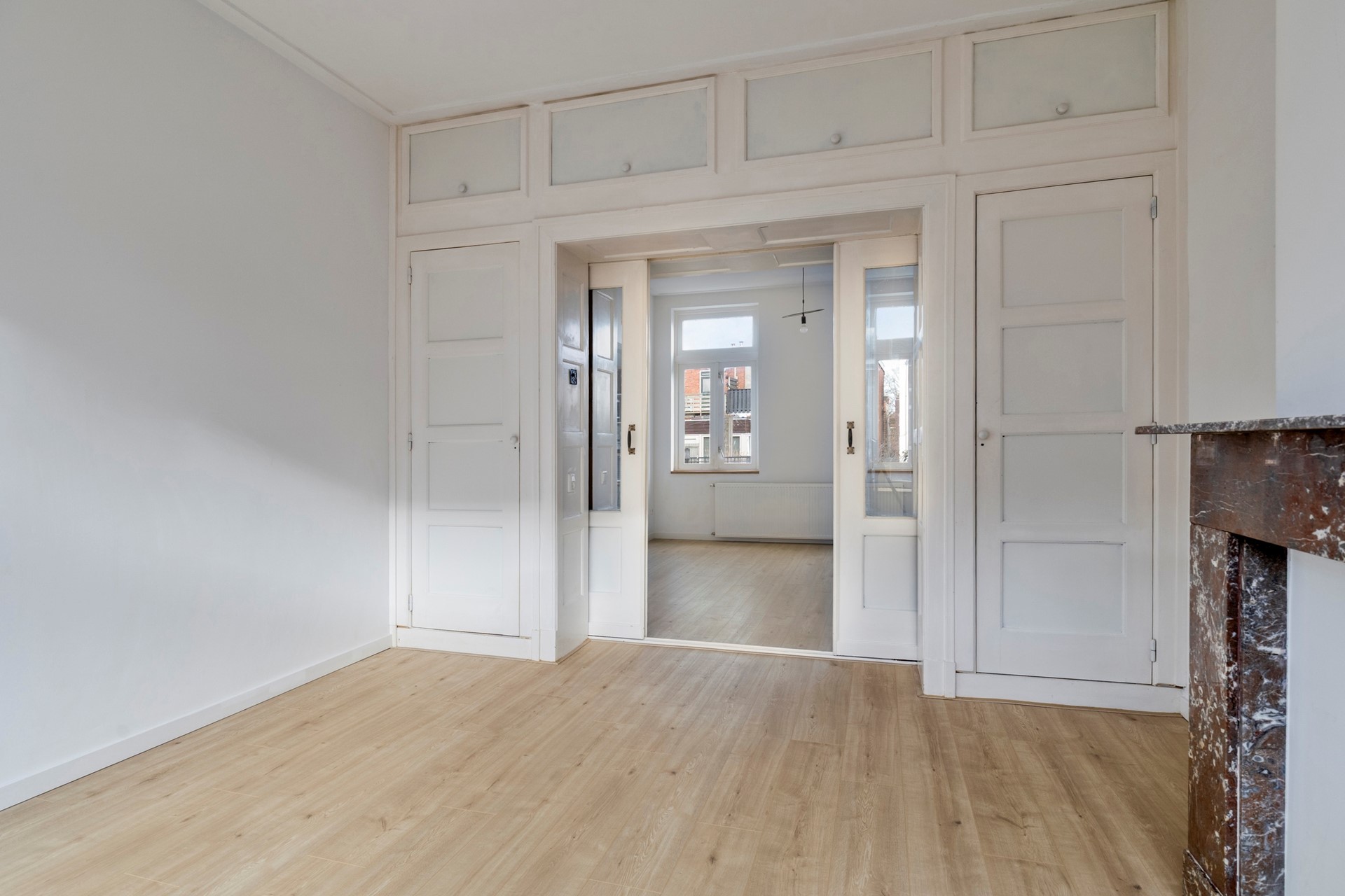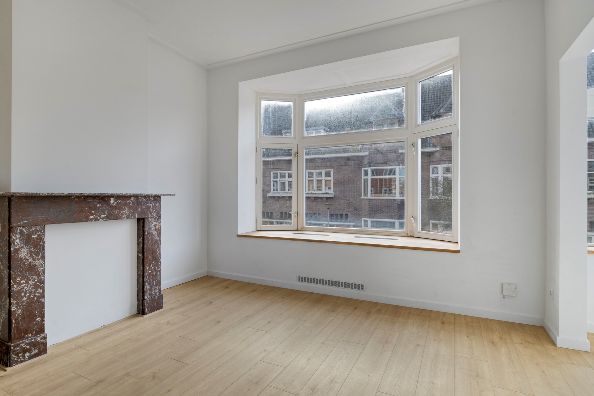 Bij binnenkomst valt direct de lichte en sfeervolle woonkamer ensuite op. Dankzij de karakteristieke erker en de grote raampartijen geniet je hier van heerlijk veel lichtinval. De originele sfeer wordt versterkt door de stijlvolle schouwen, wat het geheel een warme uitstraling geeft. Alle verwarmingsradiatoren zijn nieuw. De half open keuken is modern uitgevoerd en voorzien van hoekopstelling met diverse inbouwapparatuur. De gehele keuken is splinternieuw. Vanuit de keuken heb je toegang tot een klein dakterrasje. Aan de voorzijde bevindt zich een extra kamer, ideaal als werkplek, hobbyruimte of logeerkamer. Deze ruimte is zowel vanuit de woonkamer als vanuit de hal bereikbaar, wat zorgt voor extra flexibiliteit.