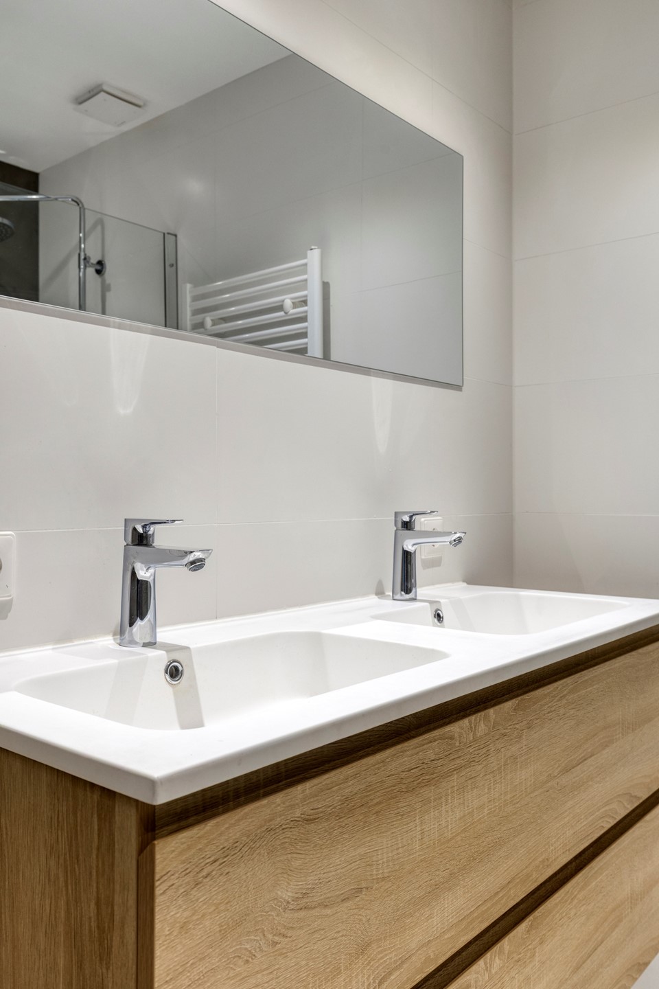 Op de tweede verdieping vind je drie ruime en praktische slaapkamers. Perfect voor een gezin, thuiswerkers of voor wie gewoon graag wat extra ruimte heeft. De moderne badkamer is mooi afgewerkt en compleet ingericht met een inloopdouche, dubbel wastafelmeubel, tweede toilet en een aansluiting voor de wasmachine. Ook hier geldt: alles is nieuw.