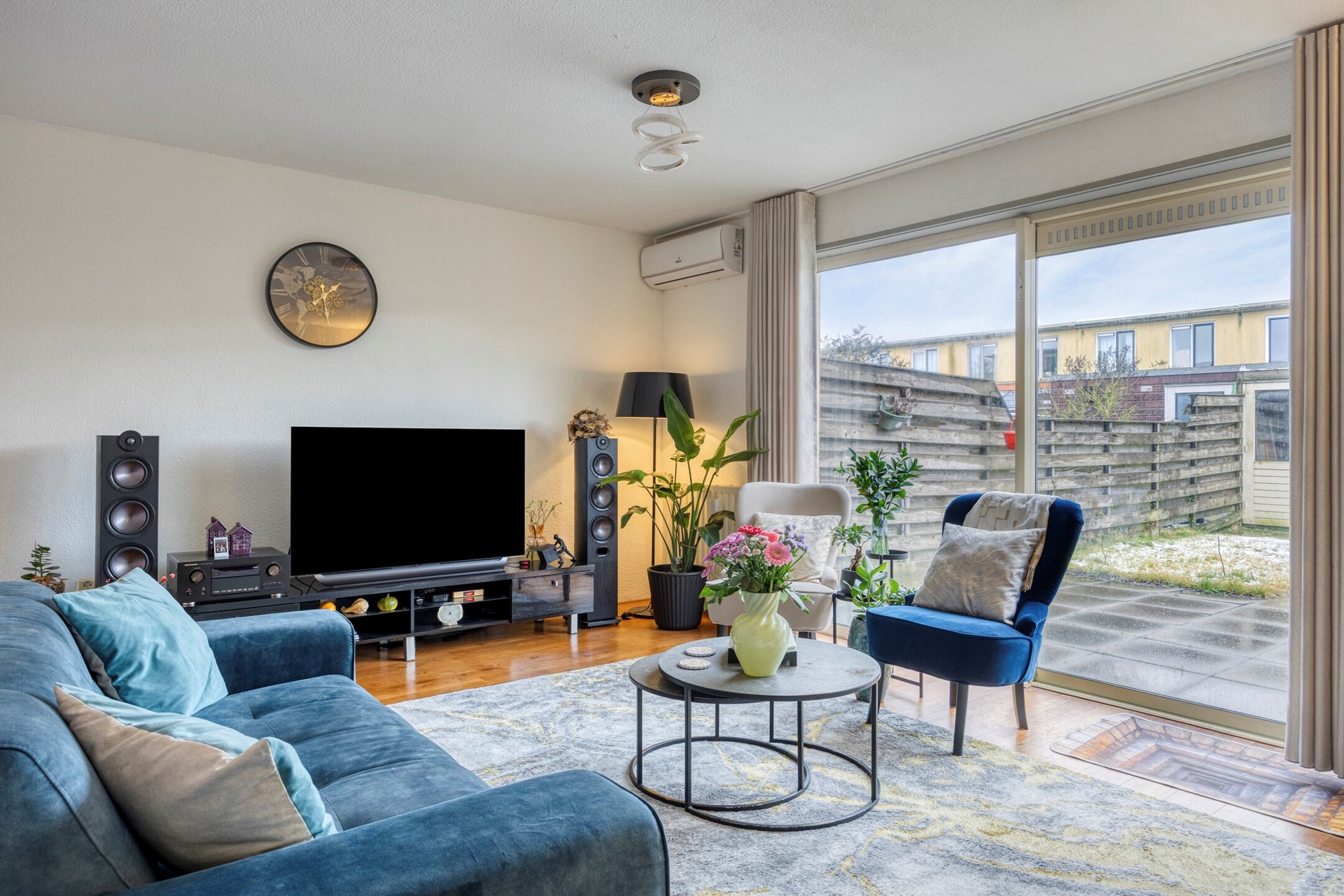 - Airconditioning (koelen én verwarmen) in woonkamer en slaapkamer;