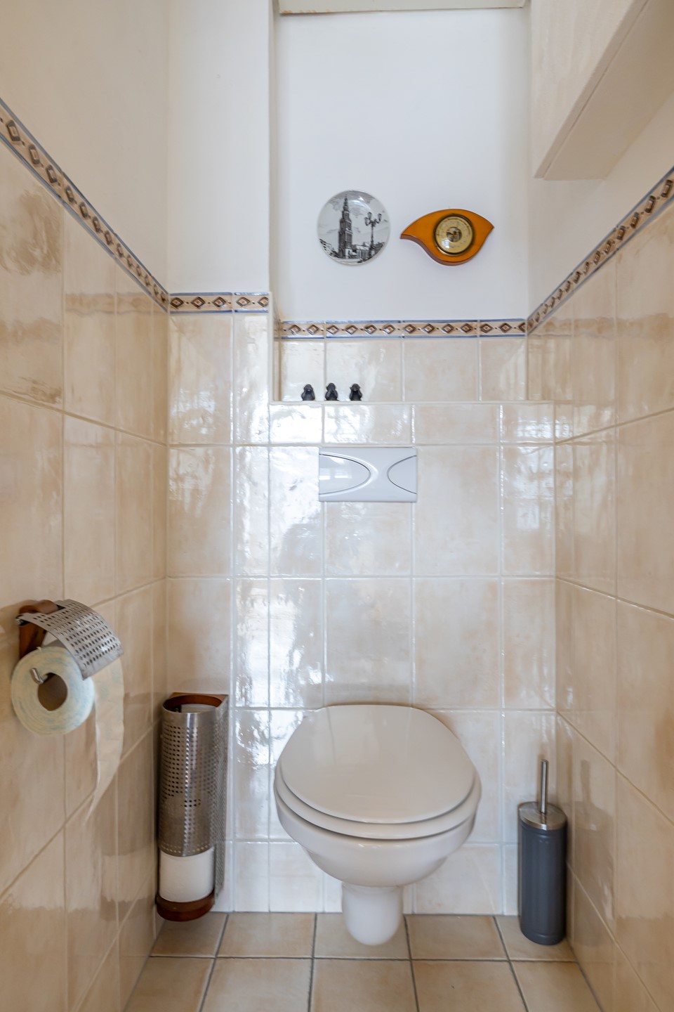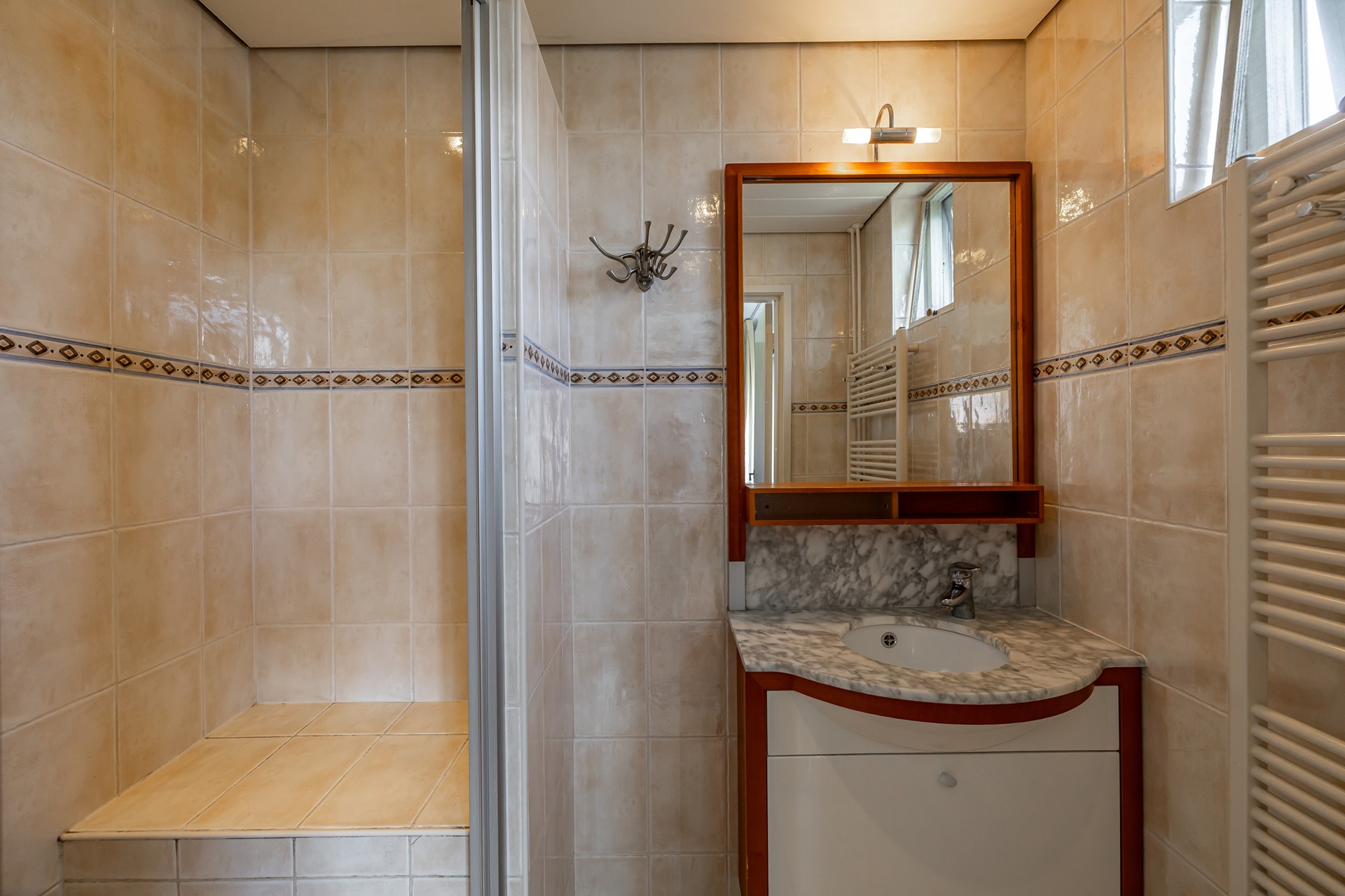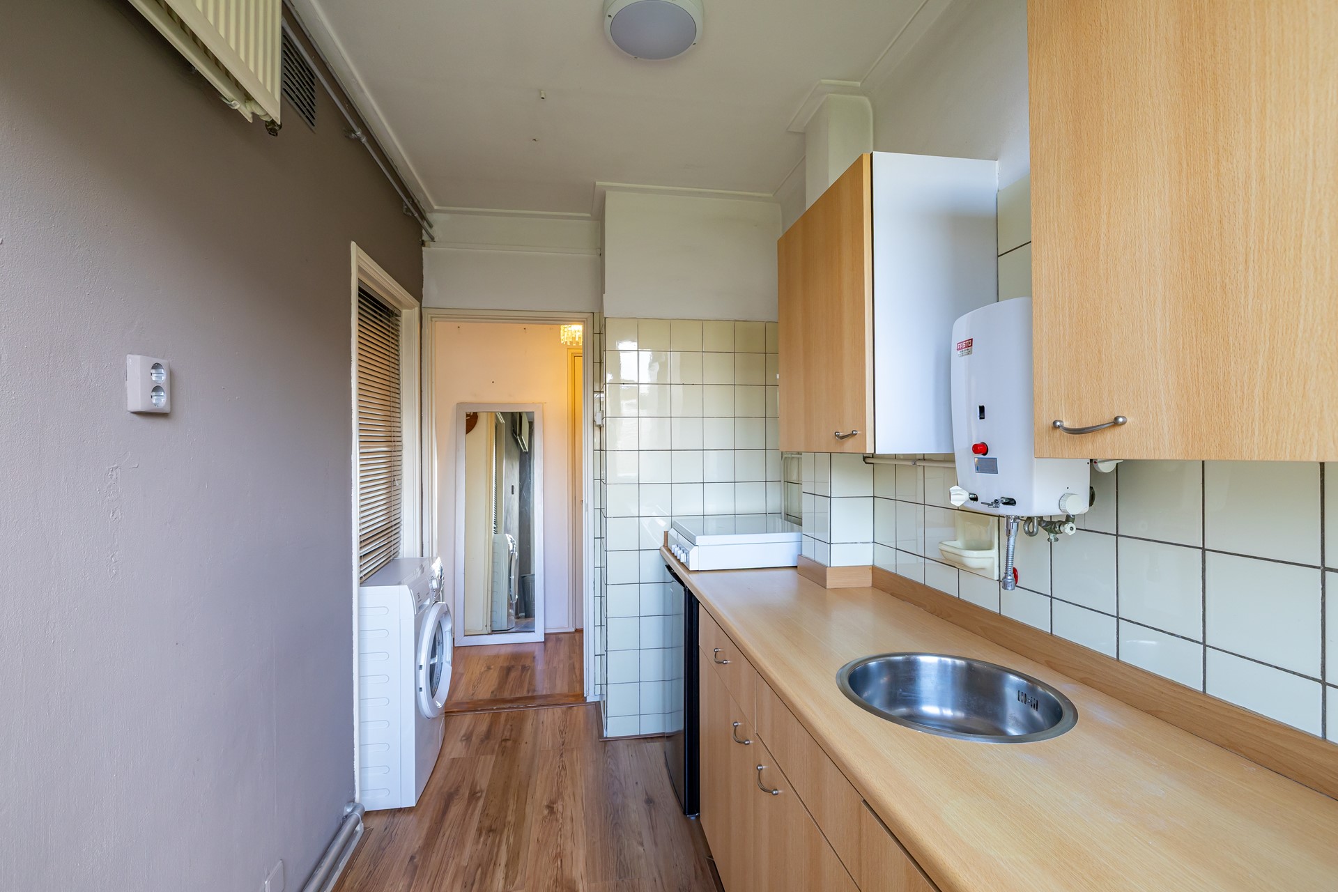 De keuken en sanitaire ruimtes zijn eenvoudig, maar netjes en goed onderhouden. De badkamer voorziet in een douchecabine, handdoekradiator en een wastafelmeubel. In de keuken is de aansluiting voor een wasmachine.