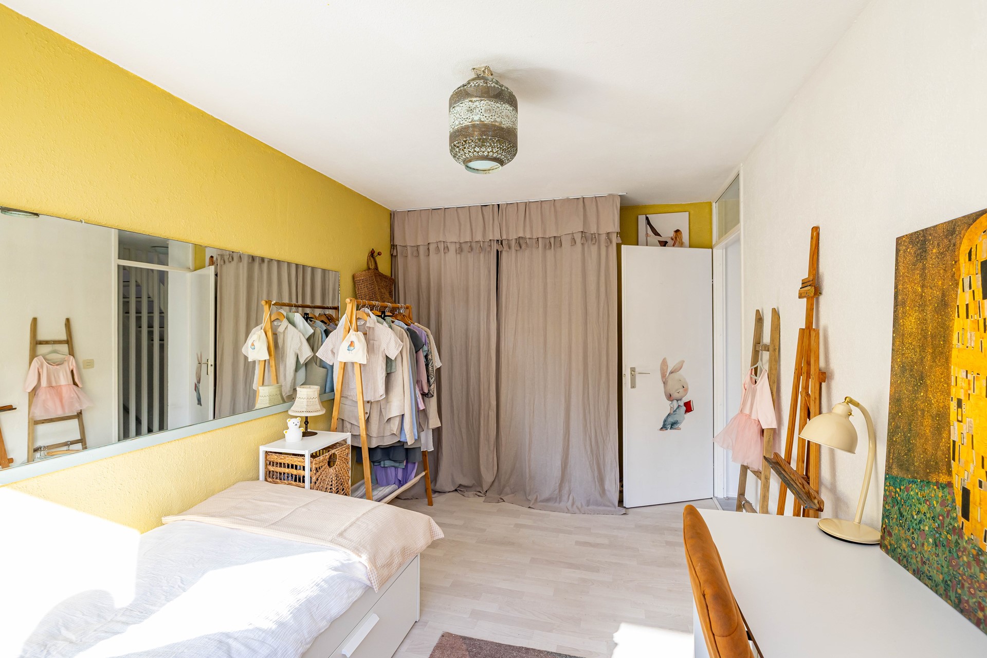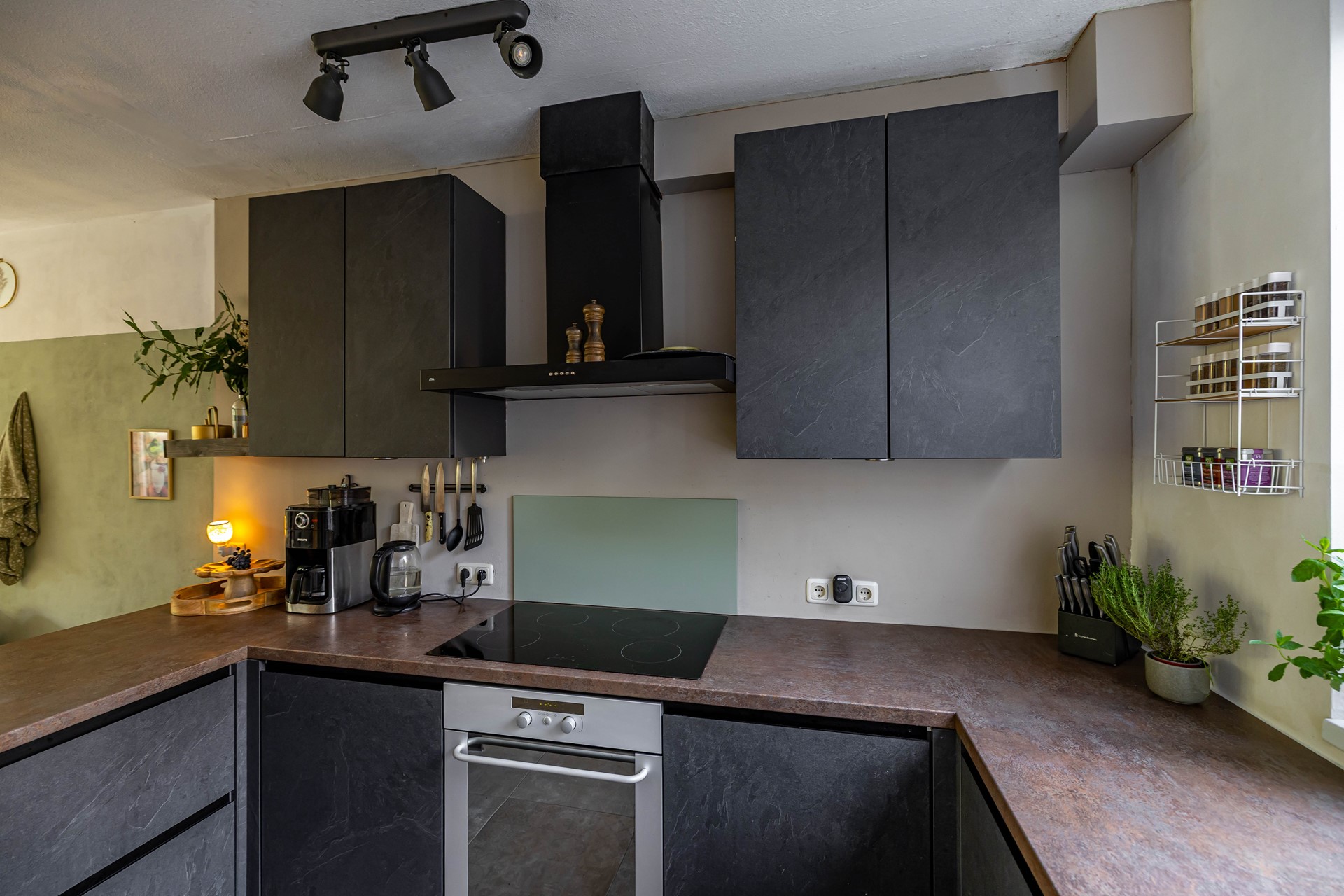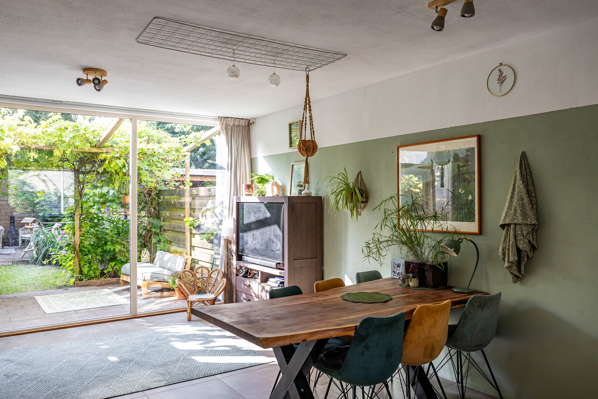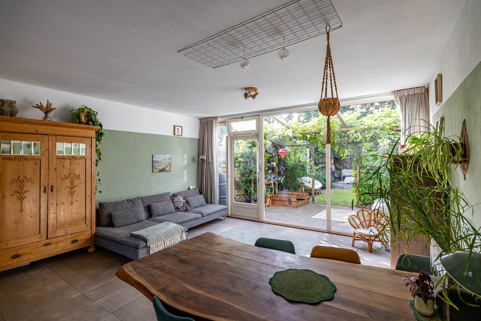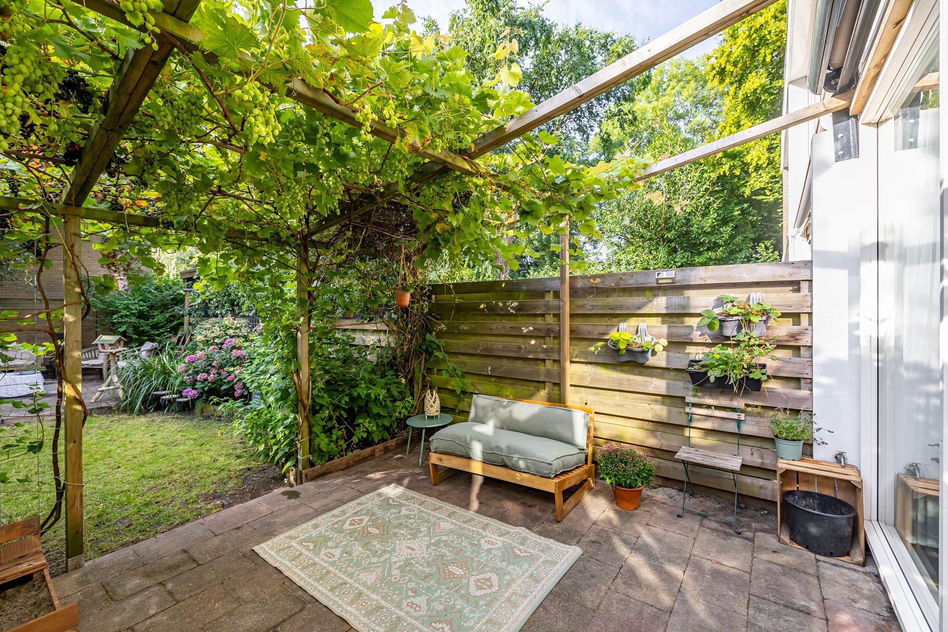 De woning heeft een ruime woonkamer en eigentijdse open keuken voorzien van inbouwapparatuur. De hoekopstelling geeft veel werk- en bergruimte. Via een loopdeur bereik je de zonnige tuin op het zuiden. Deze heeft een groen karakter en verkoelende schaduw dankzij de begroeiing langs de pergola. Dankzij twee terrassen is er altijd een plekje in de zon of schaduw te vinden.