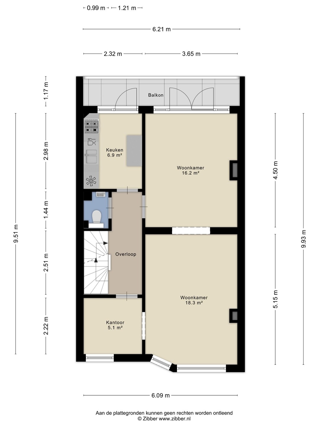 Via de entree op de begane grond bereik je de trapopgang naar de eerste verdieping. Hier kom je uit in de hal die toegang biedt tot het toilet, de keuken en de zeer royale, lichte woonkamer. Dankzij de grote raampartijen en de gunstige ligging valt er veel natuurlijk licht naar binnen, wat zorgt voor een prettige en ruimtelijke sfeer. De woning is voorzien van kunststof kozijnen, wat bijdraagt aan het wooncomfort en onderhoudsgemak. Zowel vanuit de woonkamer als vanuit de keuken heb je toegang tot het balkon, een fijne plek om buiten te zitten.