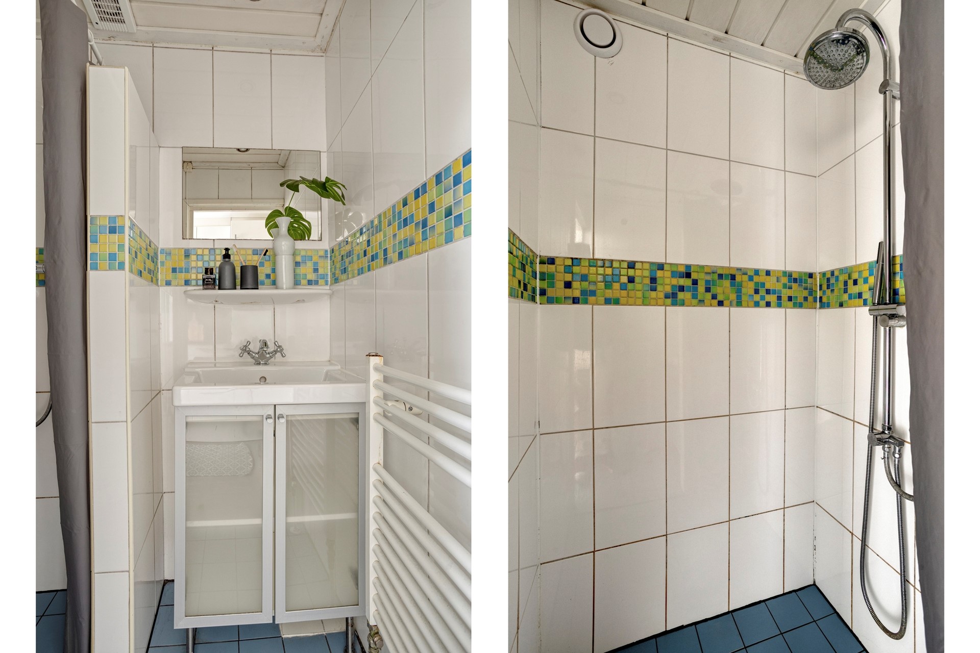 De badkamer is uitgerust met een douche en er is een separaat toilet aanwezig.