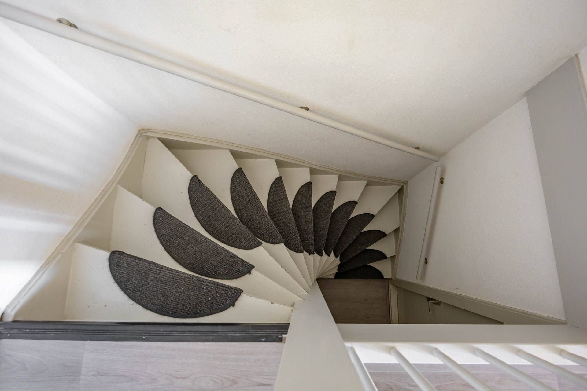 Indeling: buitentrap naar entree op 1e verdieping, dan een binnentrap naar de centrale hal met toegang tot slaapkamer, woonkamer, badkamer, berging en meterkast.