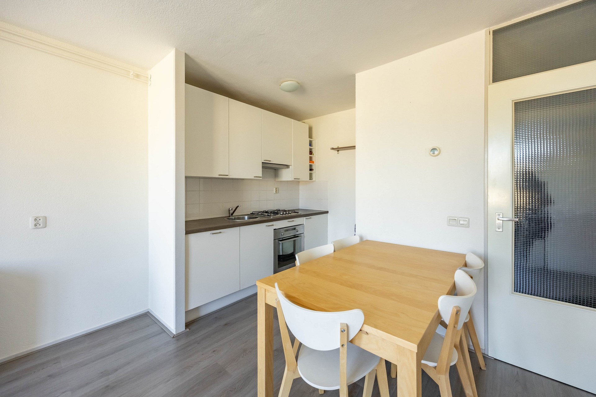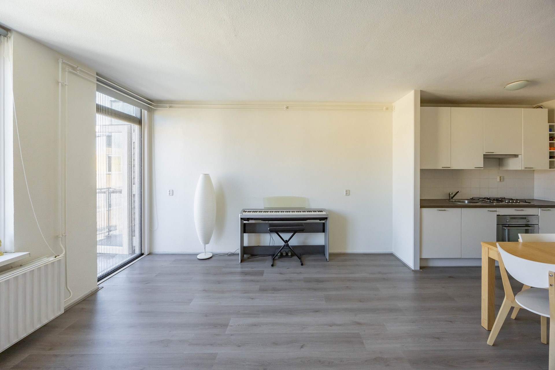 De woonkamer geniet van ruime raampartijen op het westen, waardoor er een fraaie lichtinval in de woning ontstaat. Vanuit de woonkamer stap je zo het balkon op, waar je heerlijk kunt genieten van middag- en avondzon. De keuken is eenvoudig en in neutrale kleuren afgewerkt.