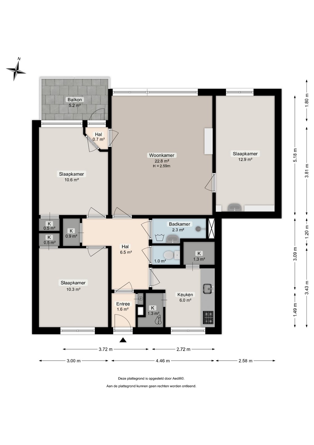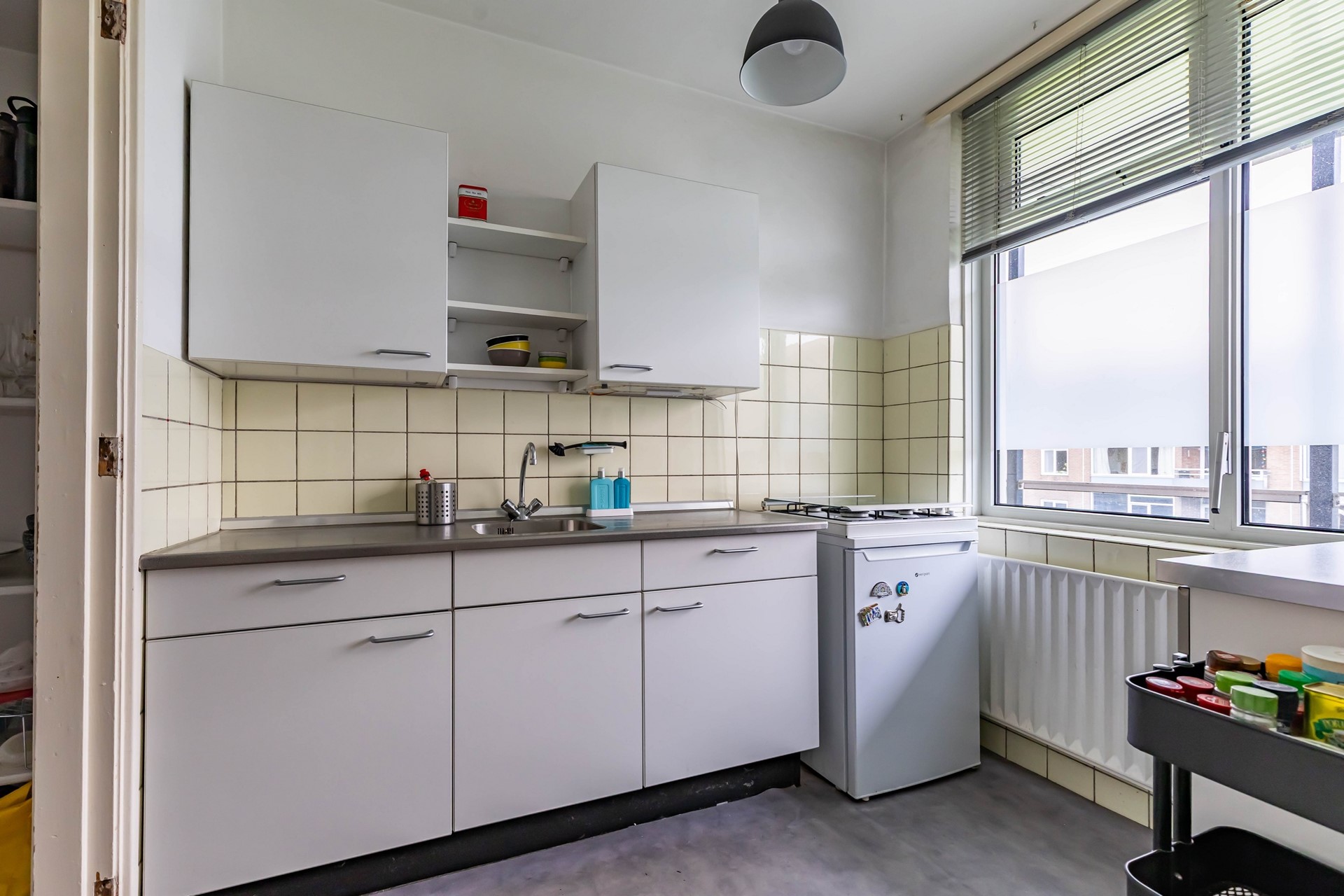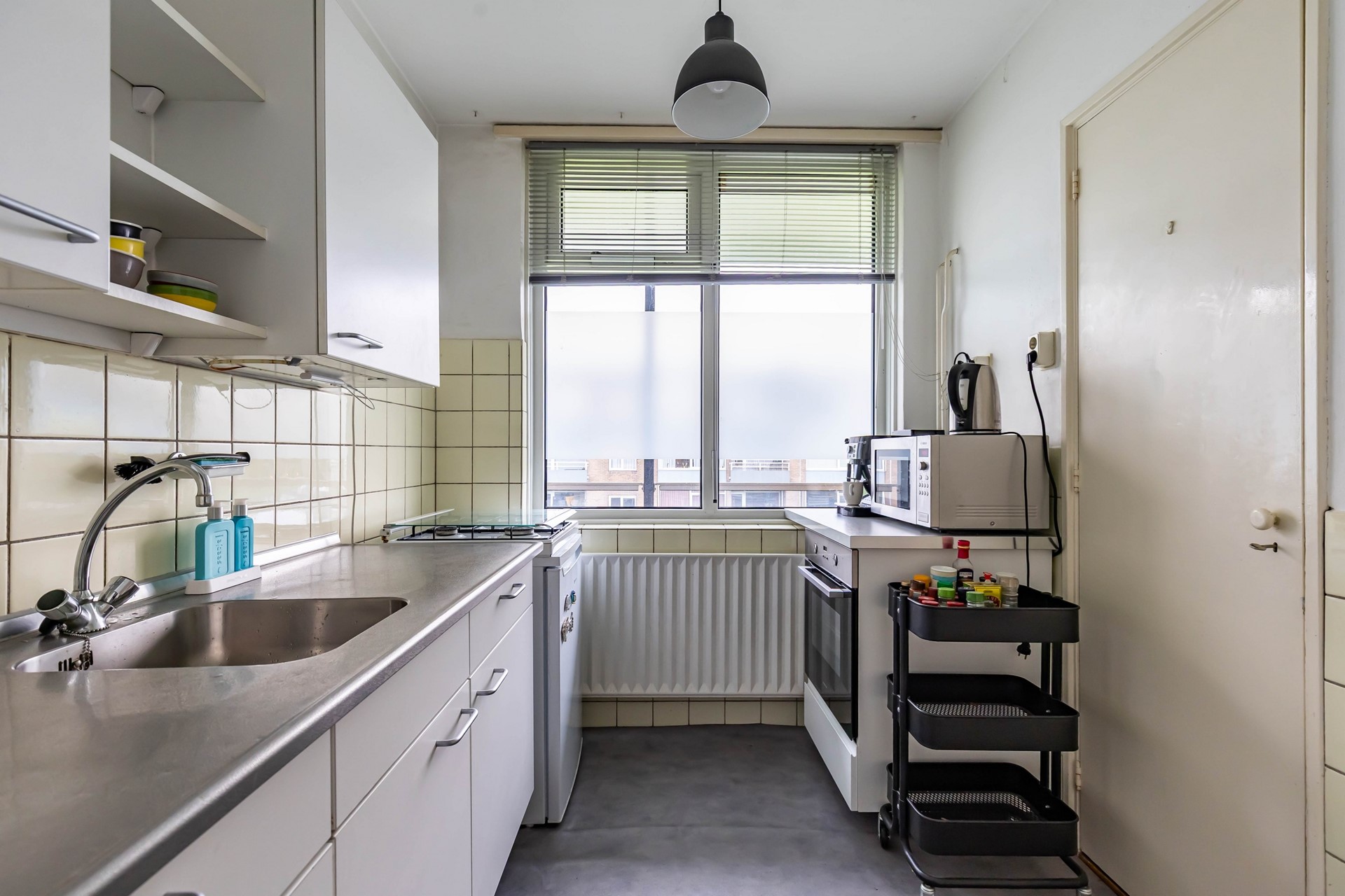Vanuit de hal toegang tot bijna alle ruimtes, te beginnen met de keuken. Deze is eenvoudig, maar een echte Bruynzeel dus voor een paar honderd euro (topblad, handgrepen, kraan) heb je op het oog al een nieuwe keuken. Bovendien kan upgraden snel uit, want deze appartementen zijn zeer gewild bij een groot publiek.