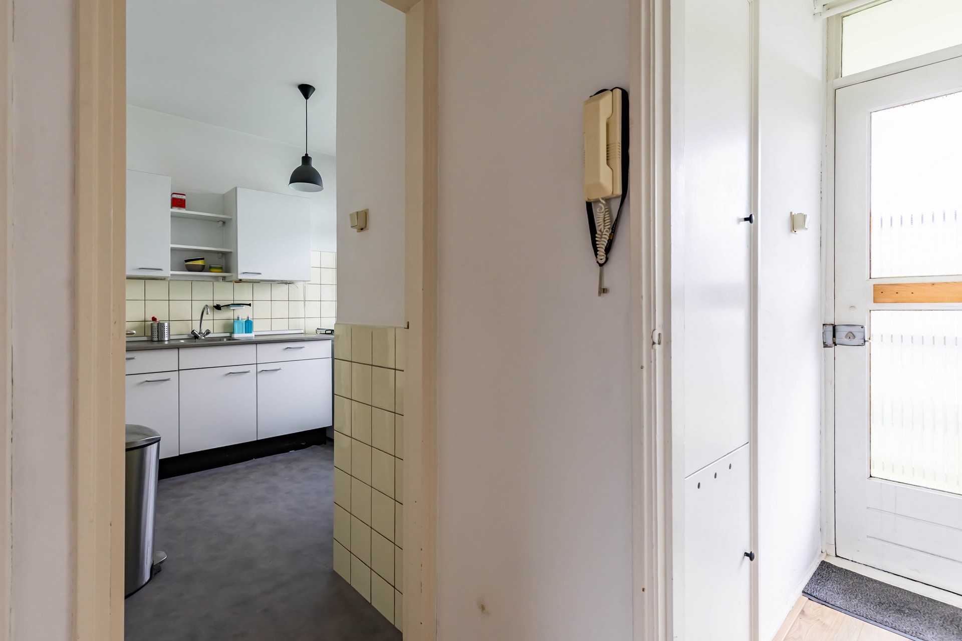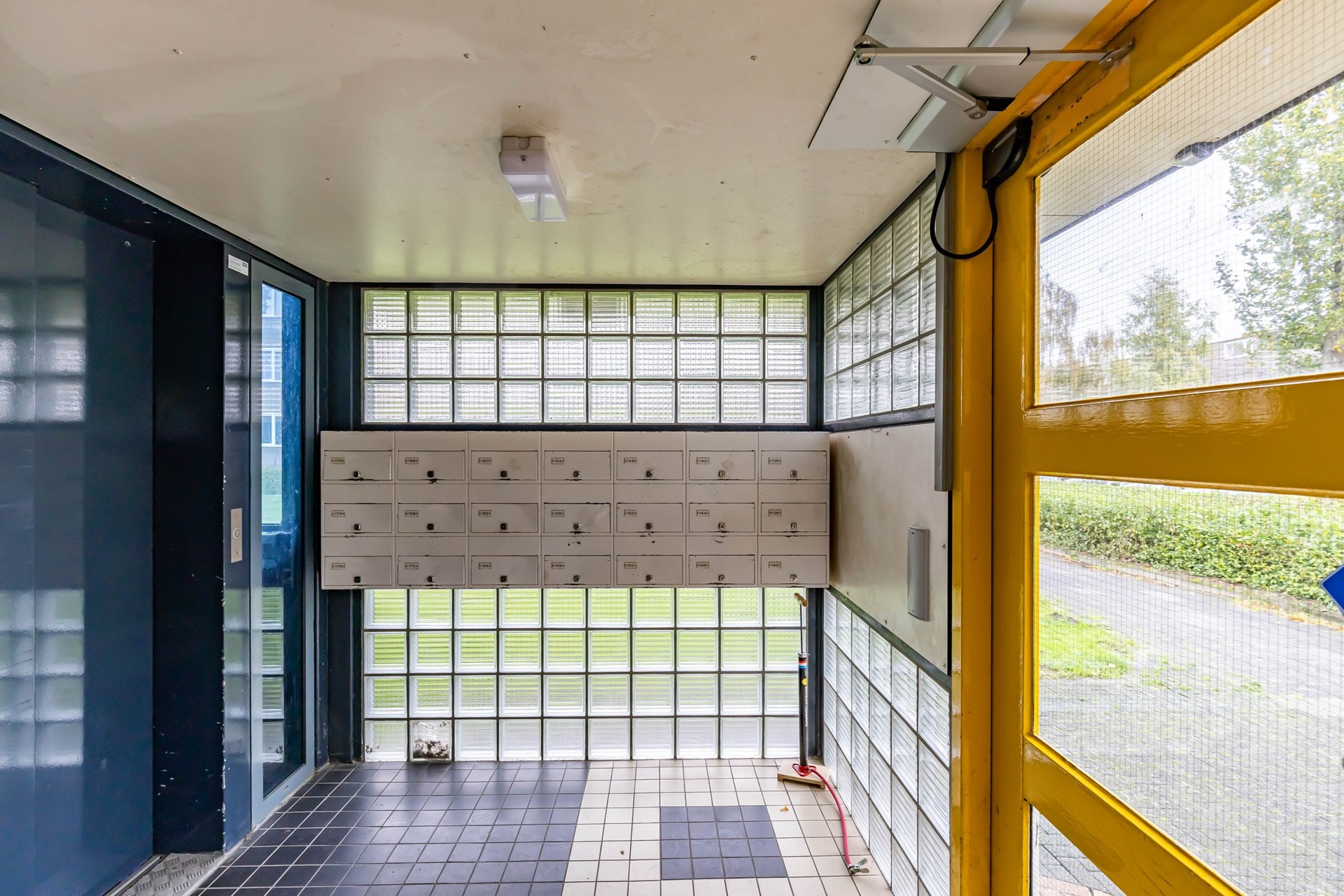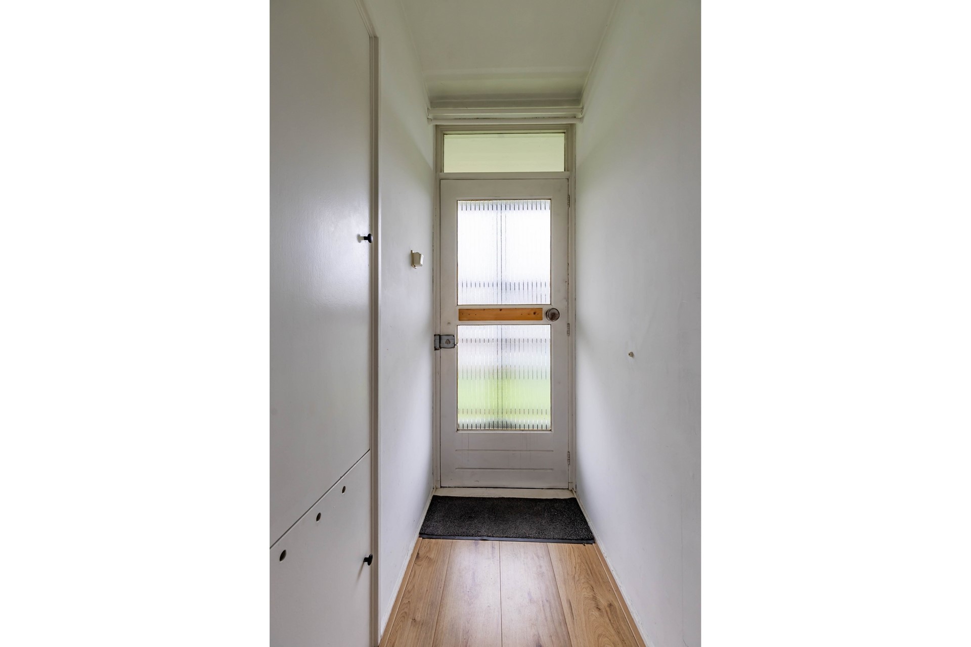 Entree, portiek met intercom en trap naar beneden naar berging (met elektra).