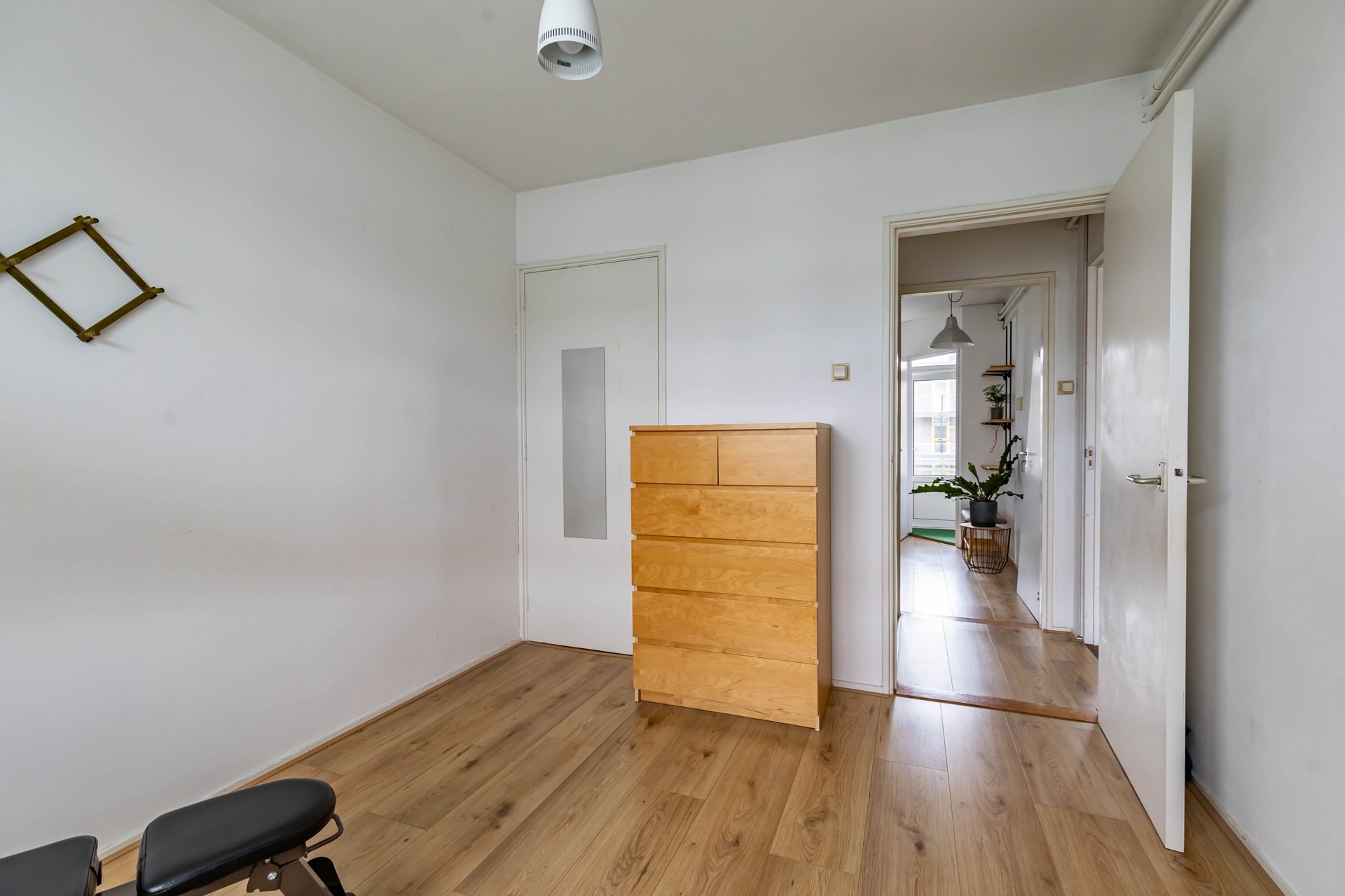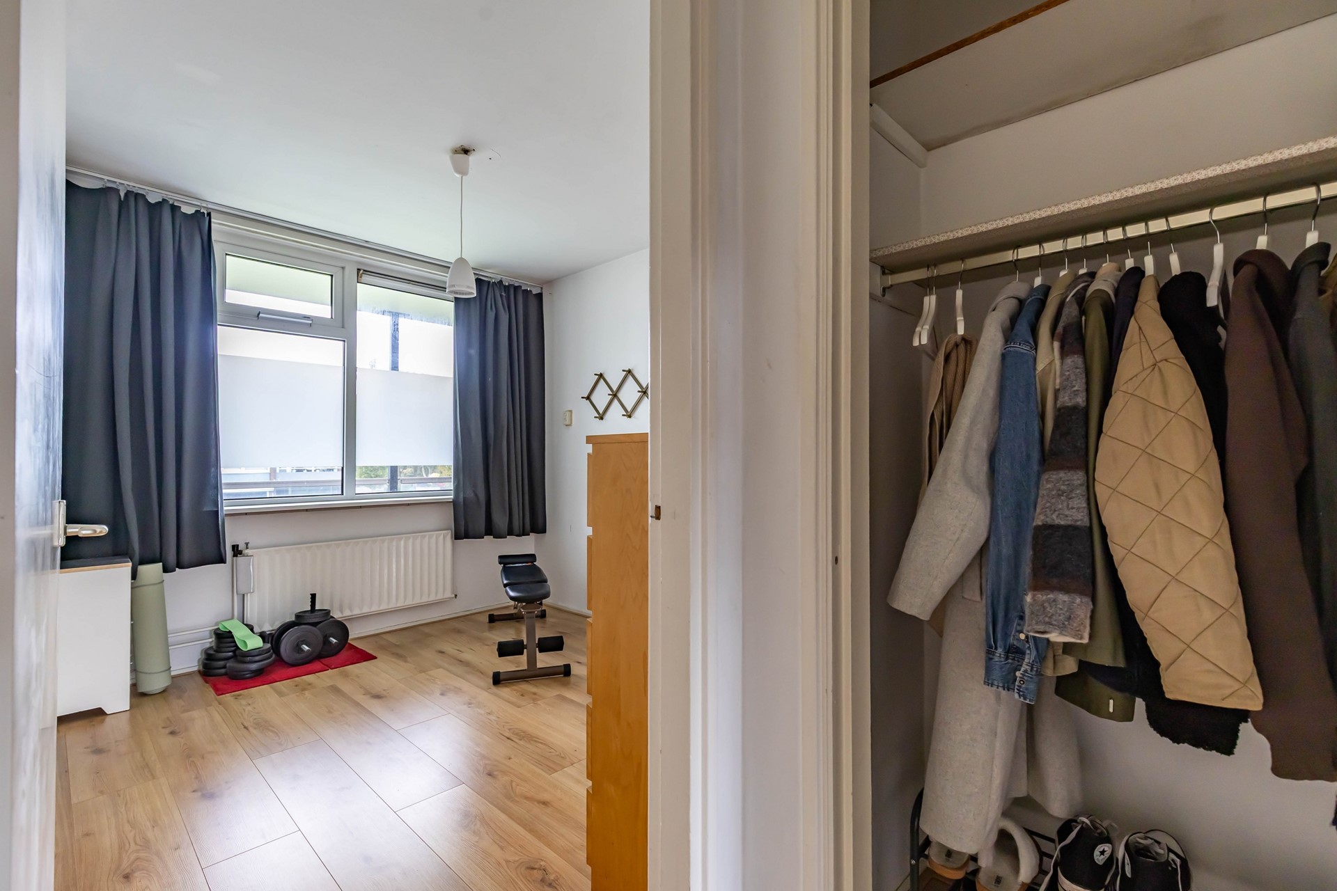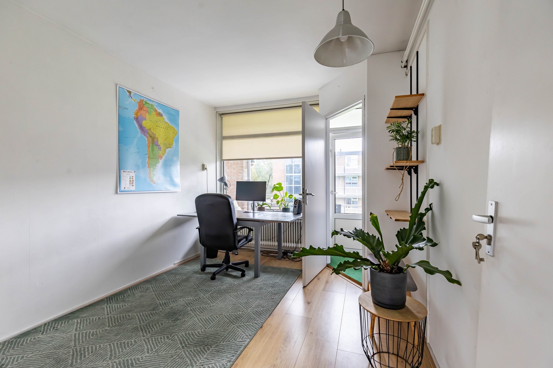 Slaapkamer 2 heeft ook een inbouwkast en een deur naar het balkon op het zuiden. Nu in gebruik als werkkamer.