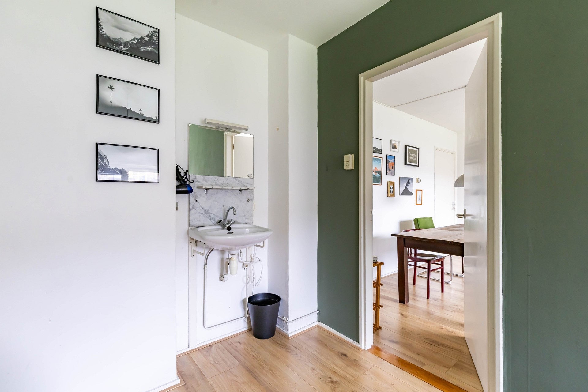 Deze kamer heeft doorgaans (in vergelijkbare appartementen) een open verbinding met de woonkamer, maar is hier voorzien van een tussenwand. Omdat de tussenwand ‘los’ is geplaatst, kun je die eenvoudig verwijderen. Je creëert dan bijvoorbeeld een open eetkamer.