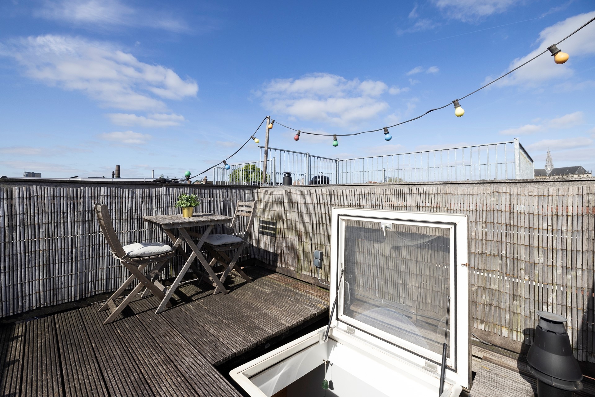 Op de tweede etage vind je de tweede slaapkamer en de opgang naar het dakterras. Vanaf het dakterras heb je uitzicht op het oude centrum, het Spaarne en de rest van de stad.