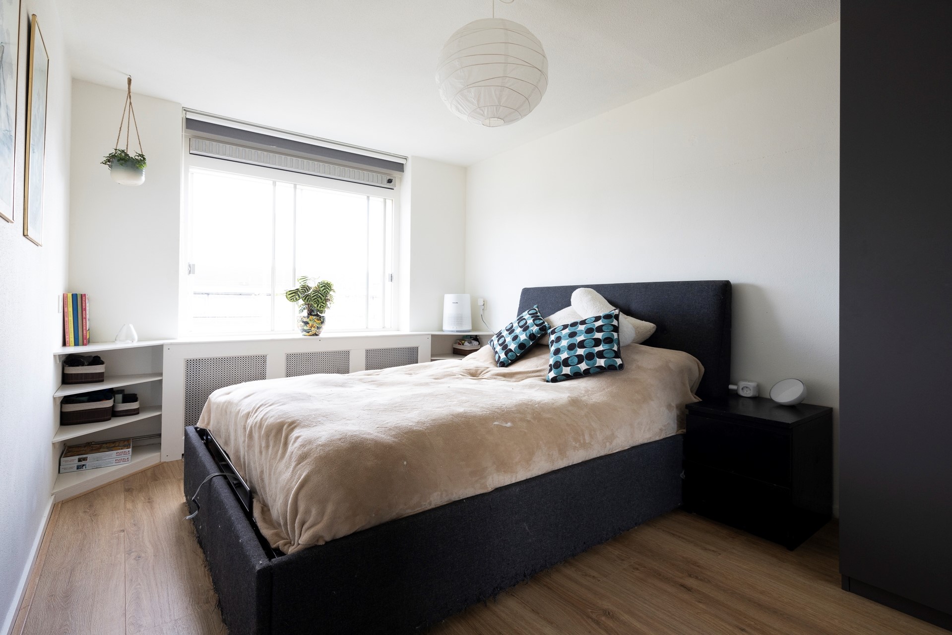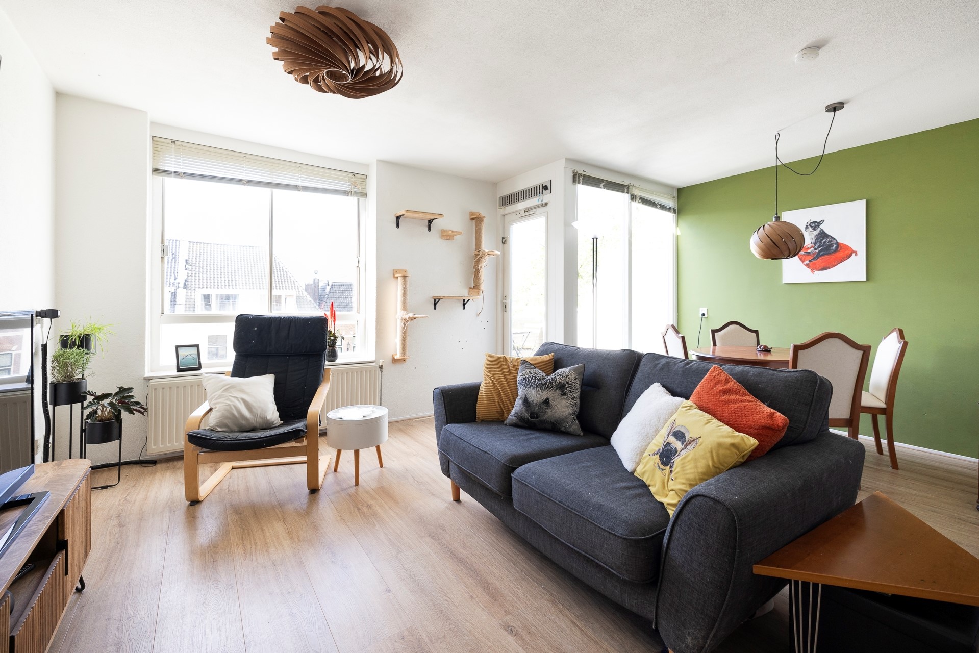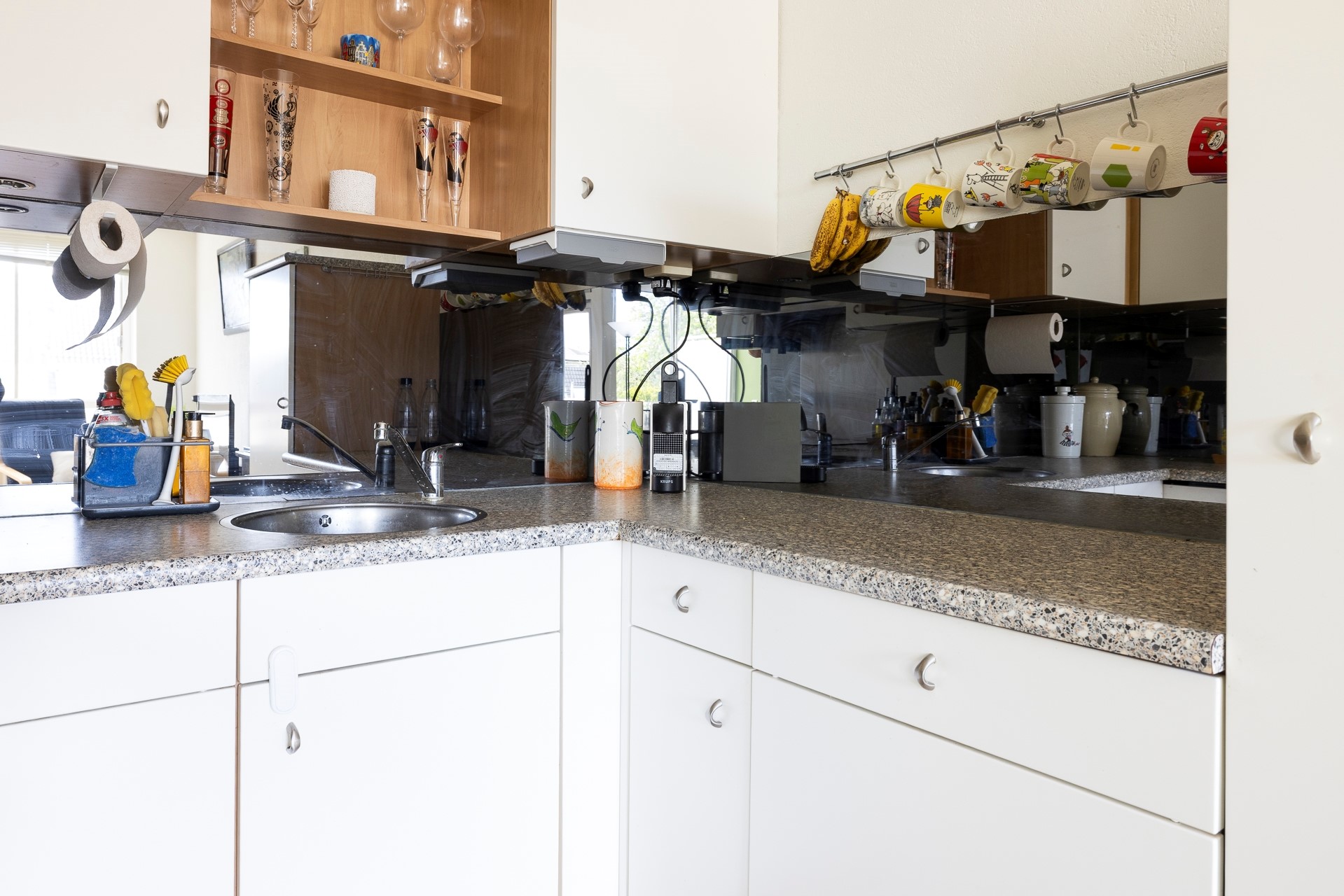 Met de lift of trap kom je op de derde etage waar je nog 1 trap neemt naar de vierde etage. Hier vind je de entree en gang appartement met doorgang naar ruime woonkamer met vrij uitzicht over de stad en toegang tot het zonnige balkon op het zuiden. De open keuken is voorzien van diverse inbouwapparatuur en veel opbergruimte. Vanuit de gang is er toegang tot de badkamer met bad/douche, wastafel en wasmachineaansluiting. De gang geeft tevens toegang tot het het separate toilet en de twee goed bemeten slaapkamers.