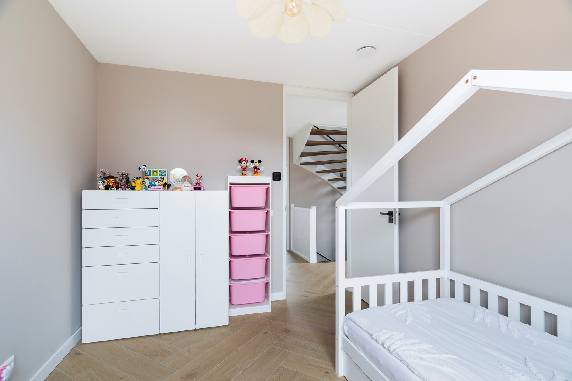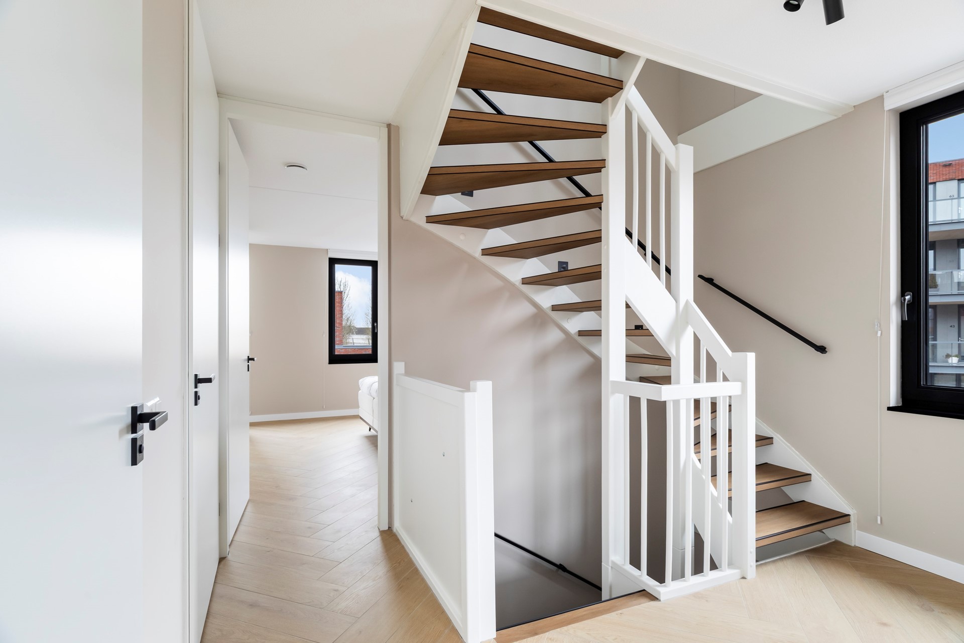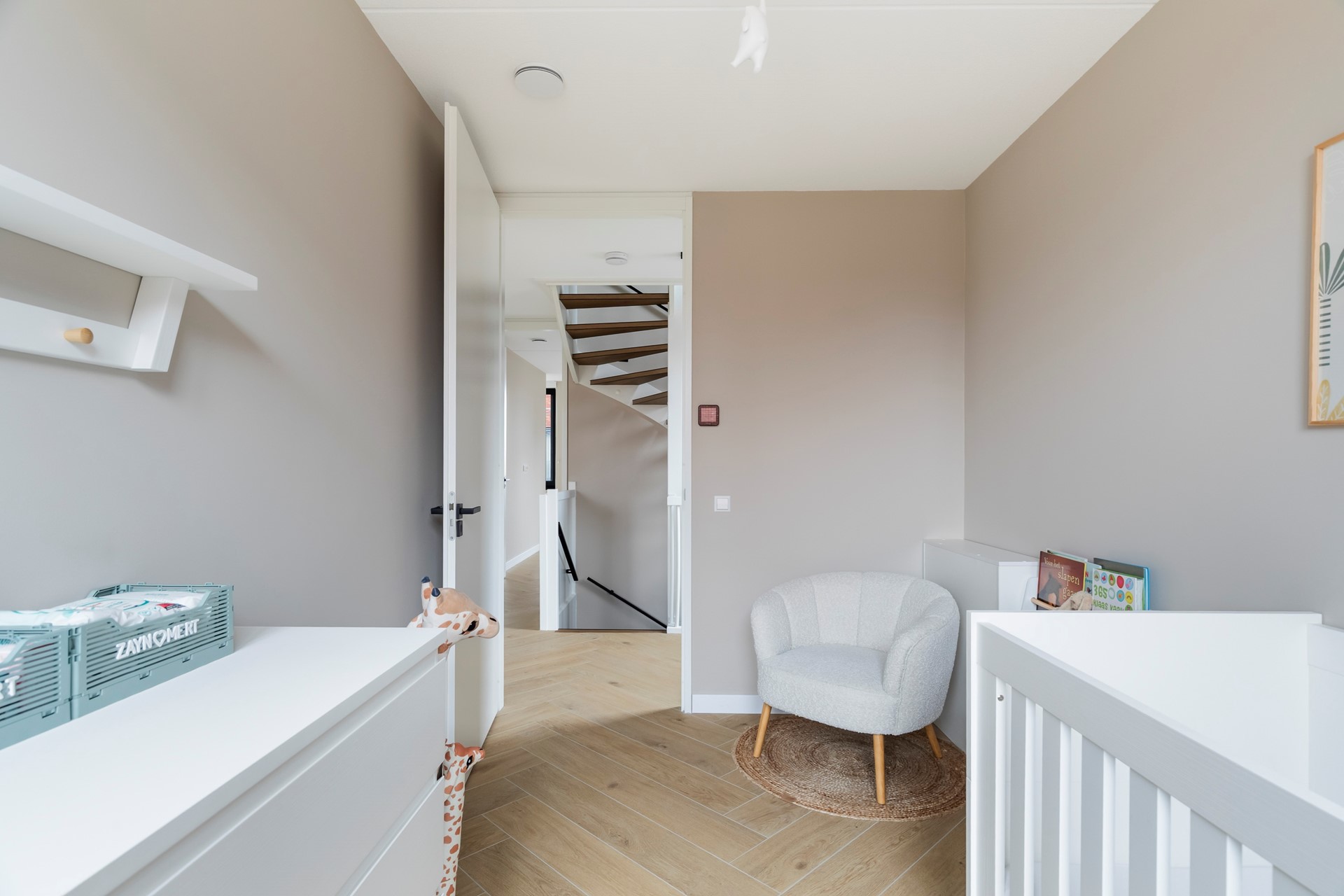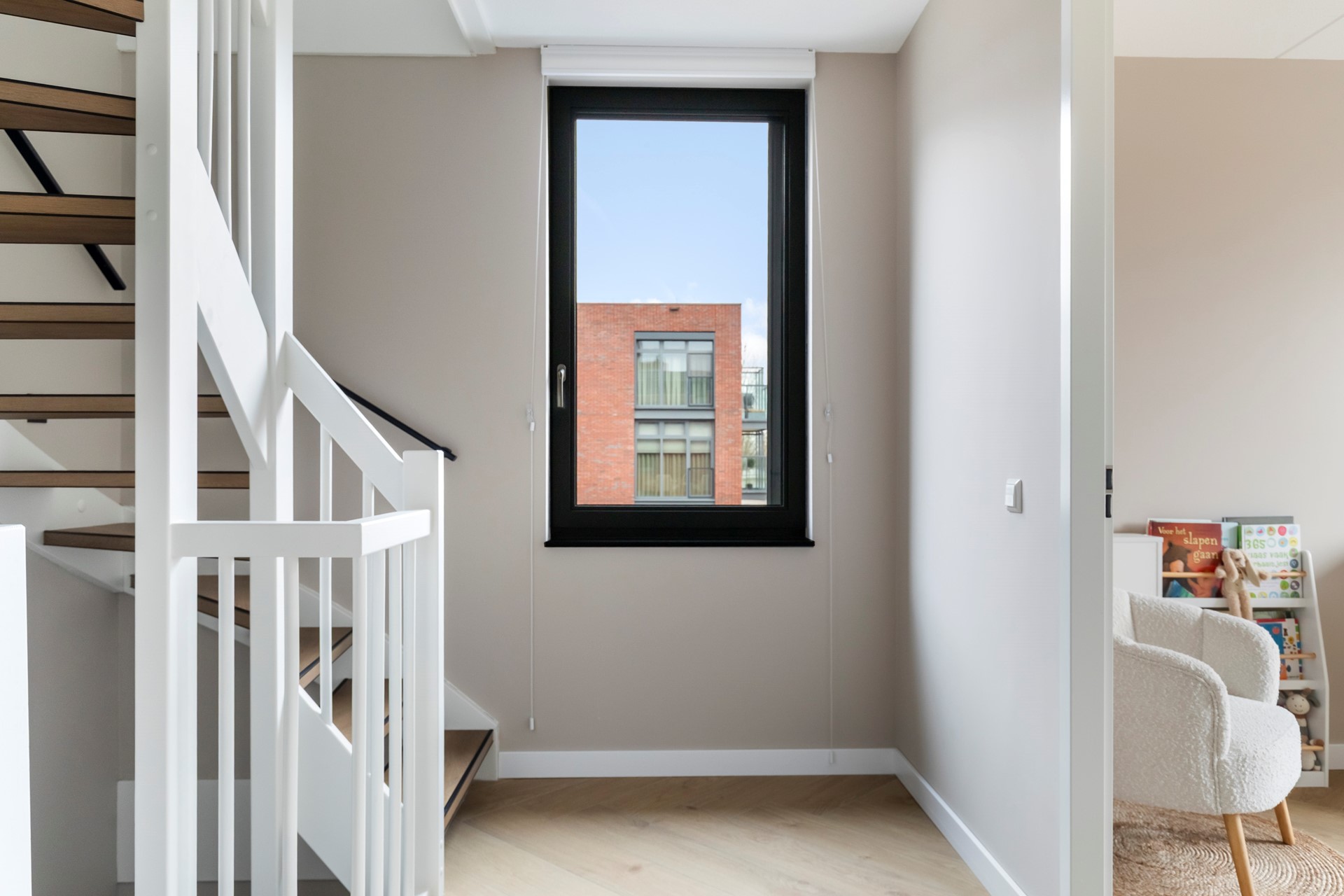 De overloop biedt toegang tot nog eens twee ruime slaapkamers en een aparte berging met wasruimte.