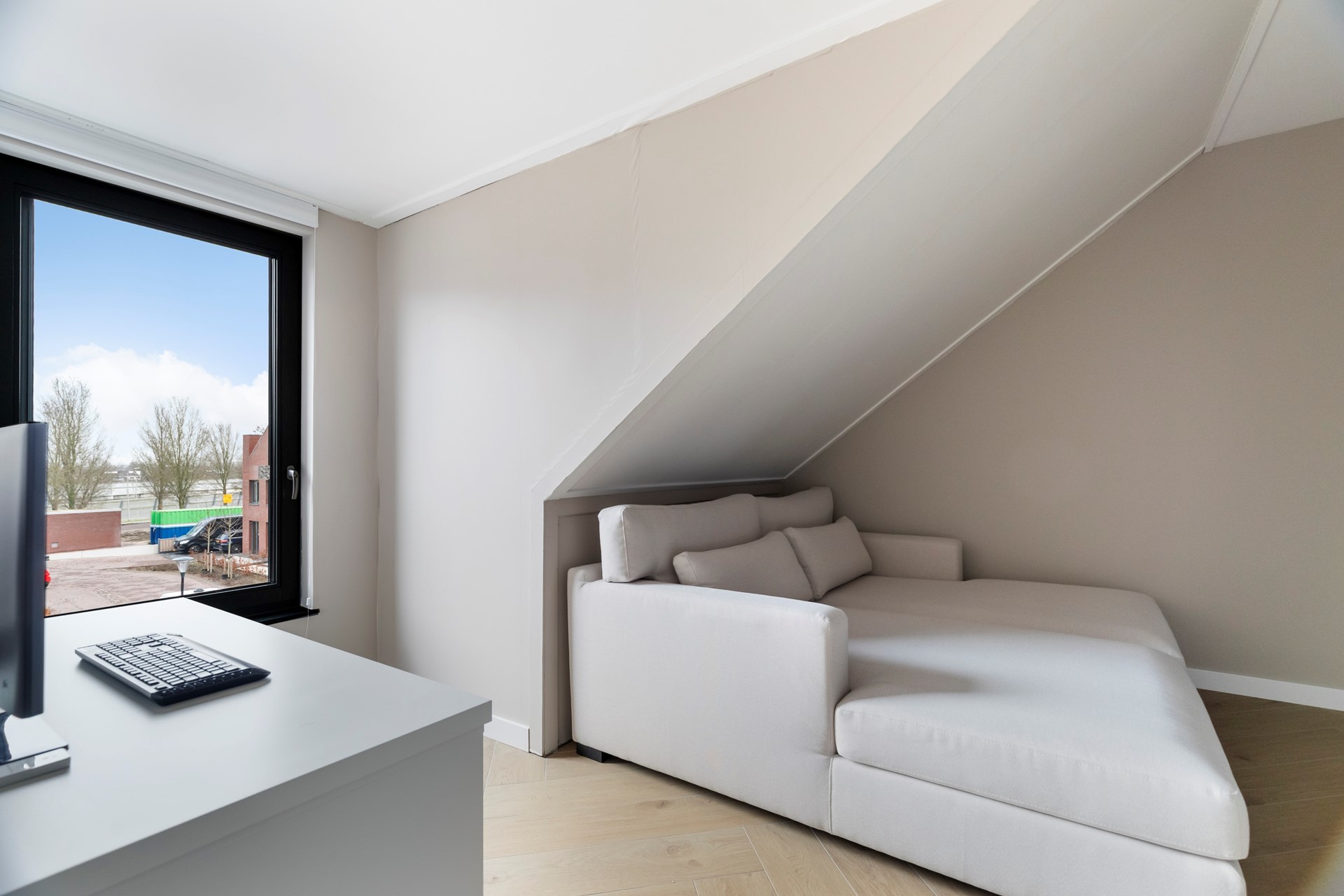 Aan de voorzijde van de woning bevindt zich de moderne leefke, alvast bedankt.