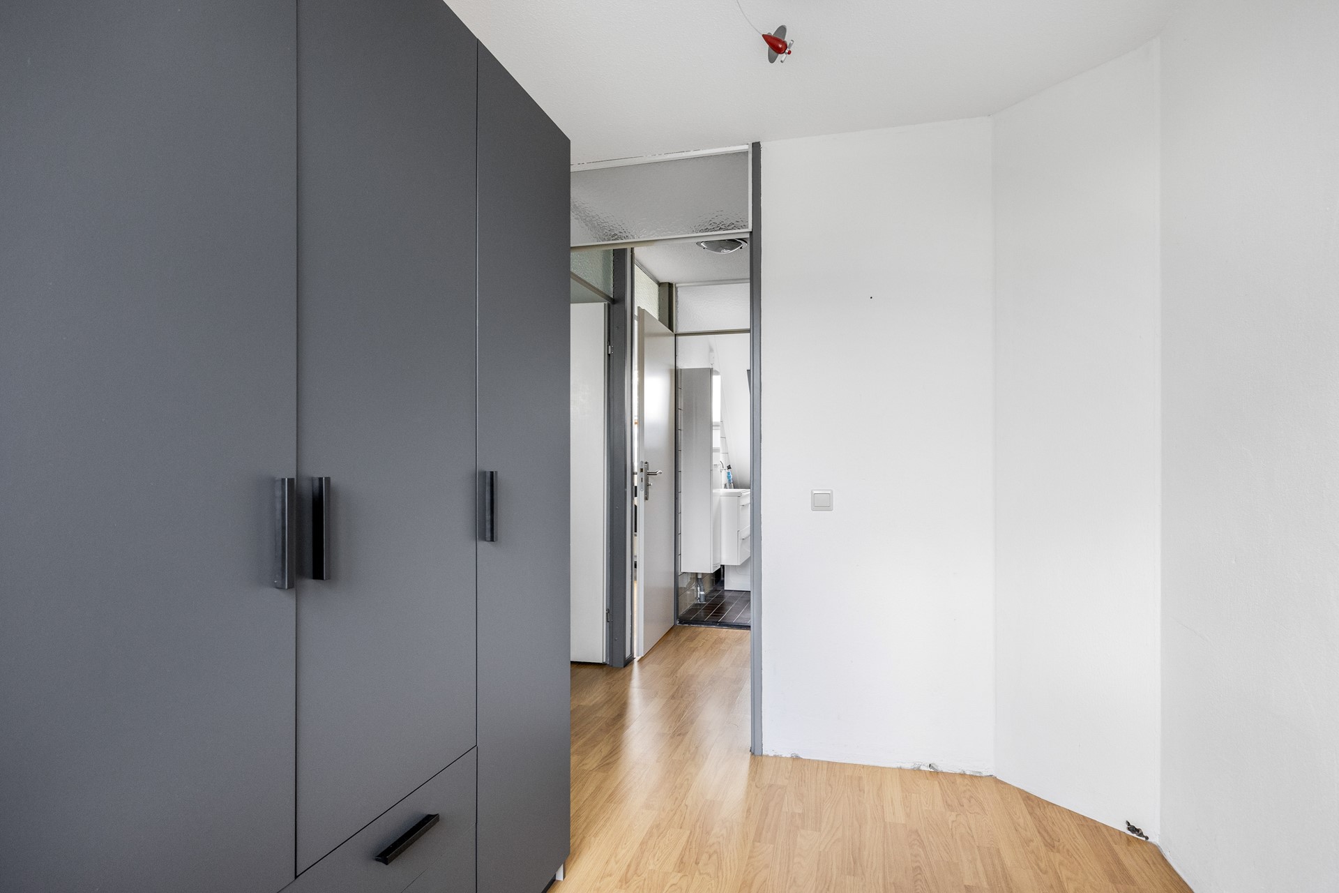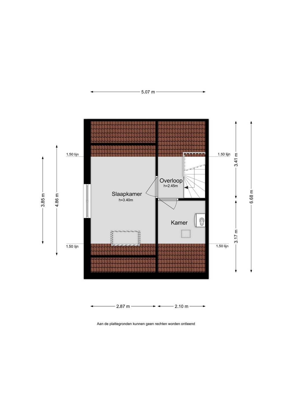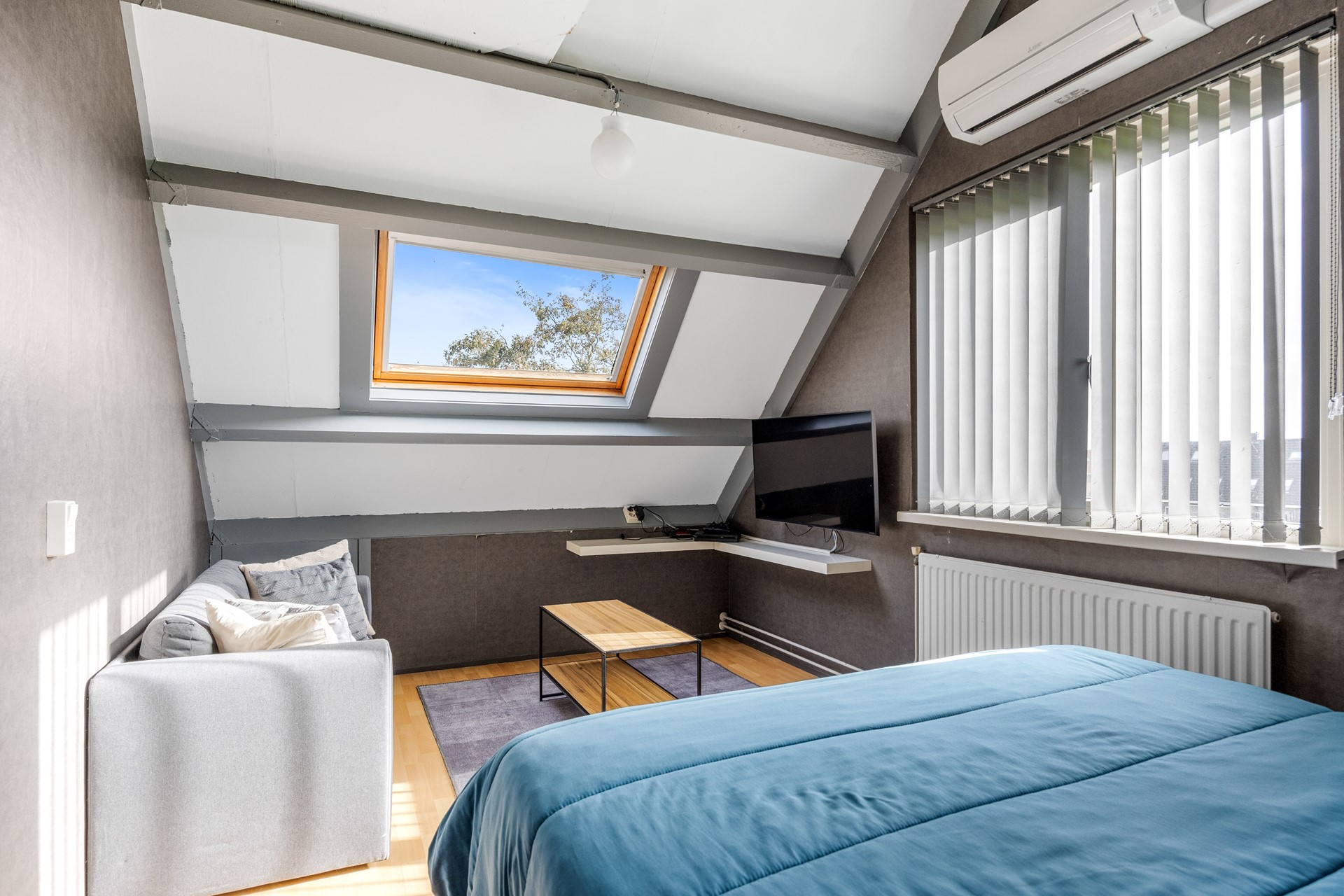 Tweede verdieping: Overloop, vierde slaapkamer met airco unit, bergruimte en cv-ruimte.
