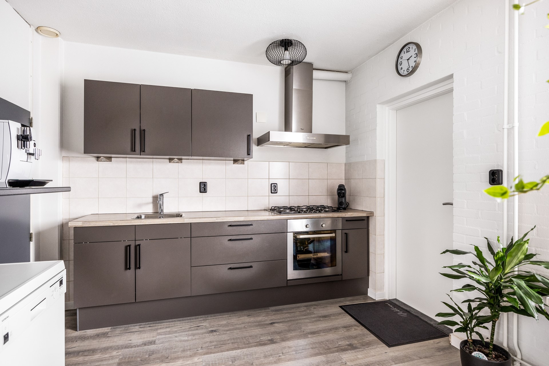 Begane grond: Entree, hal met meterkast, toegang tot bijkeuken, woonkamer met airco unit en openslaande deur naar de tuin, open keuken voorzien van enkele inbouw en losse apparatuur, tussenhal, toilet (wandcloset), trapopgang.