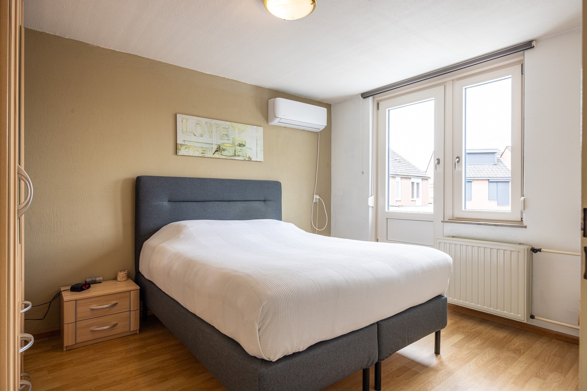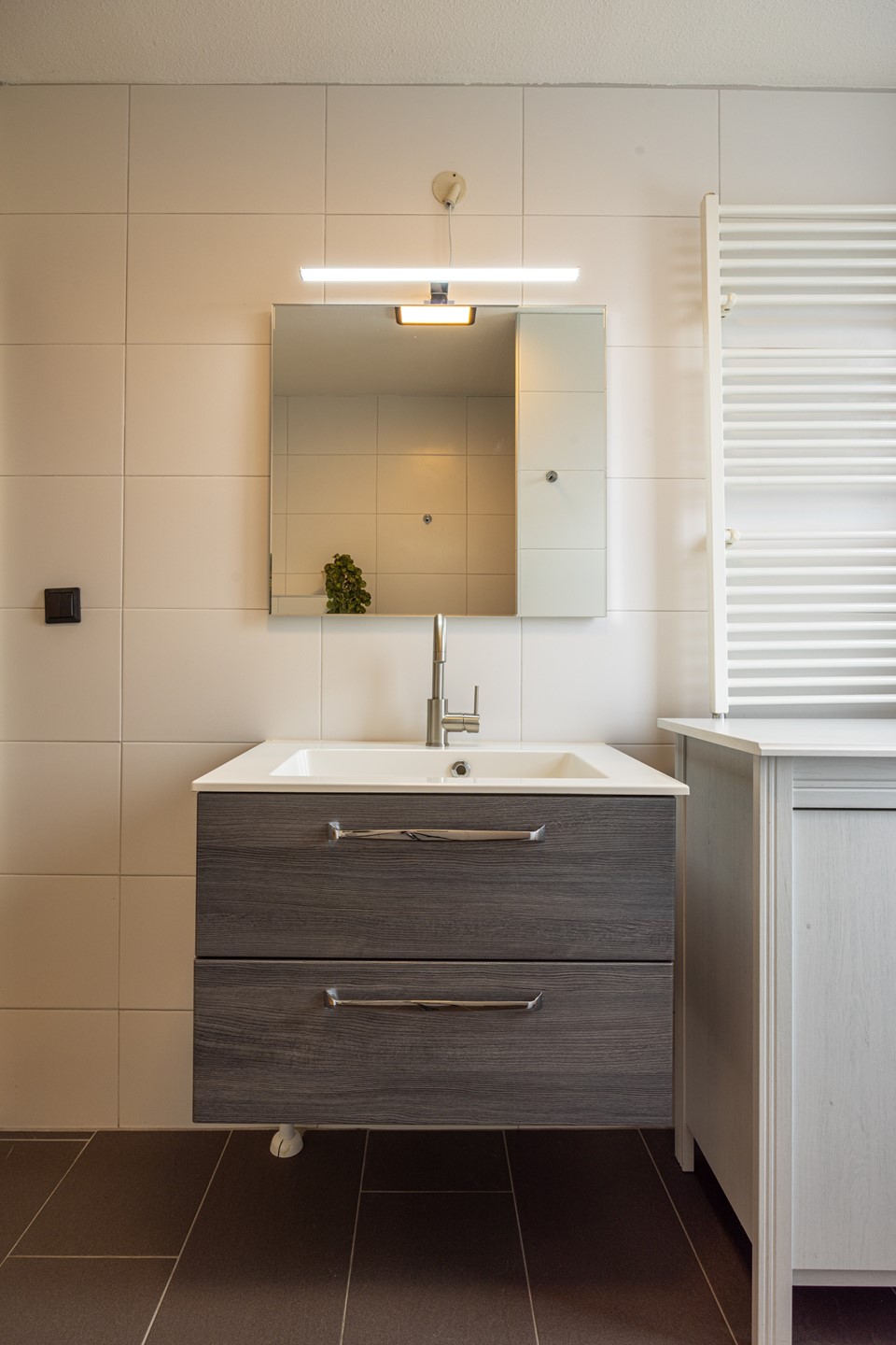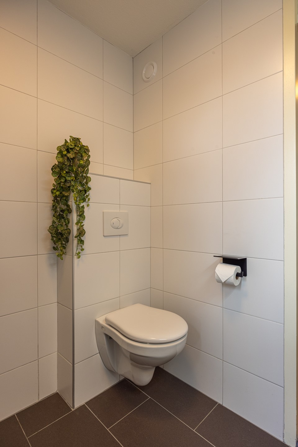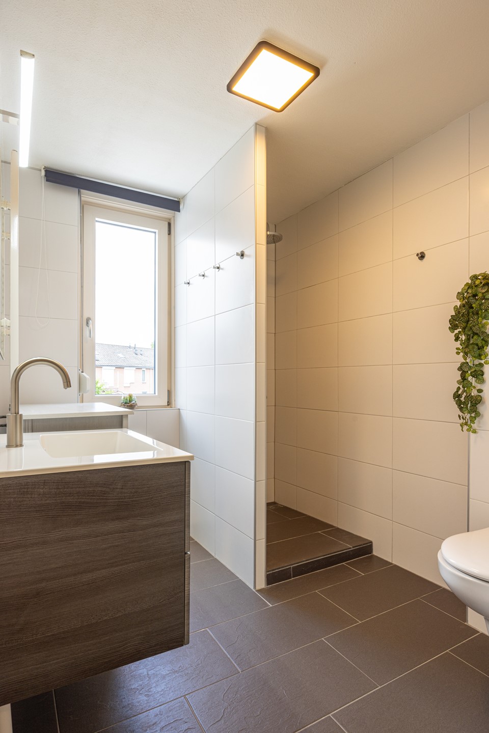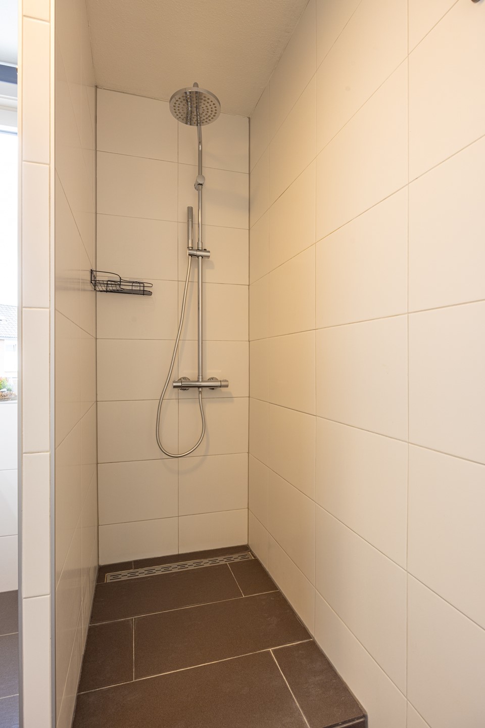 Via de trap bereikt u de overloop, die toegang biedt tot drie goed ingedeelde slaapkamers en de badkamer. Alle slaapkamers zijn voorzien van een laminaatvloer, rolluiken en ramen die zorgen voor veel daglicht. De kamers zijn netjes afgewerkt en bieden diverse gebruiksmogelijkheden, zoals kinder-, werk- of logeerkamer. De masterbedroom is extra comfortabel uitgerust met een airconditioning, ideaal voor warme zomernachten. De badkamer is geheel betegeld. Hier vindt u een stijlvol badkamermeubel met wastafel en spiegel, een toilet en een ruime inloopdouche. Dankzij het raam is er voldoende natuurlijke ventilatie en daglicht aanwezig.