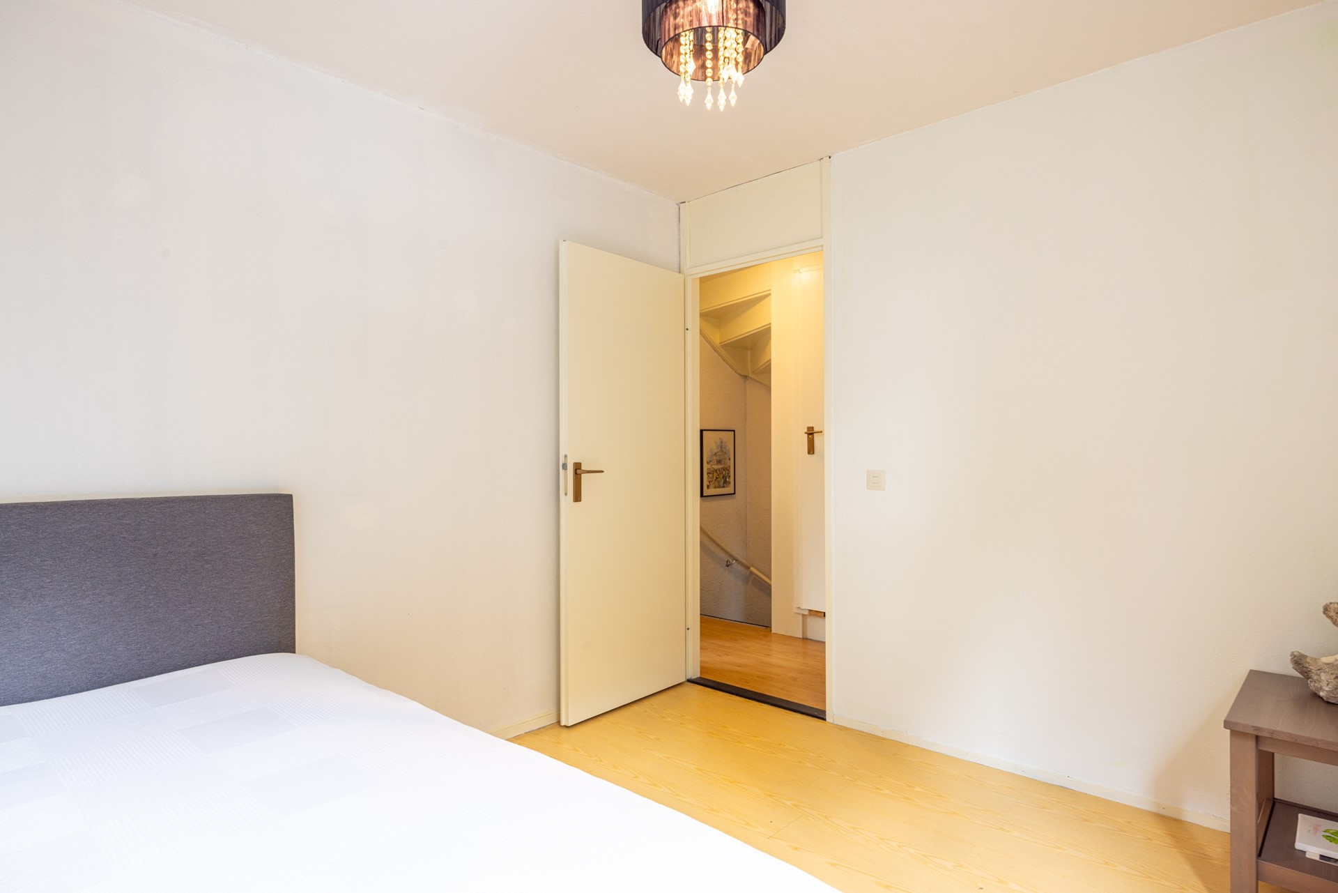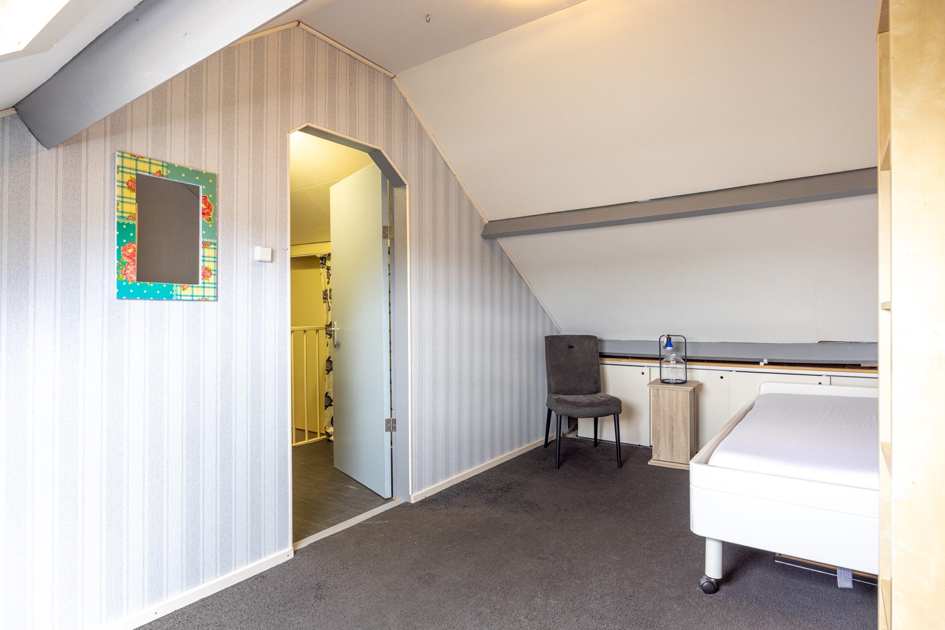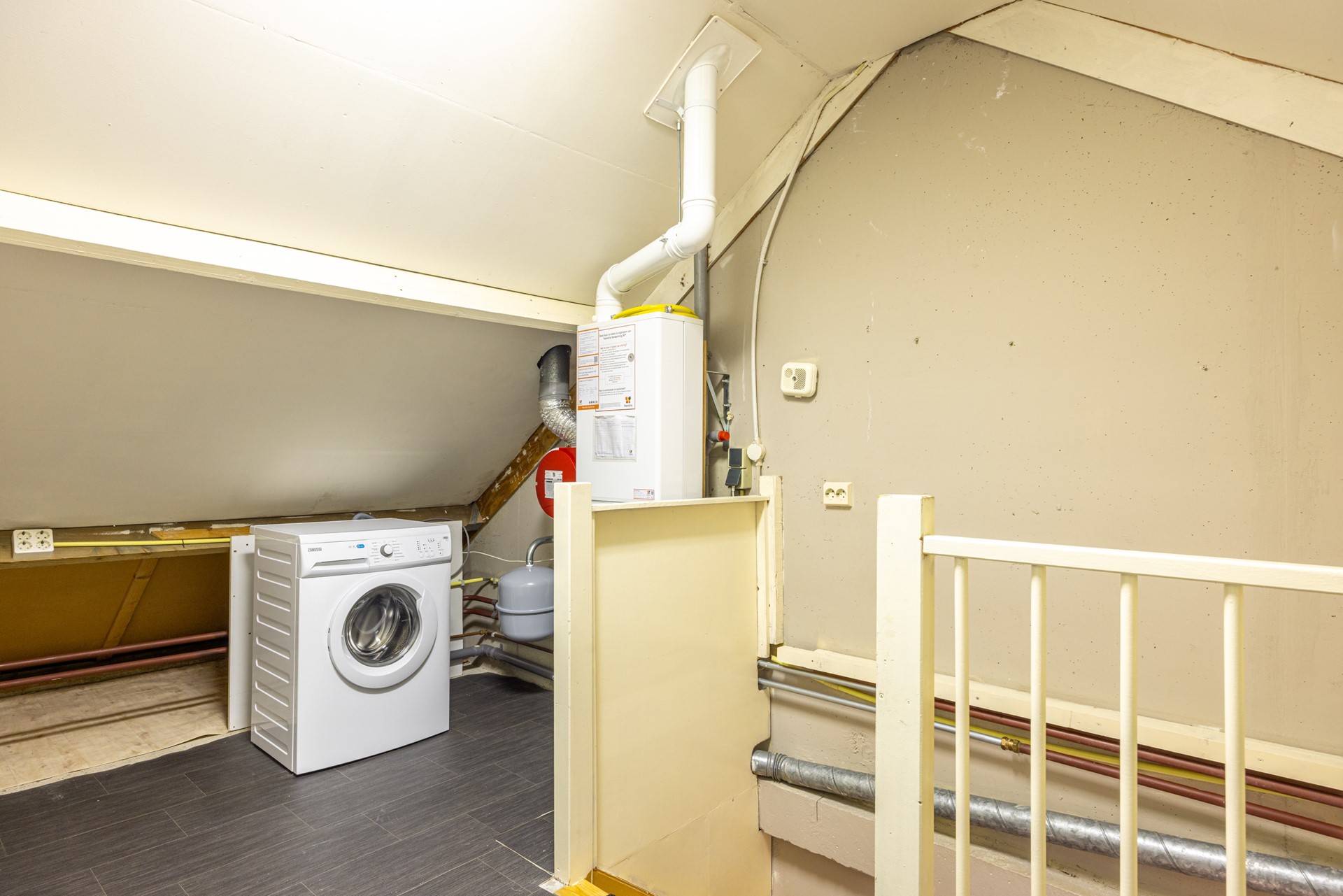 Via een vaste trap bereikt u de tweede verdieping. Hier bevindt zich een overloop met aansluitingen voor het witgoed en de cv-installatie. Tevens vindt u hier een vierde slaapkamer, voorzien van tapijt, een dakraam en handige opbergruimte achter schuifdeuren.