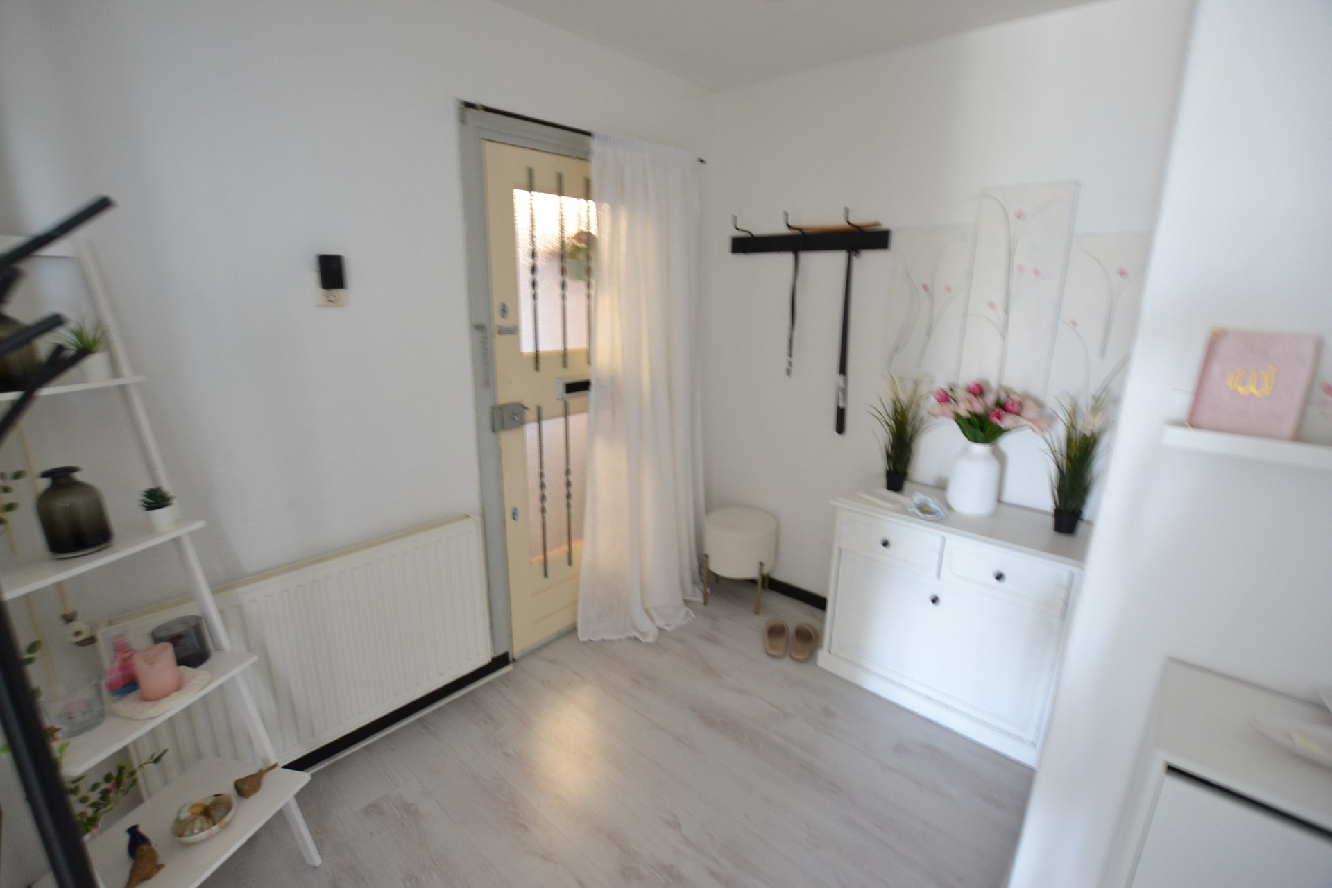 Entree/hal 2,80 x 2,50/1,85 met laminaatvloer en inbouwspots.