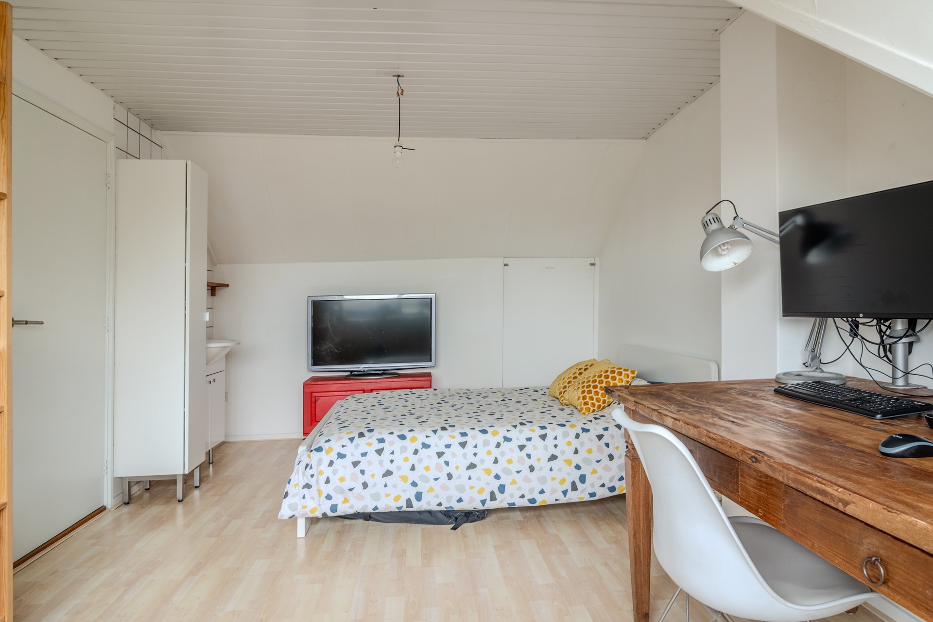 Hier bevindt zich de vierde ruime slaapkamer (met wastafel) en een voorzolder met cv-opstelling (geplaatst 2009) en opstelplaats voor wasmachine en droger. Achter de knieschotten is veel bergruimte aanwezig. Daarnaast is er een extra ruimte die uitstekend geschikt is als werkkamer.