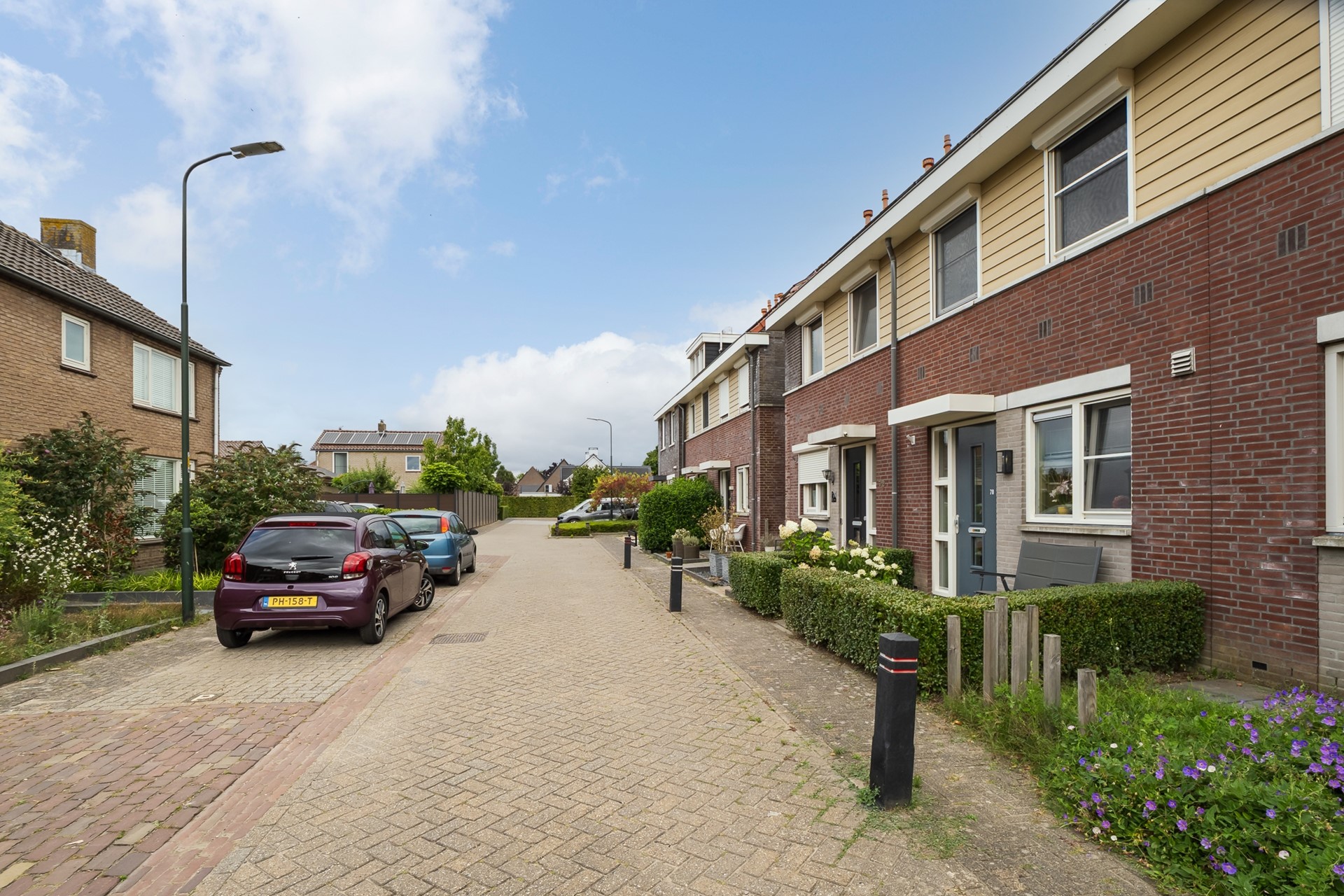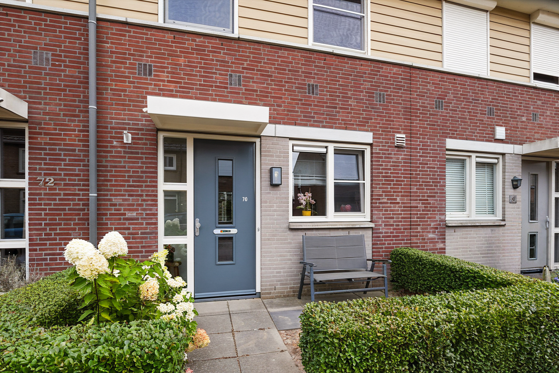 De voortuin oogt verzorgd en nodigt uit. Dankzij de strakke aanleg en de groene haagjes krijgt het huis niet alleen een nette uitstraling vanaf de straat, maar ontstaat er ook een stukje beslotenheid. Heerlijk om een gezellig zitje te hebben.