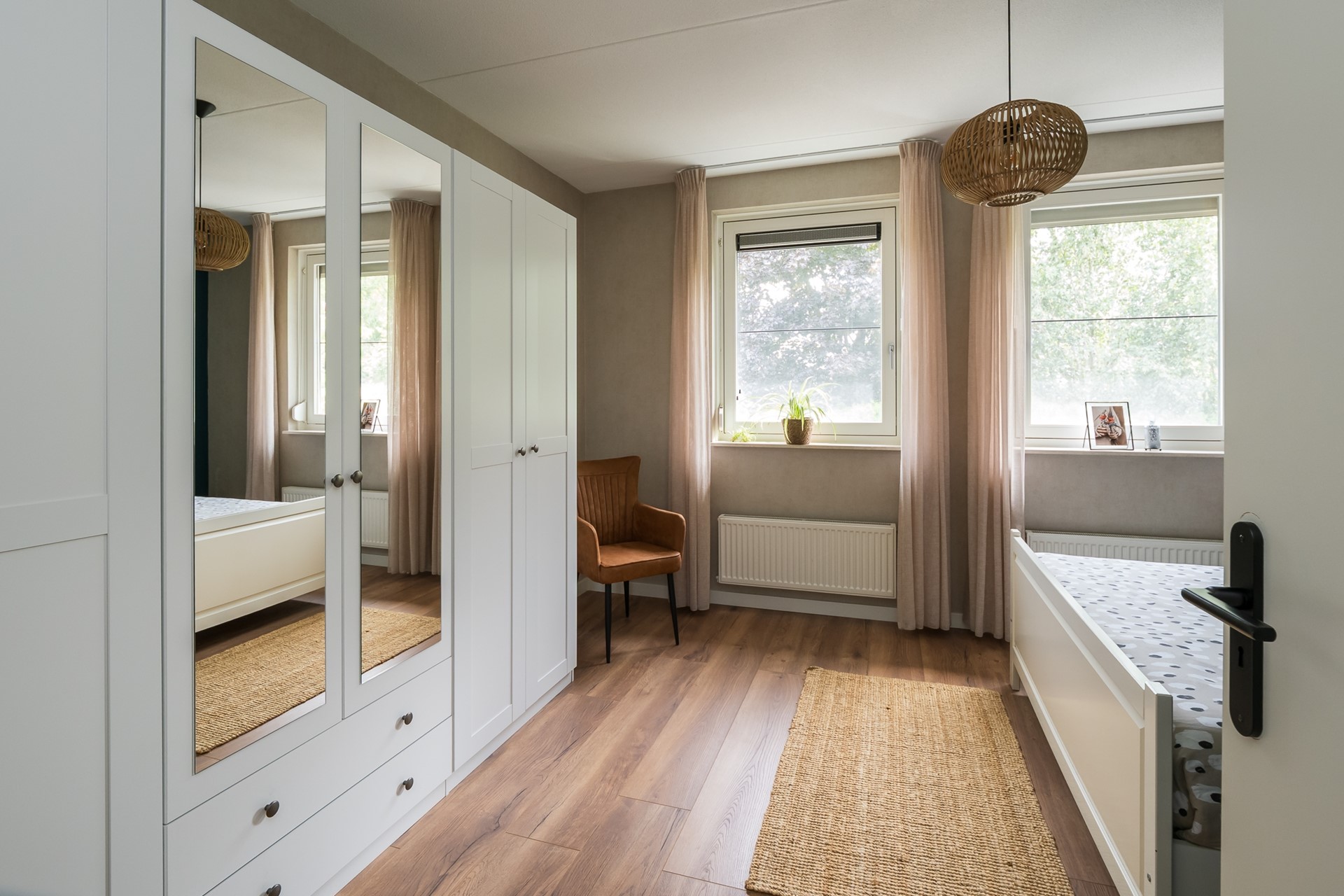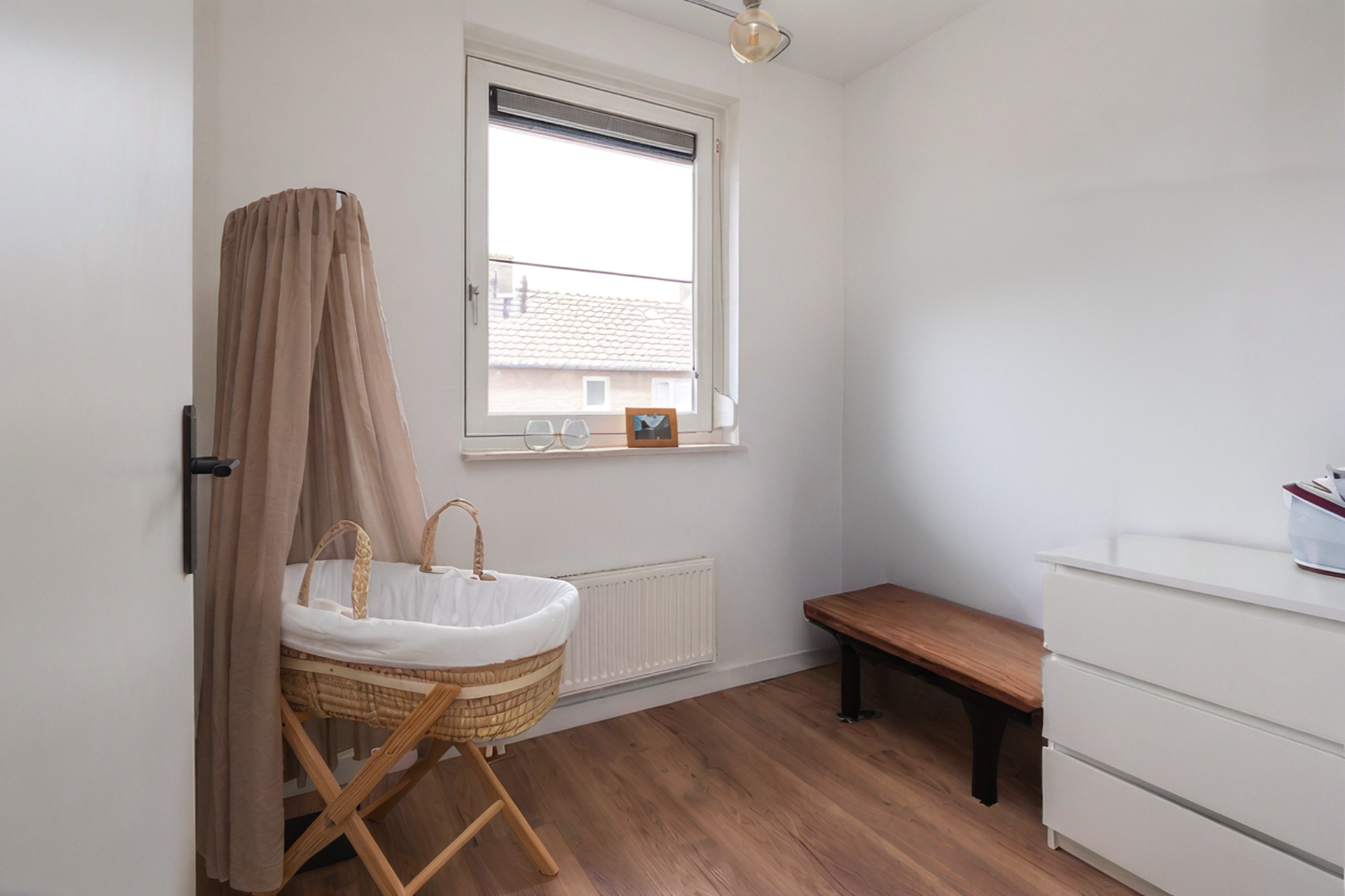 Aan de overloop grenzen drie stuk voor stuk verzorgde en lichte slaapkamers. Alle slaapkamers zijn voorzien van rolluiken, wat extra comfort en privacy geeft. Ook hier ligt een stijlvolle eikenlook laminaat, die over de gehele verdieping mooi is doorgelegd.