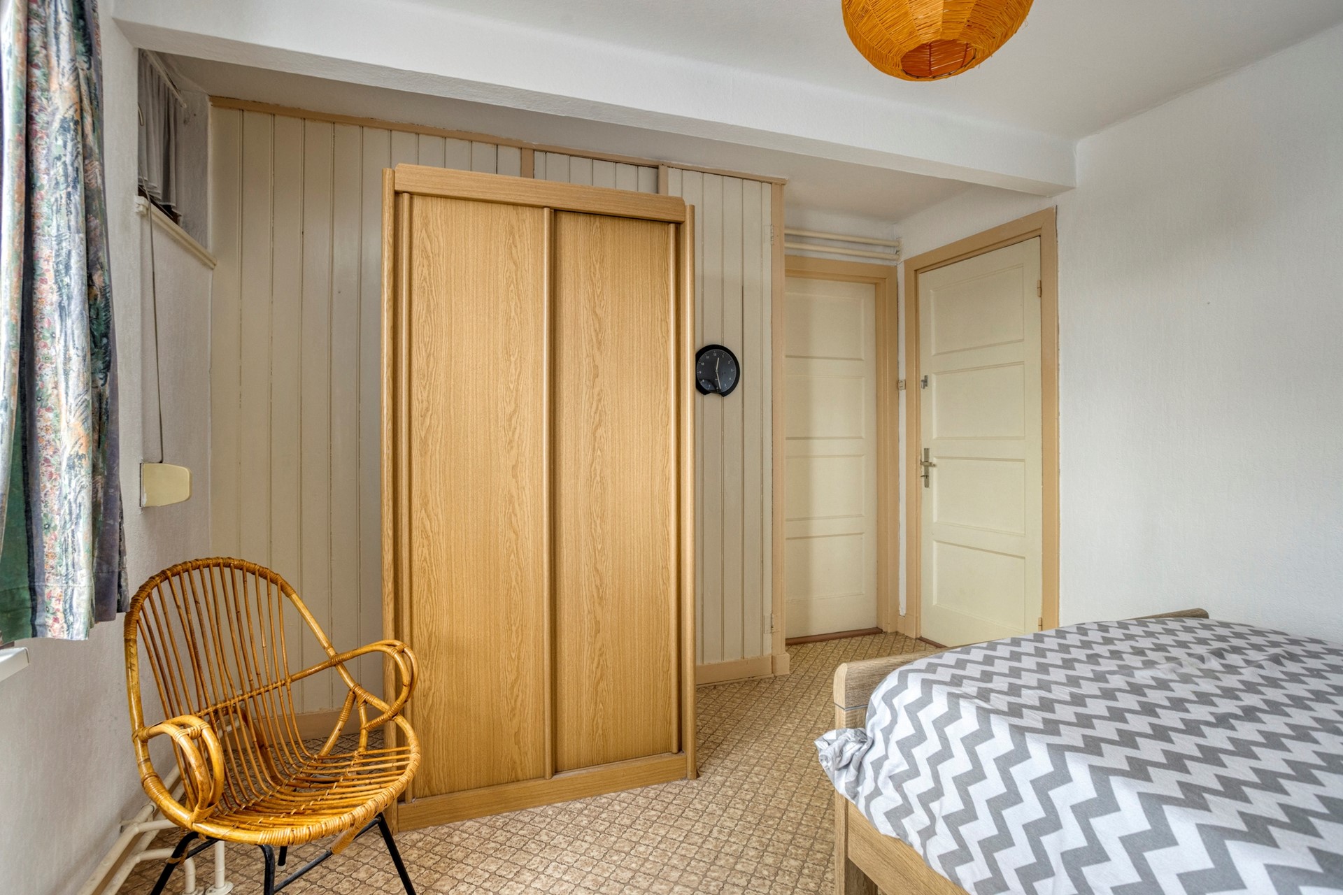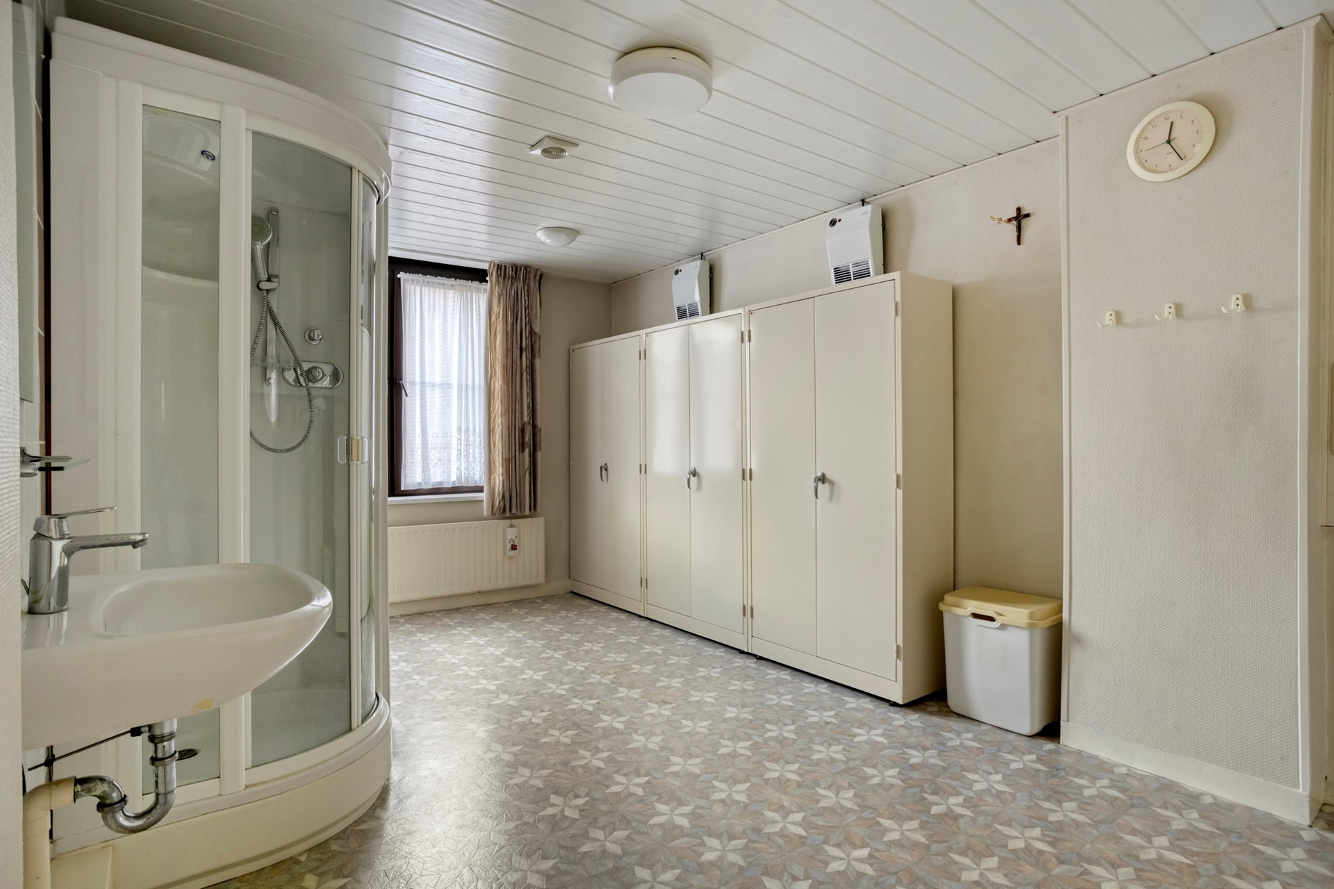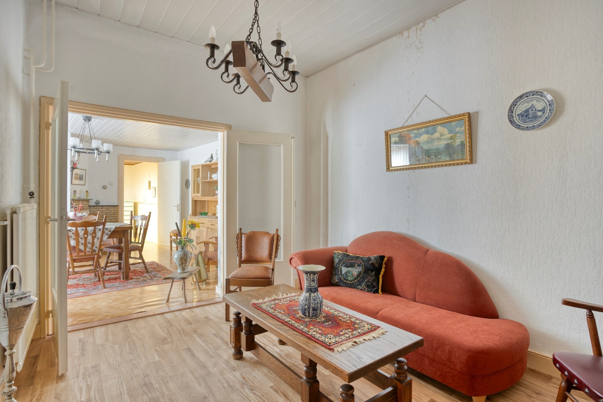 De overdekte entree geeft toegang tot de voormalige winkelruimte van ca. 37 m². Misschien droom je allang van zo’n eigen atelier, een praktijk aan huis of gewoon van wat extra leefruimte: deze woning had ooit een winkel en die ruimte zit boordevol potentie. Je kunt hem eenvoudig betrekken bij het woongedeelte of – als je uit de creatieve hoek komt – omtoveren tot bijvoorbeeld een praktijk, studio of kantoor. Aansluitend ligt een knusse zitkamer van ca. 12 m² van waaruit de kelder bereikbaar is.