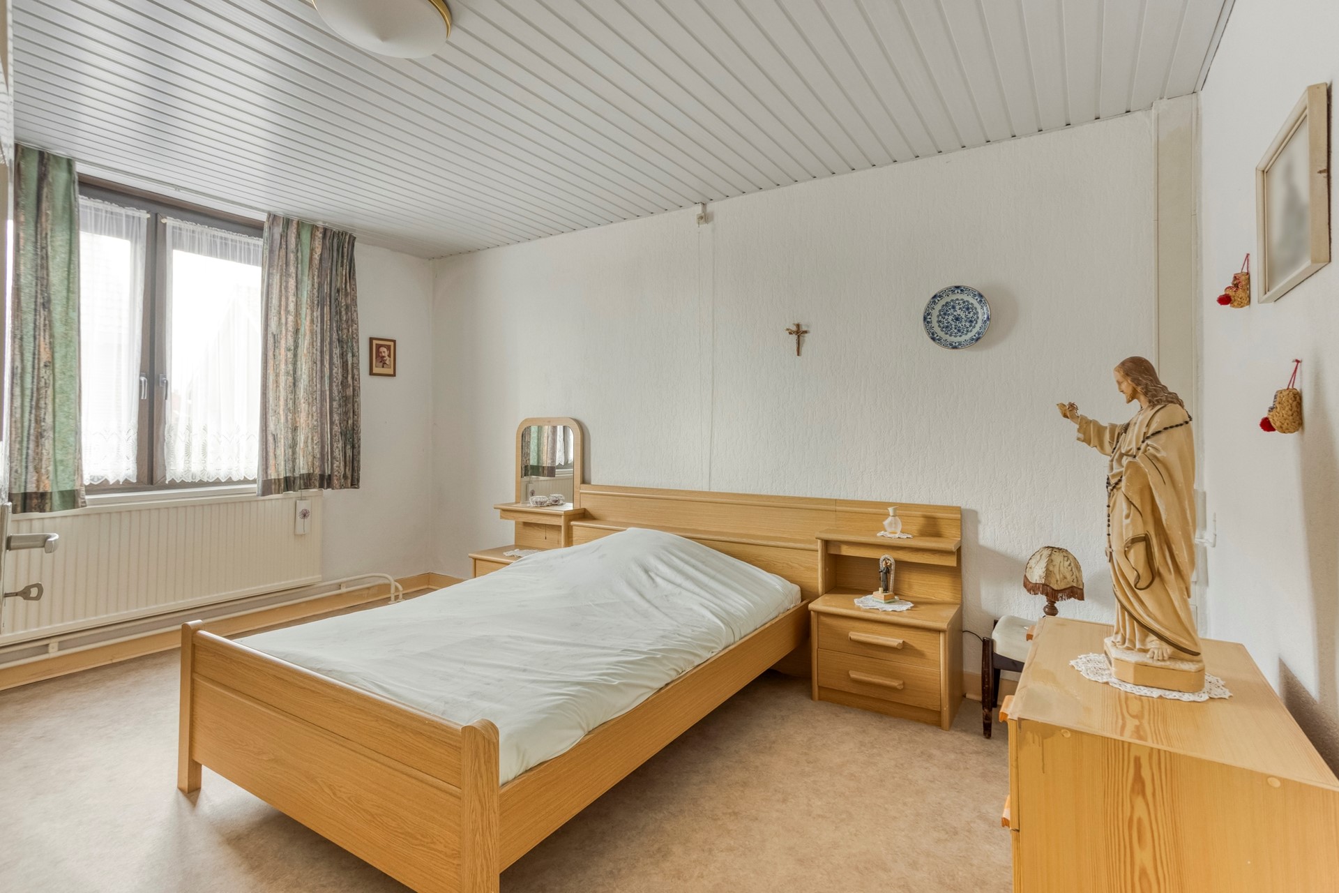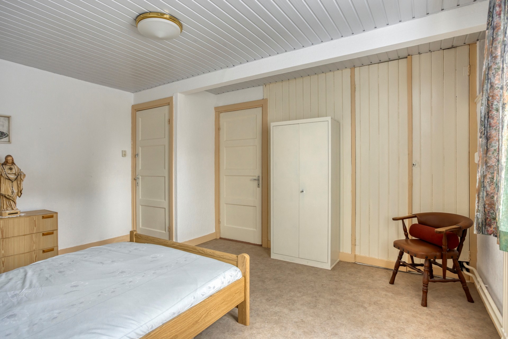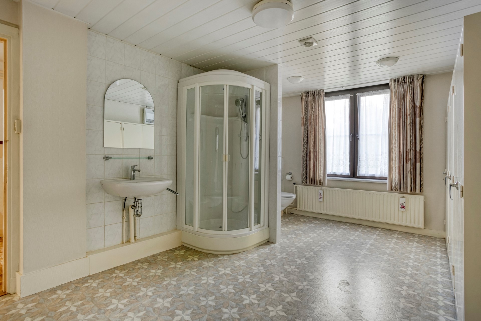 De overdekte entree geeft toegang tot de voormalige winkelruimte van ca. 37 m². Misschien droom je allang van zo’n eigen atelier, een praktijk aan huis of gewoon van wat extra leefruimte: deze woning had ooit een winkel en die ruimte zit boordevol potentie. Je kunt hem eenvoudig betrekken bij het woongedeelte of – als je uit de creatieve hoek komt – omtoveren tot bijvoorbeeld een praktijk, studio of kantoor. Aansluitend ligt een knusse zitkamer van ca. 12 m² van waaruit de kelder bereikbaar is.
