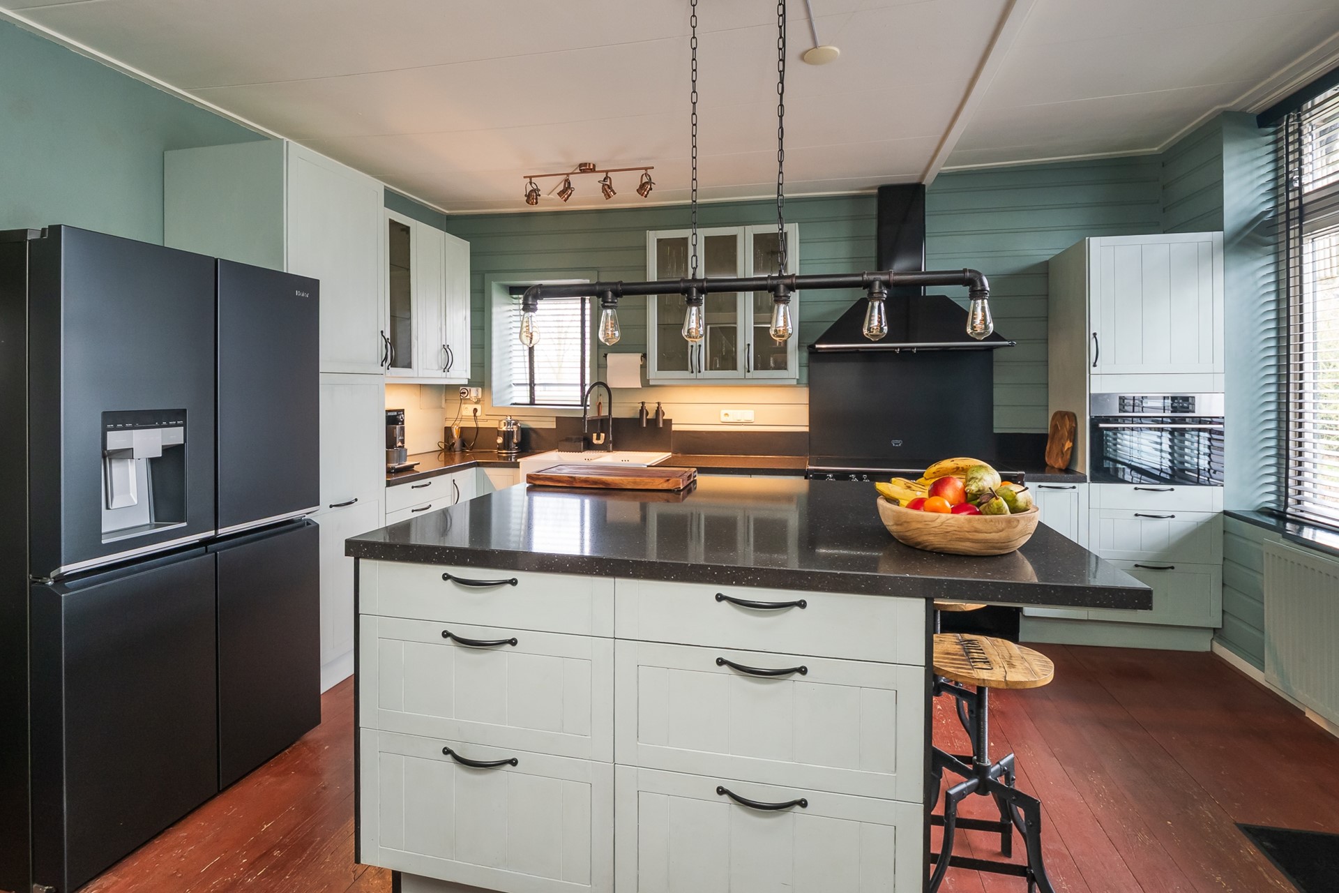 Keuken: Bij de keuken hebben we gekozen om deze te vervangen door een moderne keuken binnen de bestaande opzet.