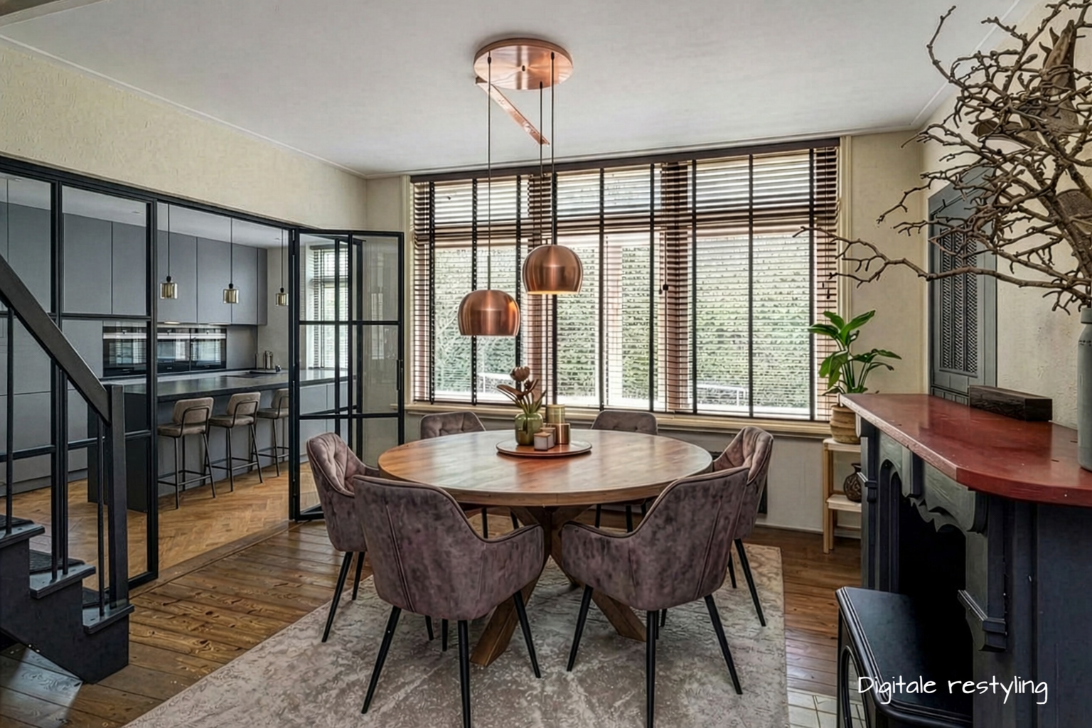 Eetkamer: Met een lichtere kleur, een andere tafelopstelling en meer visuele rust verandert de eetkamer in een uitnodigende leefruimte.
