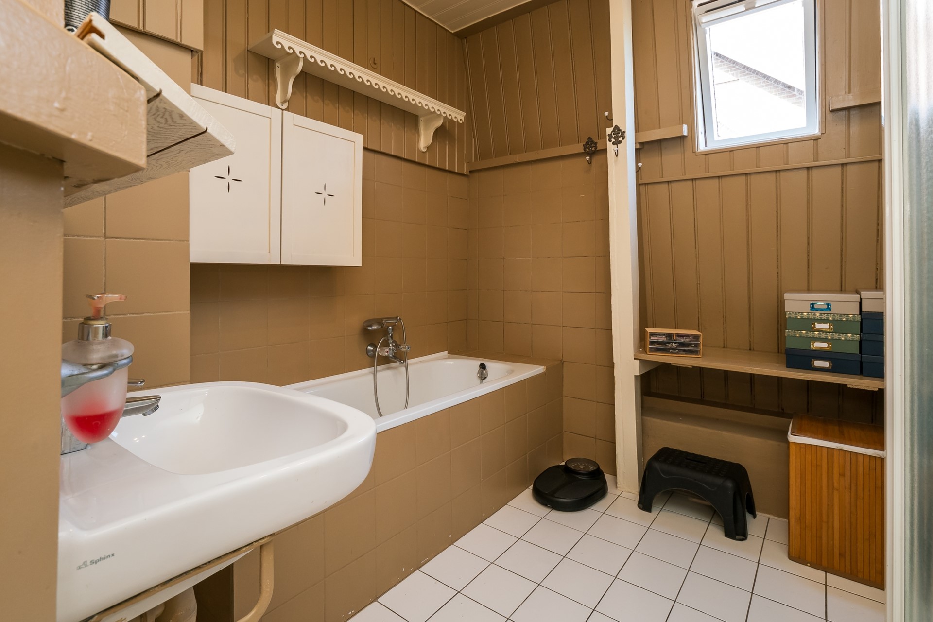 Badkamer: Zonder de indeling echt te veranderen hebben we binnen de bestaande ruimte een moderne badkamer gecreëerd.
