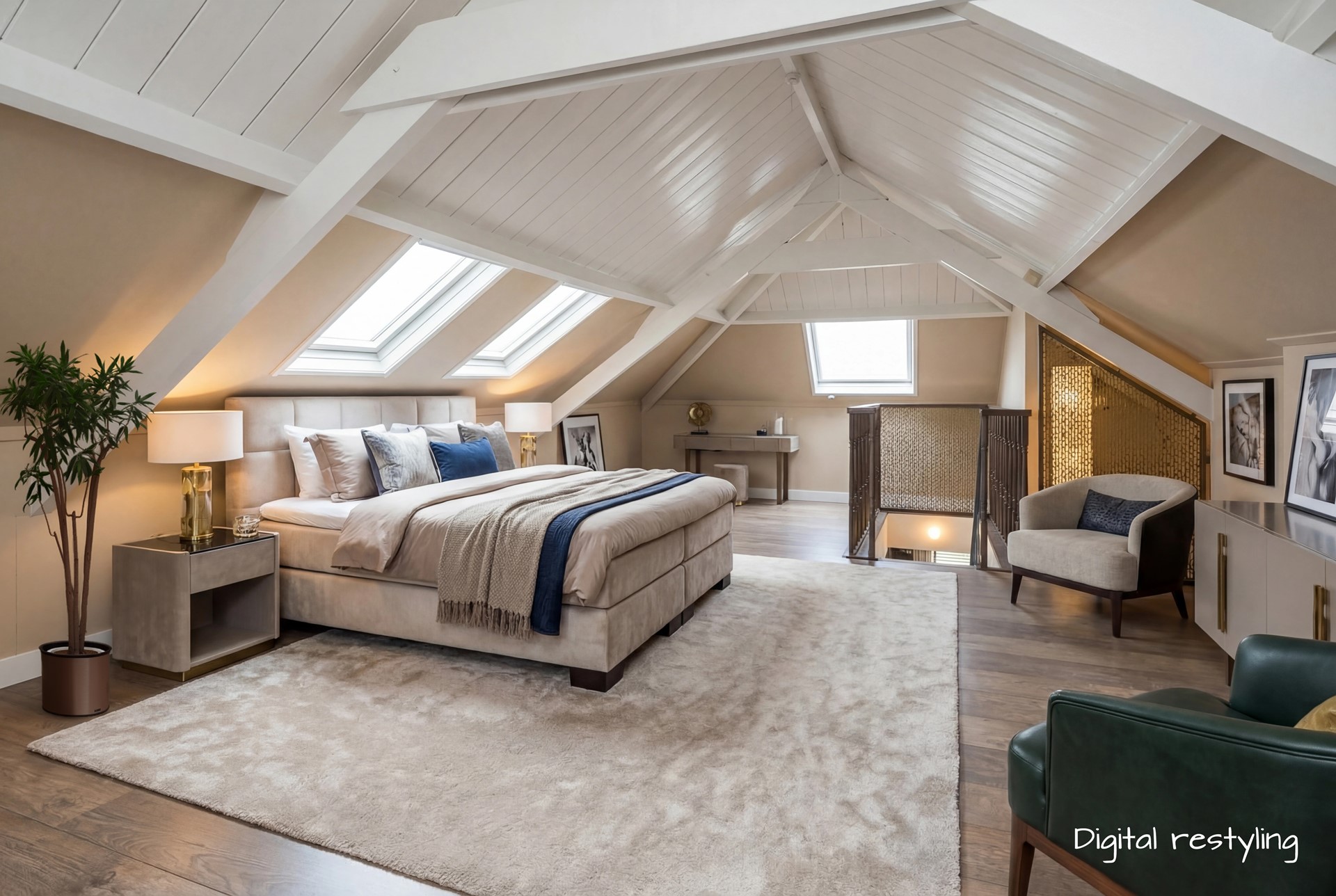 Zolderkamer: Met relatief eenvoudige ingrepen — kleurgebruik, rust in styling en een logische indeling — verandert de zolderkamer in een aantrekkelijke, volwaardige slaapkamer. Met weinig middelen kun je veel beleving toevoegen.
