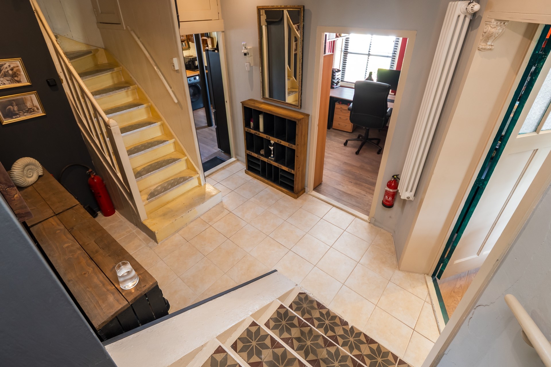 En dan is er nog die ene plek waar vrijwel elk gezin meteen enthousiast van wordt. Halverwege de trap, als laag tussen bijkeuken en woonkamer, bevindt zich een verborgen ruimte. Voor kinderen is dit al snel hun eigen geheime plek – vaak al snel omgedoopt tot de ‘Harry Potter-kamer’. Een kleine ontdekking, maar een groot pluspunt in de beleving van dit huis.