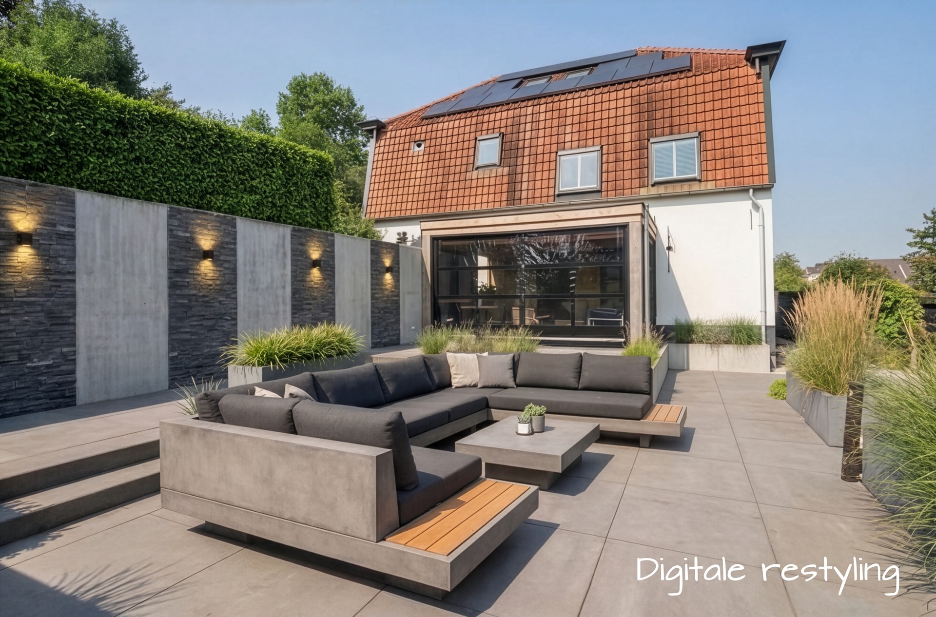 Tuin: Met een strakkere indeling, rustige materialen en een duidelijke functie verander je de tuin zo in een moderne loungetuin vol privacy. De tuin hebben we voorzien van keerwanden in de dijkhelling met boven de wanden een beukenhaag voor optimale privacy.