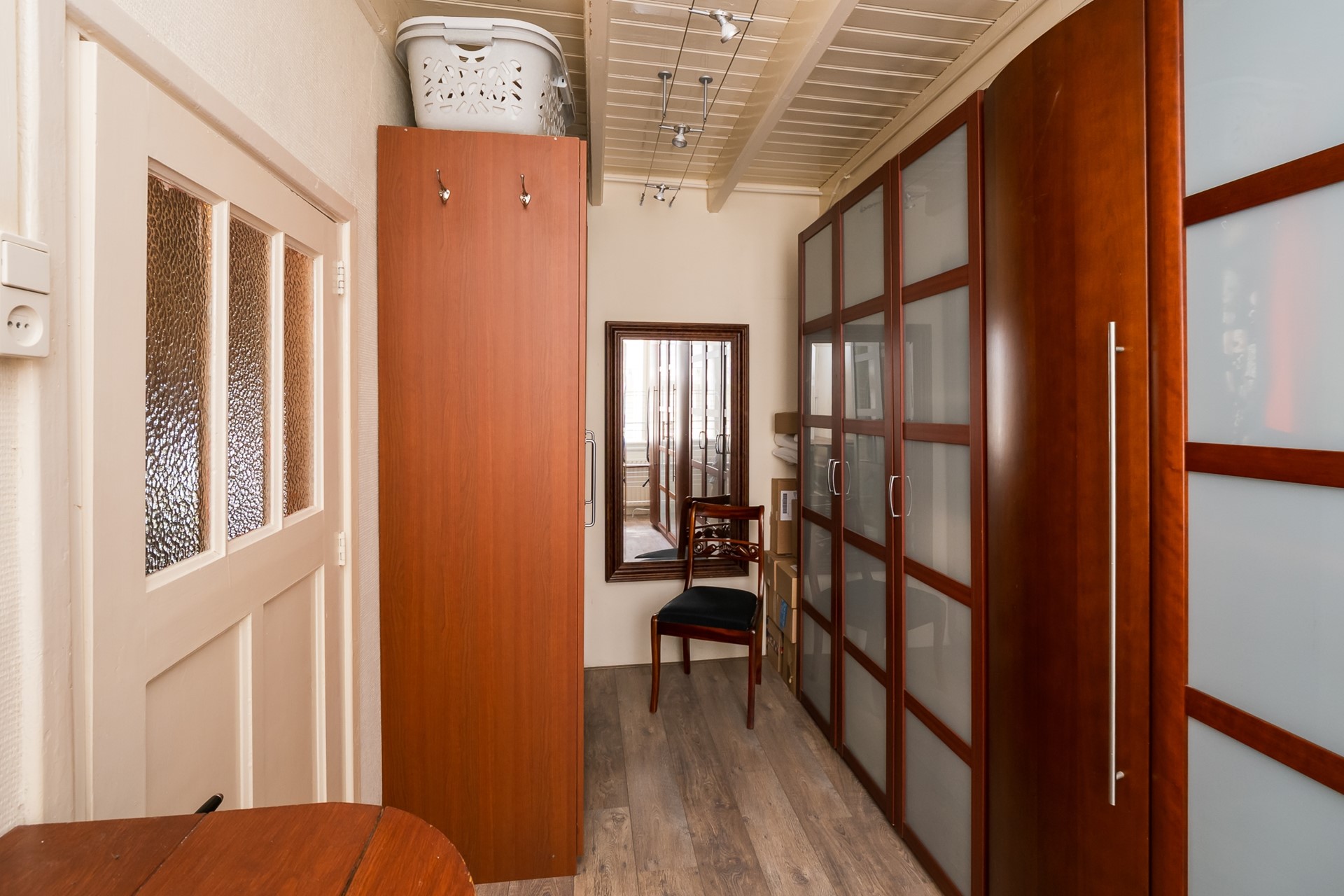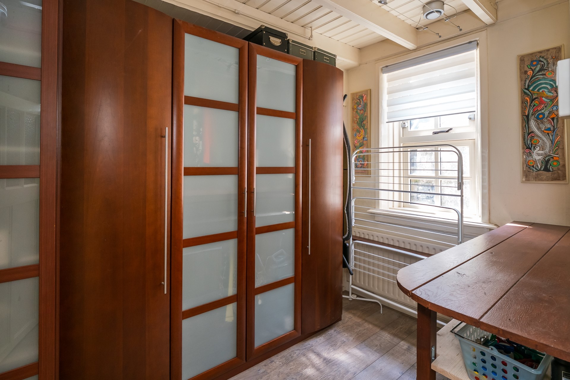 De garderobekamer completeert het geheel; de drie kledingkasten zijn inclusief en kunnen ruimte bieden aan een flinke garderobe. Vanzelfsprekend is het gebruik als slaapkamer ook denkbaar.