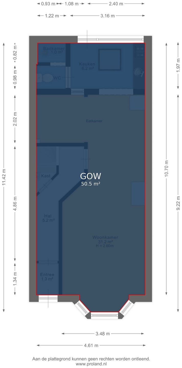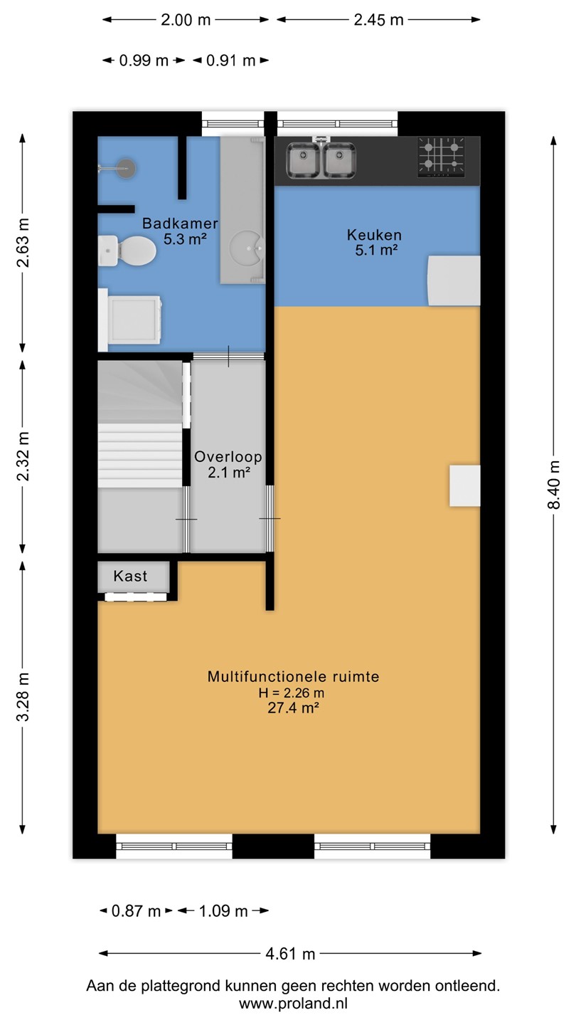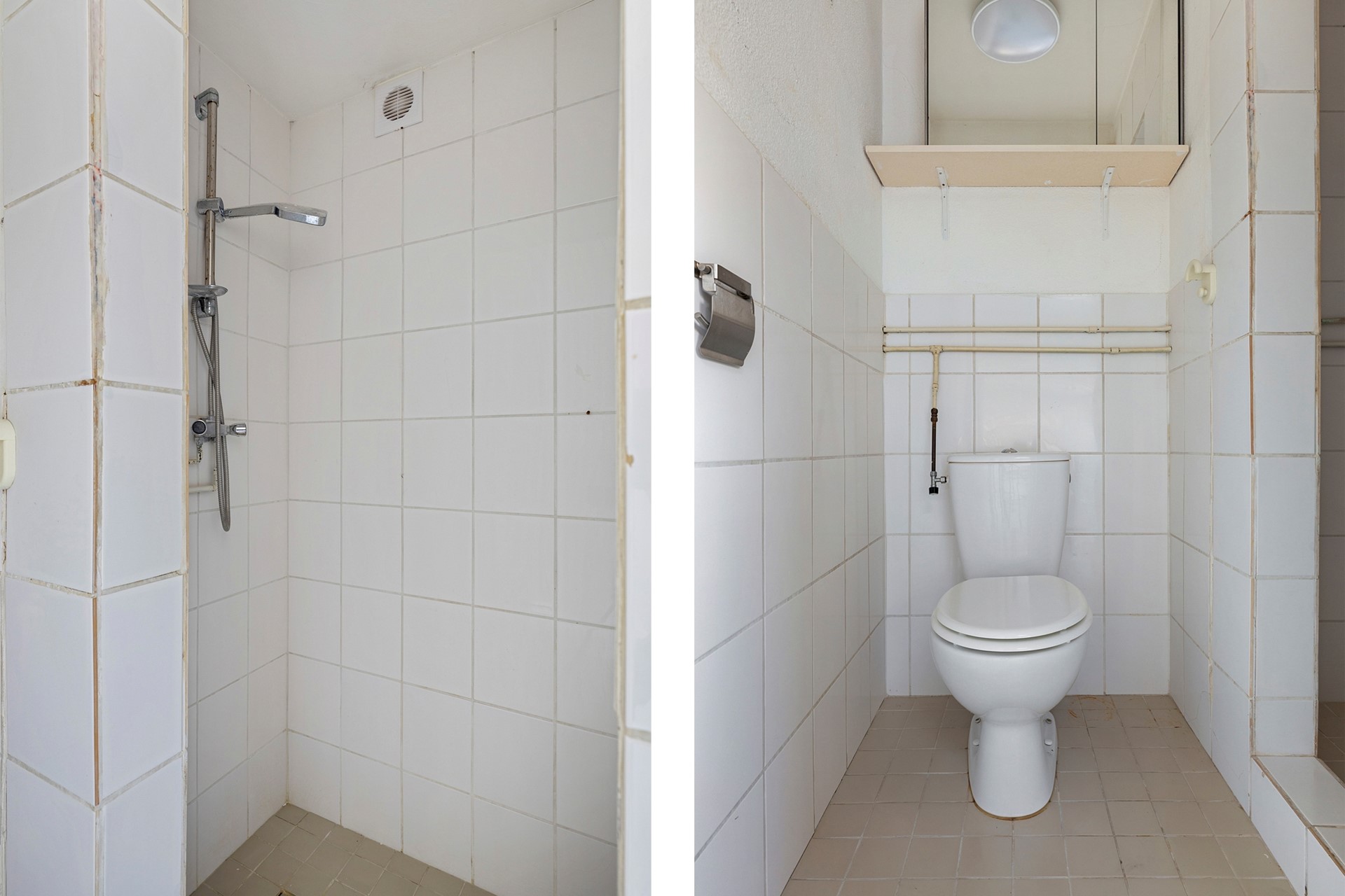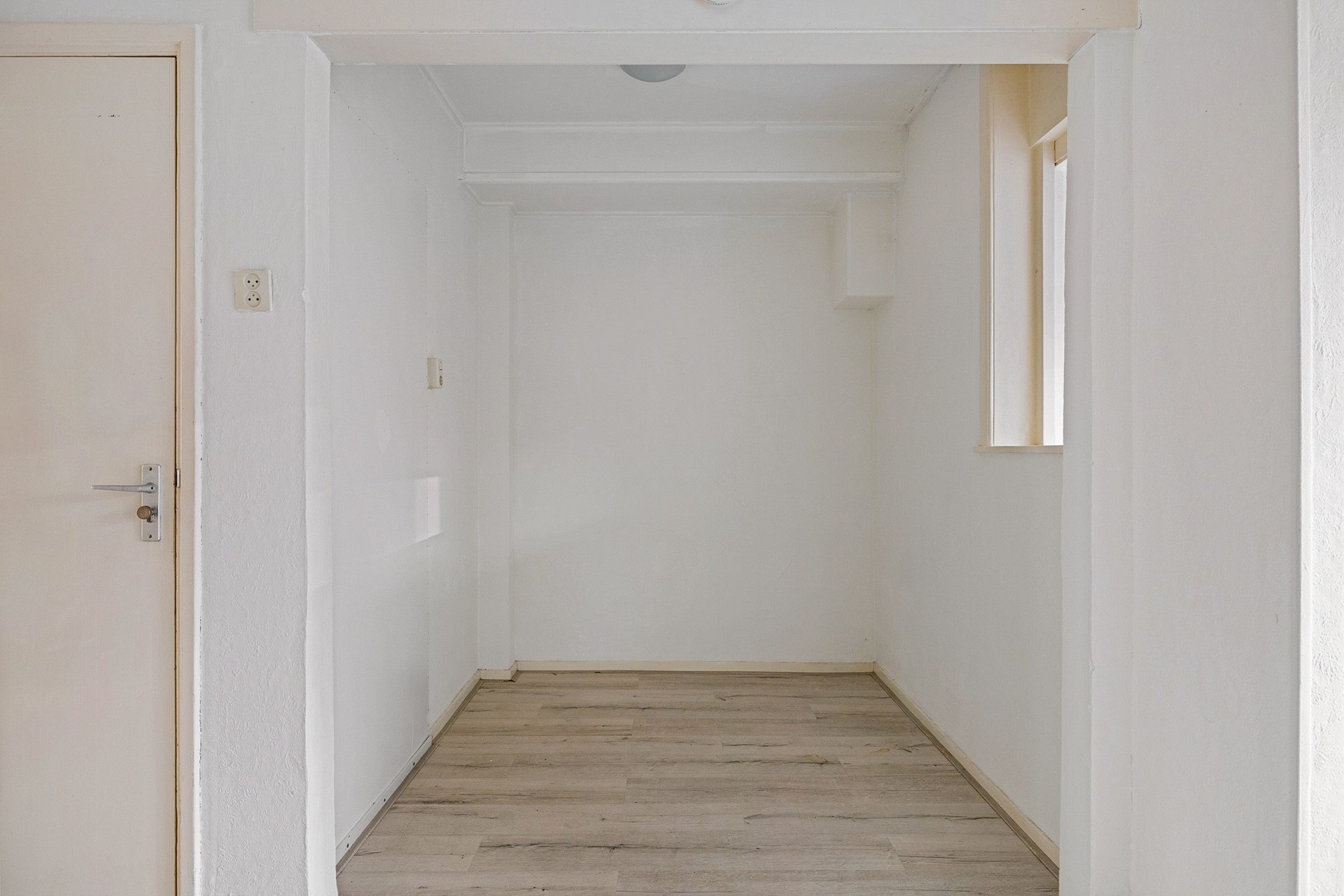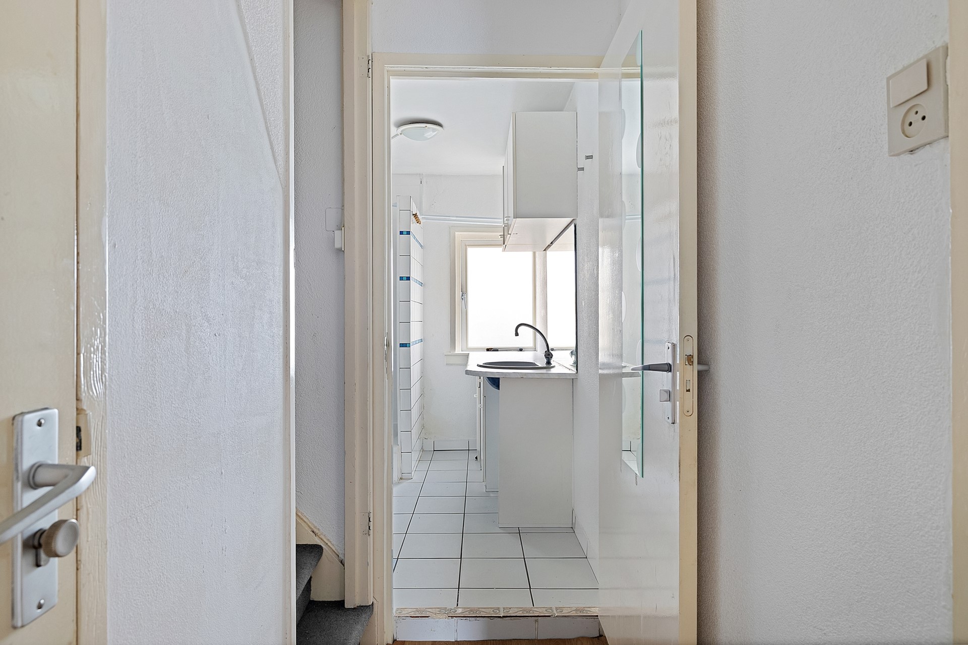 (Gemeenschappelijke) entree, (gemeenschappelijke hal, woonkamer met slaapgedeelte en een half open keuken, doucheruime en toilet. Via de keuken toegang tot de achterplaats.