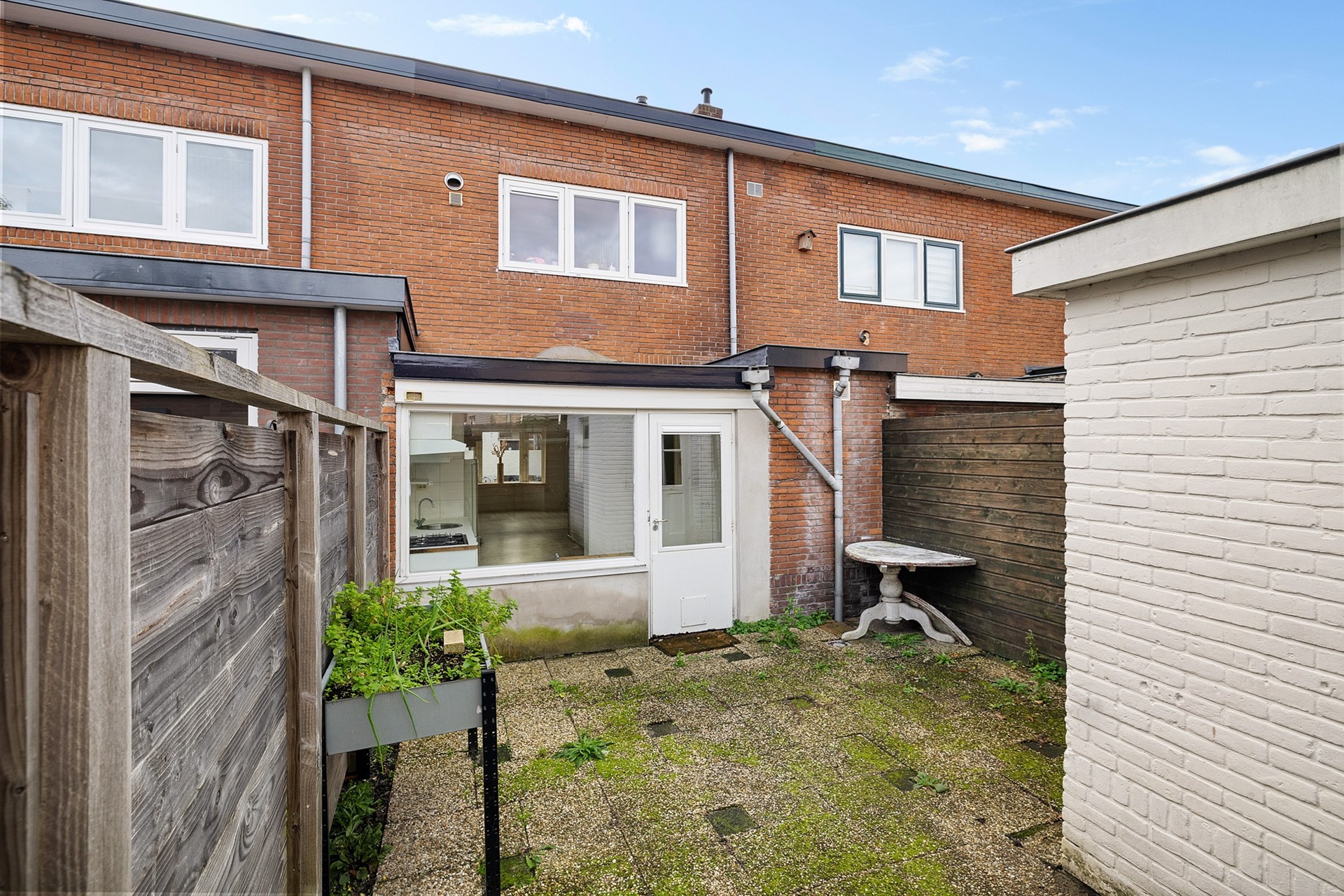 De achtertuin biedt een fijne buitenruimte midden in de stad.